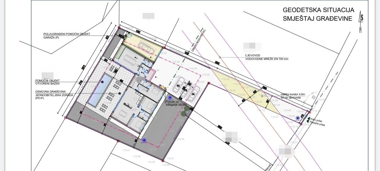 Istrien, Loborika – Baugrundstück mit Baugenehmigung! Ein 1007 m² großes Baugrundstück steht zum Verkauf. Das Grundstück liegt 120 m von der asphaltierten Straße entfernt. Für das Grundstück liegt eine gültige Baugenehmigung für ein eingeschossiges Wohnhaus mit Keller und Nebengebäude (Garage) vor. Das Haus hat eine Wohnfläche von 174 m² und besteht aus einer überdachten Veranda, zwei Fluren, einem Hauswirtschaftsraum, einem Essbereich, drei großen Schlafzimmern (eines davon mit eigenem Bad und Vorraum), zwei weiteren Badezimmern, einer Wohnküche und einem Wohnzimmer. Vom Wohnzimmer aus gelangt man in den Garten, wo eine Sonnenterrasse und ein Swimmingpool geplant sind. Im Keller befindet sich ein 48 m² großer Technikraum. Neben dem Haus befindet sich eine 39 m² große Garage. Strom- und Wasseranschluss sind vorhanden. LAGEBESCHREIBUNG: Das Grundstück befindet sich in einem ruhigen Dorf mit allen Annehmlichkeiten in unmittelbarer Nähe (900 m), wie zum Beispiel: * Schule * Supermarkt * Kindergarten * Öffentliche Verkehrsmittel 100 m * Restaurant * Hervorragende Autobahnanbindung * Flughafen Pula 5 Minuten Für weitere Informationen und zur Vereinbarung eines Besichtigungstermins kontaktieren Sie uns bitte jederzeit.