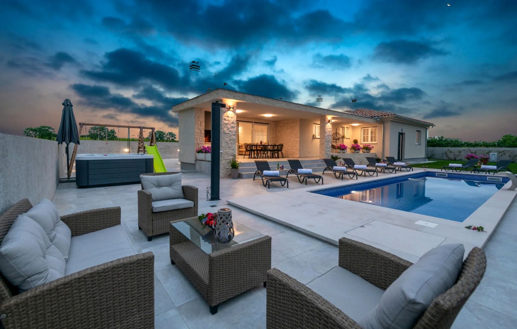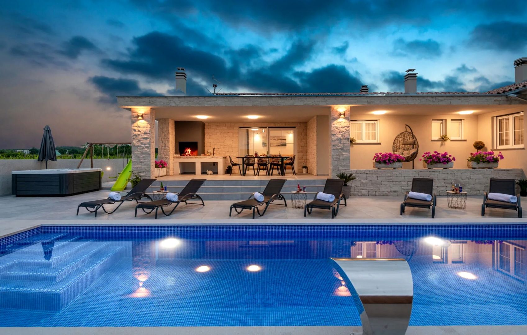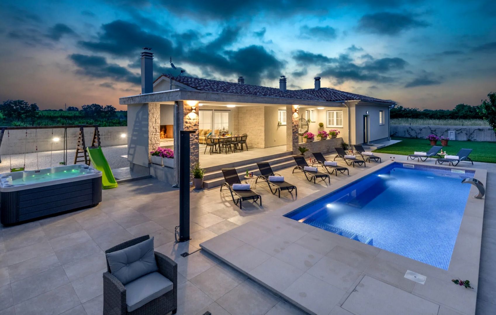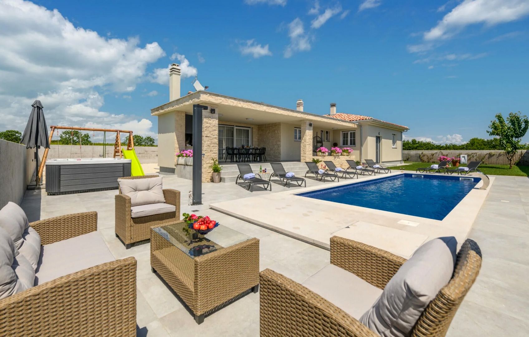 ISTRIEN, MARČANA – Haus mit Pool Marčana ist eine Gemeinde im Südosten der Halbinsel Istrien. Sie liegt etwa 12 Kilometer nordöstlich von Pula, der größten Stadt Istriens. Marčana ist bekannt für seine Küstenorte, den Urlaub, den Wein und das Olivenöl. Die kulturell reiche Gemeinde besticht durch kristallklares Wasser und eine fast unwirkliche Landschaft mit traumhaften Buchten und grünen Halbinseln. Ihre 36 Kilometer lange Küste ist die am wenigsten urbanisierte Küstenregion Istriens. Marčana mit ihren fruchtbaren Feldern, sanften Hügeln, die zu versteckten Felsbuchten und malerischen Dörfern und Städten abfallen, ist der unentdeckte Schatz der istrischen Ostküste. In dieser idyllischen Landschaft steht ein Haus mit Pool zum Verkauf. Die Lage bietet ein authentisches istrisches Kleinstadterlebnis, Privatsphäre, Erholung vom Alltag und Ruhe, und gleichzeitig die Nähe zum Meer und den dynamischen Städten Istriens mit ihren vielfältigen Annehmlichkeiten. Neben der erstklassigen Lage zeichnet sich die Immobilie auch durch ihre hochwertige Bauweise aus, die langfristige Zufriedenheit und hohe Wohnqualität garantiert. Das Haus mit seinem zeitlosen Charme und seiner Architektur, teilweise mit Stein verkleidet, fügt sich in Form und Farbe harmonisch in die Umgebung und Landschaft ein. Es ist als eine Wohneinheit konzipiert, die sich über eine elegant möblierte und bestens ausgestattete Etage mit funktionalem Grundriss erstreckt. Der offene Wohnbereich vereint Küche, Esszimmer und Wohnzimmer und bietet Zugang zu einer überdachten Terrasse mit Sommerküche. Drei Schlafzimmer mit jeweils eigenem Bad, ein Gemeinschaftsbereich mit offenem Kamin, ein Gäste-WC und Technikräume runden das Angebot ab. Klimaanlagen in allen Räumen und eine elektrische Fußbodenheizung in den Bädern sorgen ganzjährig für angenehme Temperaturen. Der Garten ist stimmungsvoll gestaltet und umzäunt. Ein Swimmingpool mit Liegewiese, ein Whirlpool, ein Kinderspielplatz und ein Parkplatz mit Ladestation für Elektrofahrzeuge runden das harmonische Gesamtbild ab. Die hervorragende Lage und die durchdachte Raumaufteilung im Innen- und Außenbereich dieser Immobilie bieten ideale Voraussetzungen für ein komfortables Familienleben oder eine lohnende Investition in die touristische Vermietung.