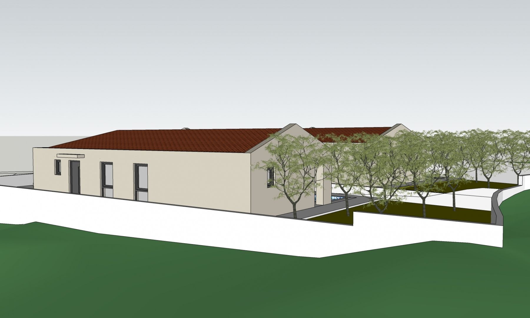 ISTRIEN, MARČANA – Premium-Projekt: Eingeschossiges Haus mit Pool Drei Schlafzimmer mit jeweils eigenem Bad | Überdachte Terrasse | Privater Pool In der ruhigen und authentischen istrischen Umgebung des Dorfes Krvavići, unweit von Marčana, entsteht ein modernes, eingeschossiges Hausprojekt, das maximalen Komfort, Privatsphäre und einen gesunden Lebensstil bietet. Das Projekt vereint mediterrane Ästhetik, einen funktionalen Grundriss und höchste Baustandards und ist somit ideal für Familien, einen luxuriösen Urlaub oder als Investition in Premium-Tourismus. Alle erforderlichen Genehmigungen liegen vor, Strom ist bezahlt und Wasser ist angeschlossen. Der Bau kann sofort beginnen, was diese Immobilie besonders attraktiv für Investoren und Käufer macht, die Wert auf Sicherheit, Schnelligkeit und eine klar definierte Projektabwicklung legen. PROJEKTBESCHREIBUNG: Das Wohngebäude ist ein freistehendes, eingeschossiges Gebäude mit einem regulären L-förmigen Grundriss und einer Bruttogeschossfläche von 143,40 m². Die maximale Grundfläche beträgt 11,00 m x 18,90 m. Das Gebäude verfügt über ein Satteldach mit einer Neigung von 20°. Es beherbergt eine Wohneinheit mit dem Haupteingang an der Ostseite. Funktionale und luxuriöse Raumaufteilung: Schlafzimmer 1: 14 m² + eigenes Badezimmer 5 m² Schlafzimmer 2: 12 m² + eigenes Badezimmer 5,20 m² Schlafzimmer 3: 12 m² + eigenes Badezimmer 5,20 m² Küche, Ess- und Wohnbereich: 40 m² – offener Grundriss mit viel Tageslicht Flur: 9,48 m² Eingangsbereich: 6,40 m² Gäste-WC: 4,40 m² Abstellraum: 3 m² Überdachte Terrasse: 31,80 m² – ideal für entspannte Stunden im Freien Swimmingpool: 24 m², vollständig eingelassen, Maße 8,50 m x 3,50 m Der Pool ist freistehend, vollständig eingelassen und befindet sich innerhalb der vorgeschriebenen Abstände zu allen Grundstücksgrenzen. Höchste Bau- und Energieeffizienzstandards Das Projekt wurde nach höchsten Standards für Energieeffizienz und gesundes Bauen konzipiert und realisiert, mit Blick auf langfristige Nachhaltigkeit und niedrige Betriebskosten. Wärme- und Energieeffizienz Hochwertige Wärmedämmung mit Steinwolle (WDVS) Hervorragende Energieeffizienz und signifikante Energieeinsparungen Stabilere Innentemperatur das ganze Jahr über Vermeidung von Wärmebrücken und Energieverlusten Schallschutz Ausgezeichneter Schutz vor Lärm von außen und innen Hohe Raumakustik Ruhiger und komfortabler Aufenthalt in allen Räumen Brandschutz Nicht brennbare Materialien – Steinwolle der Brandschutzklasse A1 Erhöhte Sicherheit für Gebäude und Nutzer Langfristige Beständigkeit der Konstruktion Gesundes Raumklima Dampfdurchlässige Systeme, die das Gebäude „atmen“ lassen Reduziertes Risiko von Feuchtigkeit, Kondensation und Schimmel Gesündere Raumluft und höherer Wohnkomfort Höchster Wohnkomfort Gleichmäßige Temperatur von Wänden, Boden und Decke Angenehme relative Luftfeuchtigkeit Kein Gefühl von kalten Wänden oder Überhitzung Vorbereitung für Fußbodenheizung und moderne Heiz-/Kühlsysteme Langlebigkeit und Qualität Mehrschichtige Abdichtung Dach und Terrasse Beständigkeit gegen UV-Strahlung, Feuchtigkeit und extreme Wetterbedingungen Bauweise gemäß den aktuellen EU-Normen und kroatischen Bauvorschriften VORTEILE DER LAGE: Krvavići ist ein ruhiger, authentischer istrischer Ort, ideal für alle, die Ruhe, Natur und Privatsphäre suchen und dennoch die Nähe zum Meer und zu städtischen Annehmlichkeiten schätzen. Unberührte Natur und viel Grün Äußerst ruhige und nicht überlaufene Umgebung Ideal für Familien und luxuriöse Urlaube Nähe zu Marčana, Pula und dem Flughafen Kurze Fahrt zu den wunderschönen Stränden Ostistriens Authentische istrische Atmosphäre abseits des Massentourismus Hervorragende Lage für Premium-Villen und Ferienhäuser Die Lage bietet die perfekte Balance zwischen Privatsphäre und Erreichbarkeit und ist daher äußerst attraktiv für langfristiges Wohnen und die Vermietung an gehobene Touristengruppen. MEHRWERT – MÖGLICHKEIT ZUM KAUF VON 3.700 m² LANDWIRTSCHAFTLICHER FLÄCHE Mit dem oben genannten Projekt besteht die Möglichkeit, zusätzliche landwirtschaftliche Fläche zu erwerben. Das Grundstück ist eben, verfügt über hochwertigen und gesunden Boden, ideal für den Anbau, und ist reich an Baumbestand, der für private Zwecke, Landschaftsgestaltung oder als Teil eines größeren Projekts genutzt werden kann. Das Grundstück bietet eine authentische Naturumgebung, absolute Privatsphäre und vielfältige Nutzungsmöglichkeiten. Möglichkeiten, die sich durch den Kauf einer landwirtschaftlichen Fläche eröffnen: Anlegung eines privaten Olivenhains, Obstgartens oder Weinbergs Gestaltung eines großen mediterranen Gartens oder Parks Zusätzlicher Raum für Erholung, Wege, schattige Bereiche und Lounge-Bereiche Entwicklung eines Öko-Anwesens, eines Retreats oder eines Wellness-Konzepts Mehrwert durch hochwertige touristische Vermietung Absolute Privatsphäre und ein auf dem Markt seltenes Gefühl von Weite