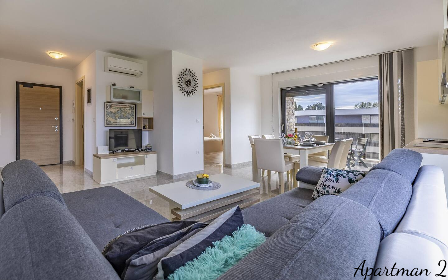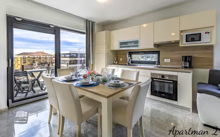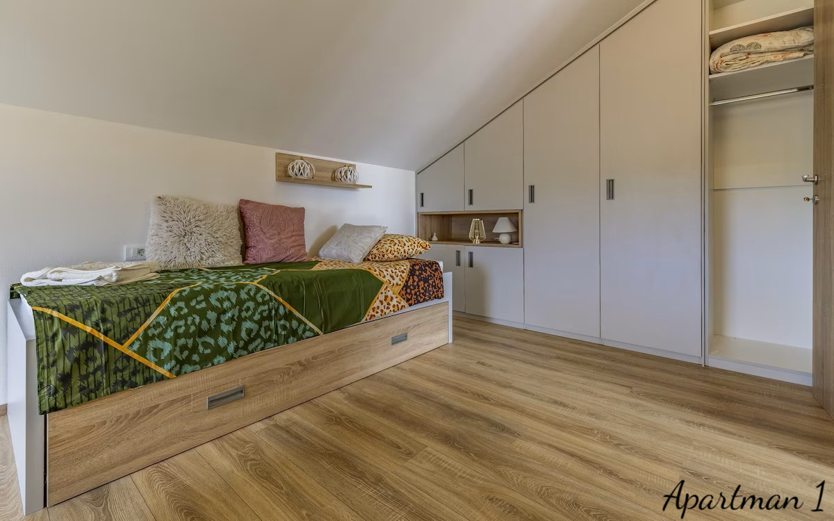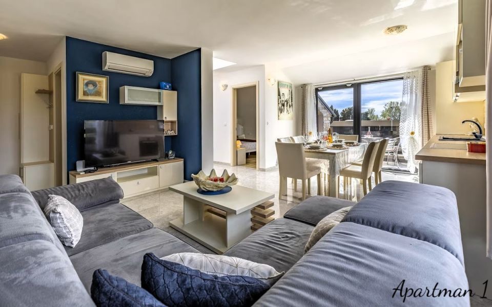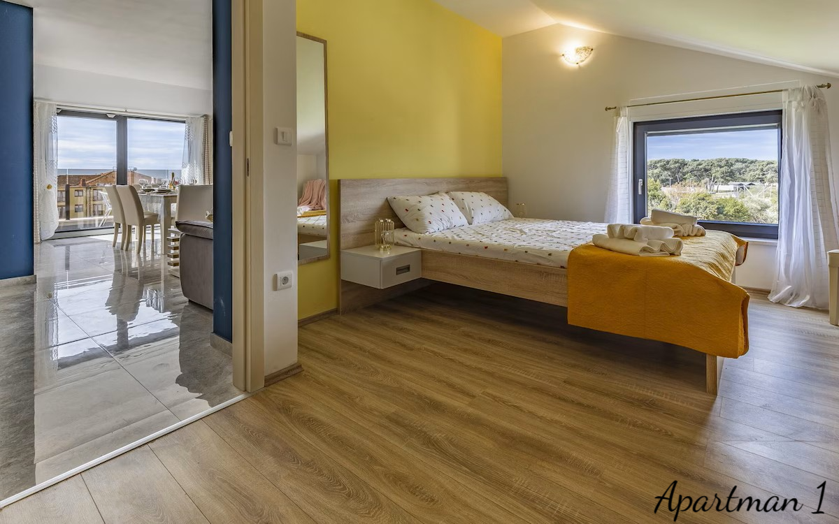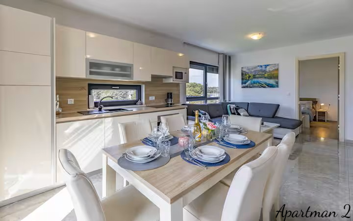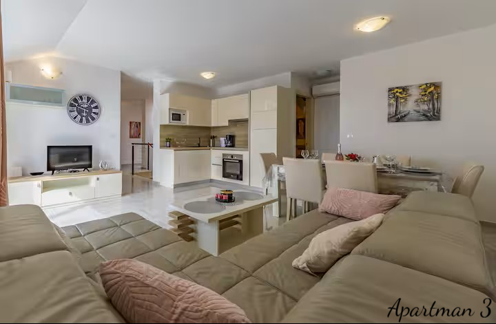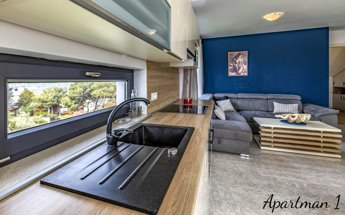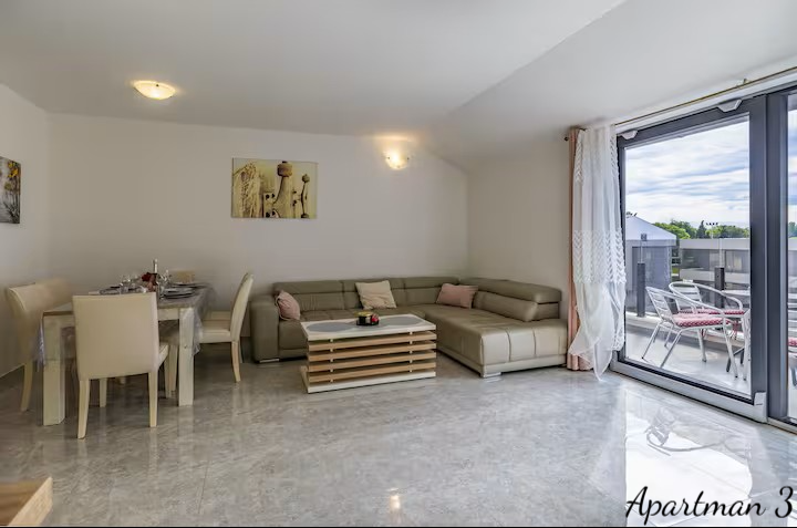 ISTRIEN, MEDULIN – 3 Luxusapartments in zweiter Reihe zum Meer mit Meerblick Exklusive Gelegenheit – drei Luxusapartments mit Meerblick in zweiter Reihe zum Meer In einer der begehrtesten Lagen Südistriens, nur 100 Meter vom Meer und den bekannten Stränden von Medulin entfernt, befinden sich drei Luxusapartments in einem Neubau aus dem Jahr 2023. Dies ist eine äußerst seltene Gelegenheit auf dem Immobilienmarkt: Drei Wohneinheiten übereinander im selben Gebäude, im Besitz eines einzigen Eigentümers, bilden zusammen ein einzigartiges Anwesen, ideal für die private Nutzung, als luxuriöse Familienanlage oder als erstklassige Investition in die Ferienvermietung. WOHNUNGSBESCHREIBUNG: Die Apartments bieten insgesamt 178,92 m² Wohnfläche und bis zu 8 Schlafzimmer. Jedes Apartment bietet einen freien Blick auf das Meer, die Halbinsel Vižula und den berühmten Hafen von Medulin mit seinen Booten. WOHNUNG 1 – Elegante Wohnung mit zwei Schlafzimmern und Terrasse Die erste Wohnung empfängt Sie mit einem Eingangsbereich mit Garderobe, der in den nach dem modernen Open-Space-Konzept gestalteten Wohnbereich führt. In diesem Bereich befinden sich harmonisch angeordnet: * Gemütliches Wohnzimmer * Moderne und voll ausgestattete Küche * Esszimmer Große Glasflächen sorgen für viel Tageslicht, während der Zugang zur Terrasse einen wunderschönen Blick auf das Dorf und das Meer bietet – ein idealer Ort für den Morgenkaffee oder gesellige Abende. Die Wohnung verfügt außerdem über: * Gäste-WC * Kleinen Abstellraum * 2 Schlafzimmer * Geräumiges Badezimmer WOHNUNG 2 – Großzügige Familienwohnung mit drei Schlafzimmern Die zweite Wohnung ist eine etwas größere Wohneinheit und ähnlich wie die erste Wohnung aufgeteilt. Sie verfügt über einen Eingangsbereich mit Garderobe, der in den Wohnbereich führt. Der Wohnbereich der Wohnung ist offen gestaltet und umfasst: * ein geräumiges Wohnzimmer * eine moderne Küche * ein Esszimmer Vom Wohnbereich gelangt man auf eine große Terrasse, die sich ideal zum Entspannen und geselligen Beisammensein mit Blick auf das Meer und die Landschaft von Medulin eignet. Die Wohnung bietet außerdem: * ein Gäste-WC * 3 Schlafzimmer * ein großes Familienbad Ein besonderer Vorteil dieser Wohnung, wie auch der ersten, ist der atemberaubende Blick aus nahezu jedem Zimmer auf das Meer, die Halbinsel Vižula und den Hafen von Medulin. WOHNUNG 3 – luxuriöse Maisonette-Wohnung mit Dachterrasse Die dritte Wohnung ist die größte und exklusivste Wohneinheit und als Maisonette-Wohnung mit privater Dachterrasse gestaltet. Der Eingangsbereich führt in einen großzügigen, offenen Wohnbereich mit folgenden Räumlichkeiten: * großes Wohnzimmer * voll ausgestattete Küche * Esszimmer Zahlreiche Glaswände bieten einen beeindruckenden Blick auf das Meer und die Landschaft und führen gleichzeitig auf eine große Terrasse, die zum Entspannen und geselligen Beisammensein einlädt. Im ersten Stock befinden sich außerdem: * Schlafzimmer mit Meerblick * Gäste-WC Eine Innentreppe führt ins Obergeschoss mit: * zwei weiteren Schlafzimmern * einem geräumigen Badezimmer Von hier aus gelangt man auf eine private Dachterrasse mit einem der schönsten Panoramablicke in Medulin – bis zu 280°-Blick auf das Meer und die Küste. Dieser Bereich eignet sich ideal für: * Whirlpool * Lounge-Bereich * private Bar oder Sonnenterrasse ZUSÄTZLICHE INFORMATIONEN: * Neubau (2023) * Gesamtwohnfläche 178,92 m² * Insgesamt 8 Schlafzimmer * Die Wohnungen werden komplett möbliert verkauft * Viel Tageslicht dank optimaler Ausrichtung * Klimaanlage in jedem Zimmer * Fußbodenheizung in allen Räumen außer den Schlafzimmern * PVC-Fenster und -Türen mit Moskitonetzen und Rollläden * 10 cm Fassadendämmung * 2 Parkplätze im Preis inbegriffen * Möglichkeit eines zusätzlichen Parkplatzes gegen jährliche Anmietung * Sauberes 1/1-Eigentum, lastenfrei * gültige Nutzungsgenehmigung * Möglichkeit des Kaufs per Kredit LAGEBESCHREIBUNG – Medulin, Leben am Meer Die Wohnungen befinden sich in einer der begehrtesten Lagen von Medulin, nur 100 Meter vom Meer und den bekannten Stränden von Medulin entfernt. In unmittelbarer Nähe befinden sich: * Strandpromenaden * Radwege * Restaurants und Cafés * der Yachthafen und Hafen von Medulin * zahlreiche touristische und Freizeitattraktionen Alle wichtigen Einrichtungen des täglichen Lebens wie Schule, Kindergarten und Arzt sind nur drei Autominuten entfernt. Dank der außergewöhnlichen Lage, des Meerblicks und der Aufteilung der Wohneinheiten bietet diese Immobilie eine äußerst seltene Gelegenheit für Käufer, die Luxus, Privatsphäre und eine sichere Rendite durch die Vermietung an Feriengäste suchen. Für weitere Fragen, Informationen oder zur Vereinbarung eines Besichtigungstermins der Wohnungen und ihrer Lage kontaktieren Sie uns bitte jederzeit.