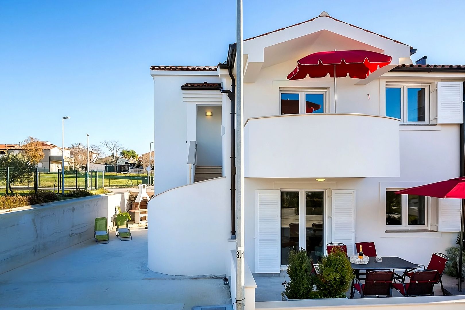 ISTRIEN, MEDULIN – Haus mit zwei Wohnungen, 100 Meter vom Meer entfernt Medulin, die Spitze Istriens, wie sie oft genannt wird, ist einer der beliebtesten Touristenorte der Halbinsel und zählt zu den zwanzig bekanntesten Reisezielen an der Adria. Das einst kleine Fischerdorf Medulin blickt auf eine reiche Kulturgeschichte zurück und profitiert von seiner günstigen geografischen Lage, einem gut geschützten Hafen und einem fruchtbaren Hinterland, die zu seiner wirtschaftlichen Entwicklung beigetragen haben. Auch die kleineren Orte Banjole, Pješčana uvala (bekannt für seine Sandstrände), Pomer, Premantura, Vinkuran und Vintijan gehören zur Gemeinde Medulin. Die kleine Halbinsel Vižula, eine archäologische Stätte, die seit 1974 unter Denkmalschutz steht, gehört ebenfalls zu Medulin. Unweit des Zentrums von Medulin steht ein Haus mit zwei Wohnungen, nur 100 Meter vom Meer entfernt, zum Verkauf. Neben der günstigen Lage zeichnet sich die Immobilie durch ihre hochwertige Bauweise aus, die langfristige Zufriedenheit und hohen Wohnkomfort garantiert. Der Wohnbereich ist klar strukturiert und optimal genutzt. Das komfortable Doppelhaus erstreckt sich über Erdgeschoss und Obergeschoss und besteht aus zwei elegant möblierten und bestens ausgestatteten Wohneinheiten. Beide Wohneinheiten verfügen über einen separaten Eingang und jeweils über einen offenen Wohnbereich mit Küche, Esszimmer und Wohnzimmer sowie Zugang zur Terrasse, zwei Schlafzimmer und Badezimmer. Der Garten ist gärtnerisch gestaltet und umzäunt. Lage, Raumaufteilung und Komfort machen diese Immobilie zu einer idealen Gelegenheit für ein ruhiges Familienleben sowie zu einer lohnenden Investition zur touristischen Vermietung.