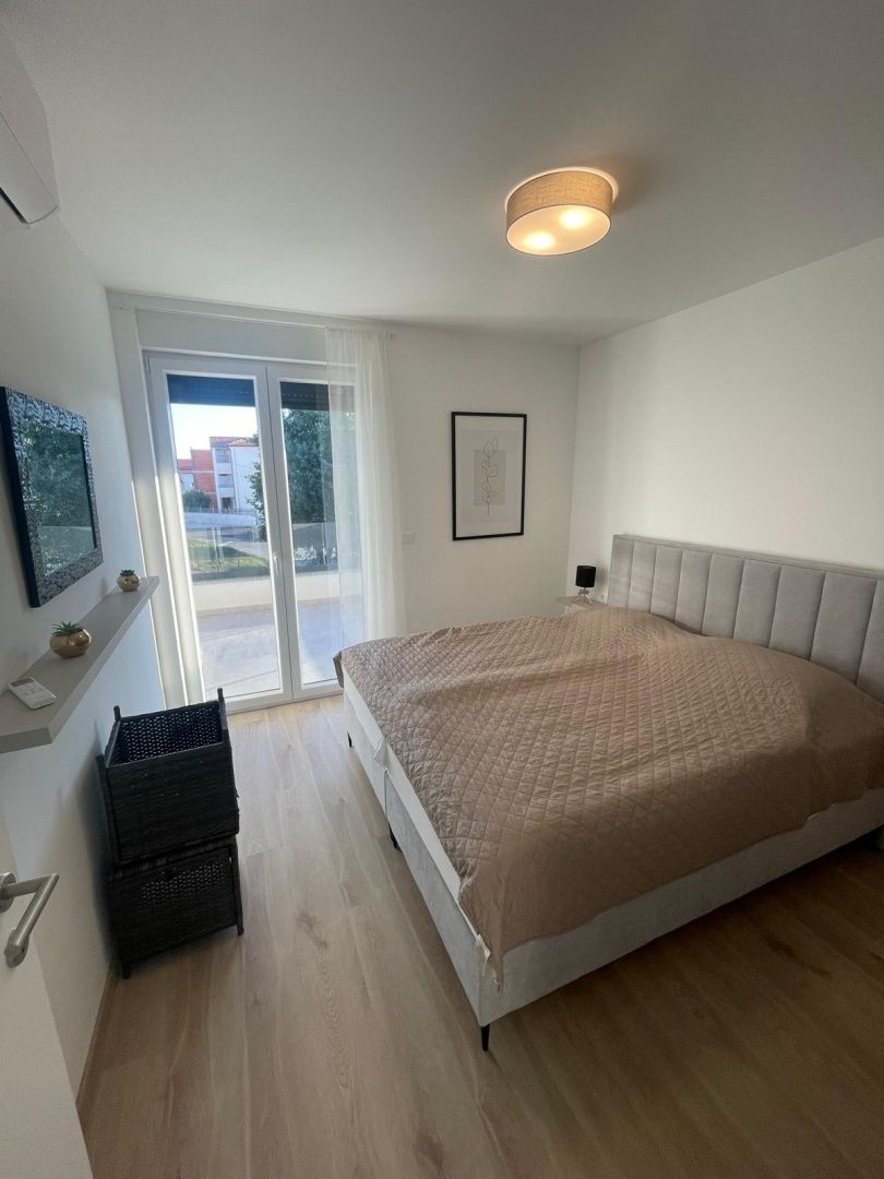 ISTRIEN, MEDULIN – Wohnung in Neubau mit zwei Stellplätzen, möbliert, Meerblick Zum Verkauf steht eine Neubauwohnung mit Meerblick im ersten Stock eines kleinen Wohnhauses mit insgesamt drei Wohnungen. Die Wohnung hat eine Fläche von 74,53 m² (reduzierte Fläche: 65,78 m²) und besteht aus einem Flur mit Garderobe, einer Küche mit Esszimmer und Wohnzimmer, zwei Schlafzimmern, einem Badezimmer und einem überdachten Balkon mit herrlichem Meerblick. Die Wohnung ist voll möbliert und sofort bezugsfertig. Sie ist mit zwei Klimaanlagen und Fußbodenheizung im Wohnzimmer, Flur und Badezimmer ausgestattet, was das ganze Jahr über für zusätzlichen Komfort sorgt. Die Wohnung befindet sich in einer ruhigen und angenehmen Wohngegend ohne Lärm, ideal für Familien oder Urlauber. Schöne, gepflegte Strände sind nur fünf Autominuten entfernt. Zur Wohnung gehören zwei Stellplätze, die im Preis inbegriffen sind. Diese Immobilie ist eine ausgezeichnete Wahl für alle, die Ruhe, hochwertige Bauqualität und die Nähe zum Meer suchen. Um eine Besichtigung der Immobilie zu vereinbaren, rufen Sie den Makler vertrauensvoll an – Beratungen sind auf Deutsch, Italienisch und Englisch möglich.