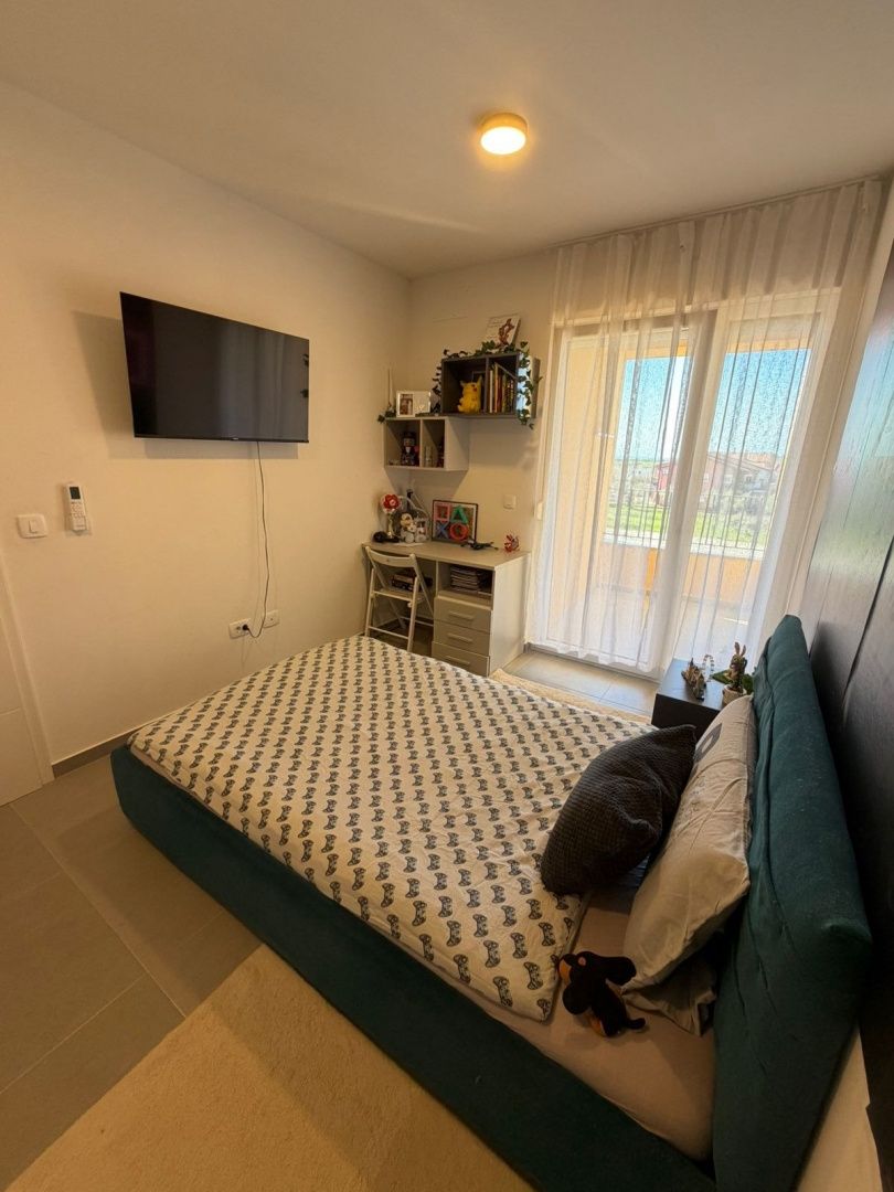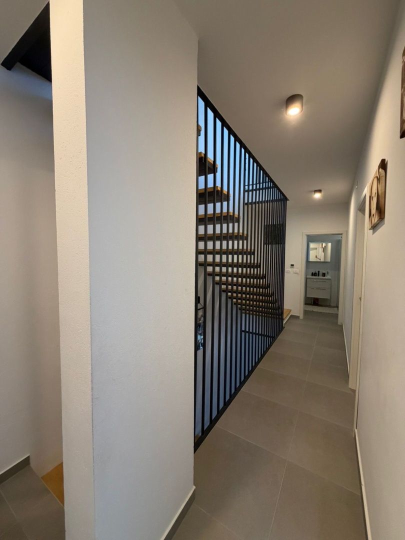 Istrien, Novigrad – Modernes Haus mit Meerblick In einer der begehrtesten Lagen Novigrads, nur 2 Kilometer vom Meer und gepflegten Stränden entfernt, befindet sich dieses moderne Reihenhaus, das zeitgenössisches Design, Funktionalität und mediterranes Lebensgefühl perfekt vereint. Es liegt in ruhiger Umgebung und ist ideal für Familien, aber auch eine hervorragende Investition zur touristischen Vermietung. Das Haus wurde 2022 erbaut und bietet auf drei Etagen 129 m² Wohnfläche. Es befindet sich inmitten einer Terrasse, was für zusätzliche Privatsphäre und Energieeffizienz sorgt. Im Erdgeschoss befinden sich eine Eingangshalle, ein Gäste-WC und ein geräumiges Wohnzimmer mit offener Küche und Essbereich. Dank großer Glasfronten, die in den umzäunten Garten führen, ist der Raum lichtdurchflutet – ein perfekter Ort zum Entspannen, Grillen oder geselligen Beisammensein mit Familie und Freunden. Im ersten Stock befinden sich drei komfortable Schlafzimmer und ein modernes Badezimmer, die ausreichend Platz für eine größere Familie oder Gäste bieten. Das Obergeschoss ist der Privatsphäre und dem Luxus vorbehalten und bietet ein geräumiges Hauptschlafzimmer mit eigenem Bad, zusätzlichem Stauraum und Zugang zu einer Terrasse mit Meerblick. Diese Terrasse verleiht dem Anwesen einen besonderen Charme und ein exklusives Ambiente. Das Haus ist mit einer Fußbodenheizung ausgestattet, die ganzjährig für angenehme Temperaturen sorgt. Zwei Parkplätze sind ein zusätzlicher Pluspunkt. Diese Immobilie ist die ideale Gelegenheit für alle, die ein modernes Zuhause in Meeresnähe suchen, in einer Stadt mit erstklassiger Gastronomie, gepflegten Promenaden und authentisch istrischem Flair.