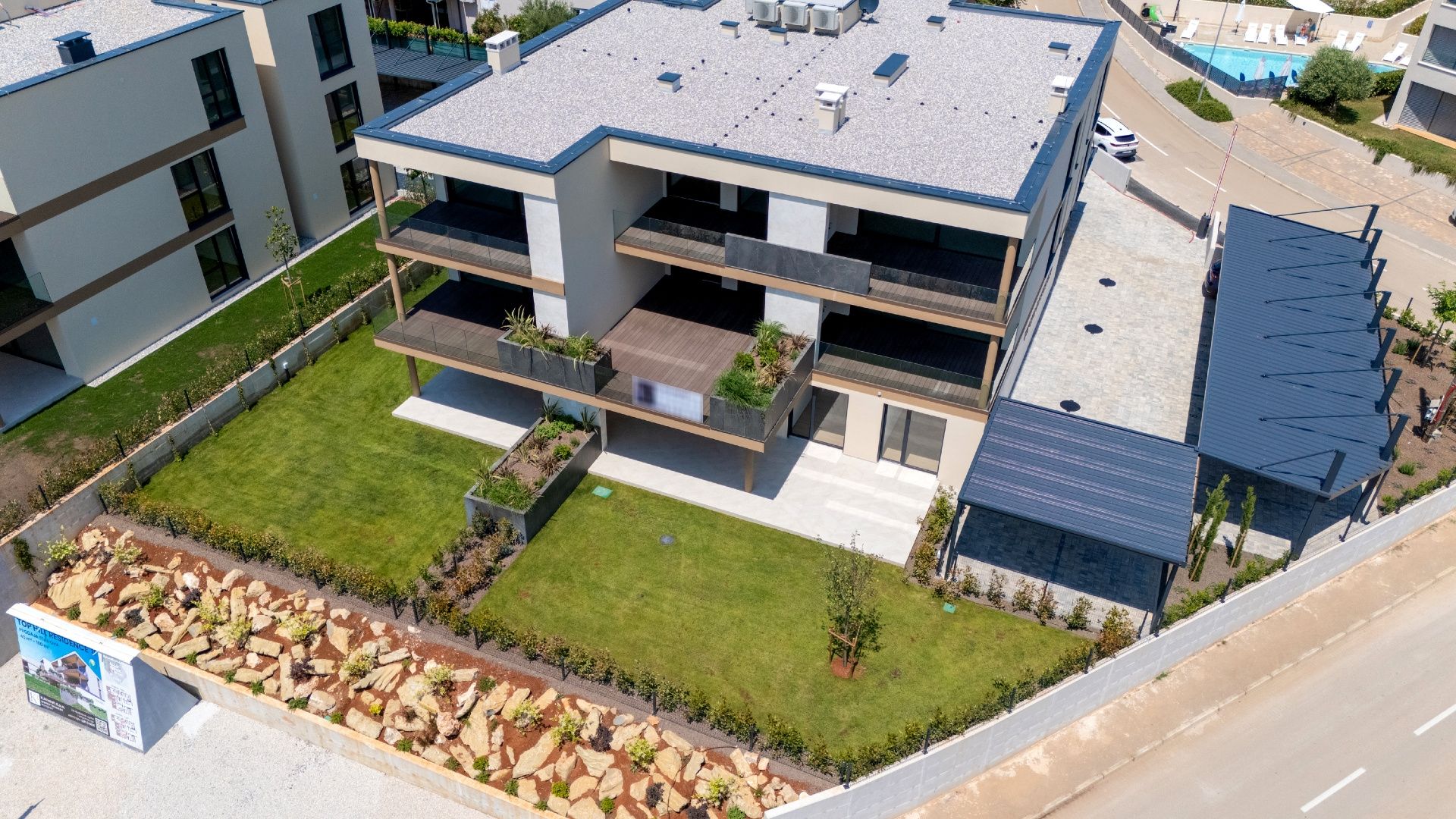 ISTRIEN, NOVIGRAD – Apartment in einem luxuriösen Neubau Novigrad, einst ein beschauliches Fischerdorf, hat sich im Laufe der Jahre zu einem attraktiven Reiseziel für Touristen aus ganz Europa und der Welt entwickelt, von denen viele regelmäßig wiederkommen. Als einer der begehrtesten Orte für Urlaubsaufenthalte hat sich Novigrad seinen unwiderstehlichen Charme eines ruhigen Fischerstädtchens bewahrt – jene unverwechselbare, fast intime Atmosphäre, die so charakteristisch für kleine Mittelmeerstädte ist. Novigrad, eine kleine Mittelmeerstadt, ist eine architektonische Perle voller historischer Sehenswürdigkeiten, reichem kulturellem Erbe, unberührter Naturschönheiten sowie erstklassiger Gastronomie und vielem mehr. Die Riviera von Novigrad an der Westküste Istriens erstreckt sich von Dajla bis zur Mündung des Flusses Mirna und zeichnet sich durch eine zerklüftete, flache und gut zugängliche Küste mit Fels- und Kieselstränden aus. Im Wohngebiet von Novigrad, unweit des Meeres und aller Einkaufs-, Kultur-, Bildungs- und Freizeiteinrichtungen, befindet sich ein modernes Gebäude, das sich über Erdgeschoss und zwei Obergeschosse erstreckt und insgesamt acht Wohneinheiten umfasst. Beim Bau wurden langlebige und zuverlässige Materialien verwendet, die langfristige Zufriedenheit und Sicherheit der Bewohner gewährleisten. Die Raumplanung jeder Etage wurde detailliert umgesetzt, was zu einer hochwertigen Raumaufteilung führt. Die Kombination aus Ästhetik, Funktionalität und Komfort stand bei der Gestaltung aller Wohnungen im Vordergrund. Der zeitgenössische Stil entspricht den neuesten Trends im Interior Design und legt Wert auf dezente und unaufdringliche Details, die durch warme Naturtöne veredelt werden. Die Kombination aus traditionellen Materialien und modernem Design vermittelt einen Eindruck von Luxus, der durch Details wie erstklassiges Eichenparkett, großformatige Keramikfliesen erster Klasse und hochwertige Sanitäreinrichtungen namhafter Hersteller unterstrichen wird. Ein solches Interieur mit natürlichen Texturen und warmen Farbtönen strahlt unaufdringliche Gastfreundschaft aus, während hohe Decken und klare, gerade Linien in Verbindung mit großen Glaswänden das großzügige Raumgefühl zusätzlich betonen. Gegenstand des Verkaufs ist eine Wohnung im ersten Obergeschoss des Gebäudes. Die Wohnung besteht aus einem Schlafzimmer, einem Badezimmer, einem Flur, einem Abstellraum und einem offenen Wohnbereich, der Wohnzimmer, Esszimmer und Küche mit Zugang zur Terrasse verbindet. Zur Wohnung gehört ein 3,14 m² großer Abstellraum im Erdgeschoss sowie ein 12,5 m² großer überdachter Parkplatz. Dieses luxuriöse Neubaugebäude bietet ideale Voraussetzungen für ein komfortables Familienleben und eignet sich auch hervorragend als Kapitalanlage zur touristischen Vermietung. Der angegebene Preis bezieht sich auf den Rohbauzustand ohne Möbel, sodass Sie die Wohnung nach Ihren Wünschen und Vorlieben einrichten können. Verkäufer ist eine juristische Person. Die Mehrwertsteuer ist im Preis enthalten.