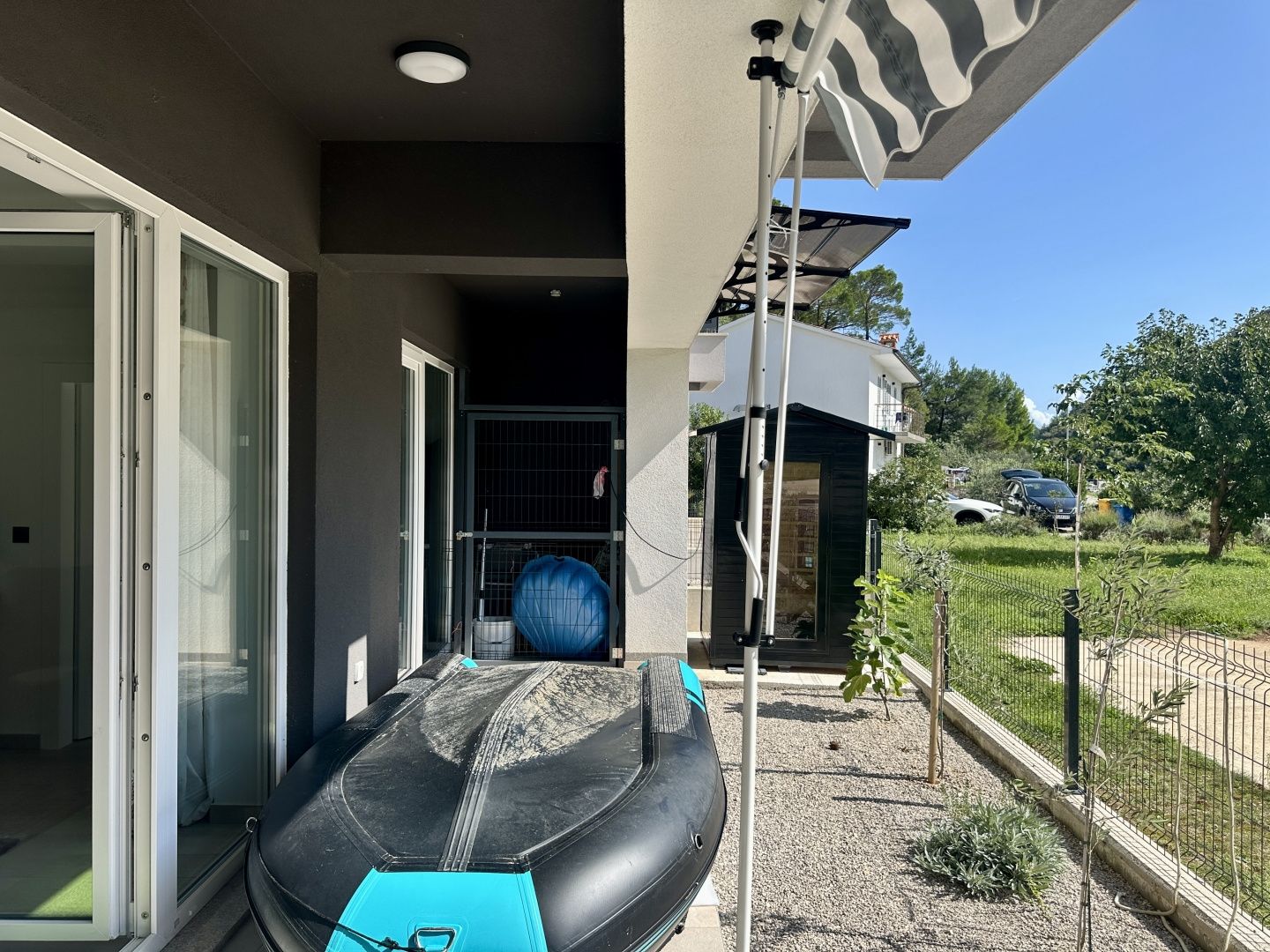 ISTRIEN, PLOMIN LUKA – Wohnung in erster Reihe zum Meer Zum Verkauf steht eine moderne Wohnung im Erdgeschoss eines kleinen Wohngebäudes aus dem Jahr 2023, nur 10 Meter vom Meer und Strand entfernt. Die Wohnung befindet sich in äußerst ruhiger Lage und gleichzeitig in unmittelbarer Nähe von Restaurants, Geschäften und allen notwendigen Annehmlichkeiten – nur 2 Gehminuten entfernt. Die Wohnung mit einer Gesamtfläche von 56,62 m² besteht aus einem Eingangsbereich, einem Badezimmer, einem Wohnzimmer mit Küche und Esszimmer, einem Schlafzimmer und einer überdachten Terrasse mit wunderschönem Meerblick. Es verfügt außerdem über einen eigenen Garten von 14,80 m², den der derzeitige Eigentümer auch als Ruhebereich mit Sauna nutzt, und einen ausgewiesenen Parkplatz. Hauptvorteile: - erste Reihe zum Meer - ruhige Lage - wunderschöne Aussicht vom Wohnzimmer, der Küche, dem Schlafzimmer und der Terrasse - Neubau (2023) von höchster Qualität und aus hochwertigen Materialien - die Wohnung wird voll möbliert verkauft - ordentliches Eigentumsverhältnis 1/1, keine Belastungen Diese Immobilie stellt eine seltene Gelegenheit auf dem Markt dar – sie ist ideal für den Eigengebrauch, aber auch als Investition zur touristischen Vermietung mit ausgezeichnetem Potenzial.