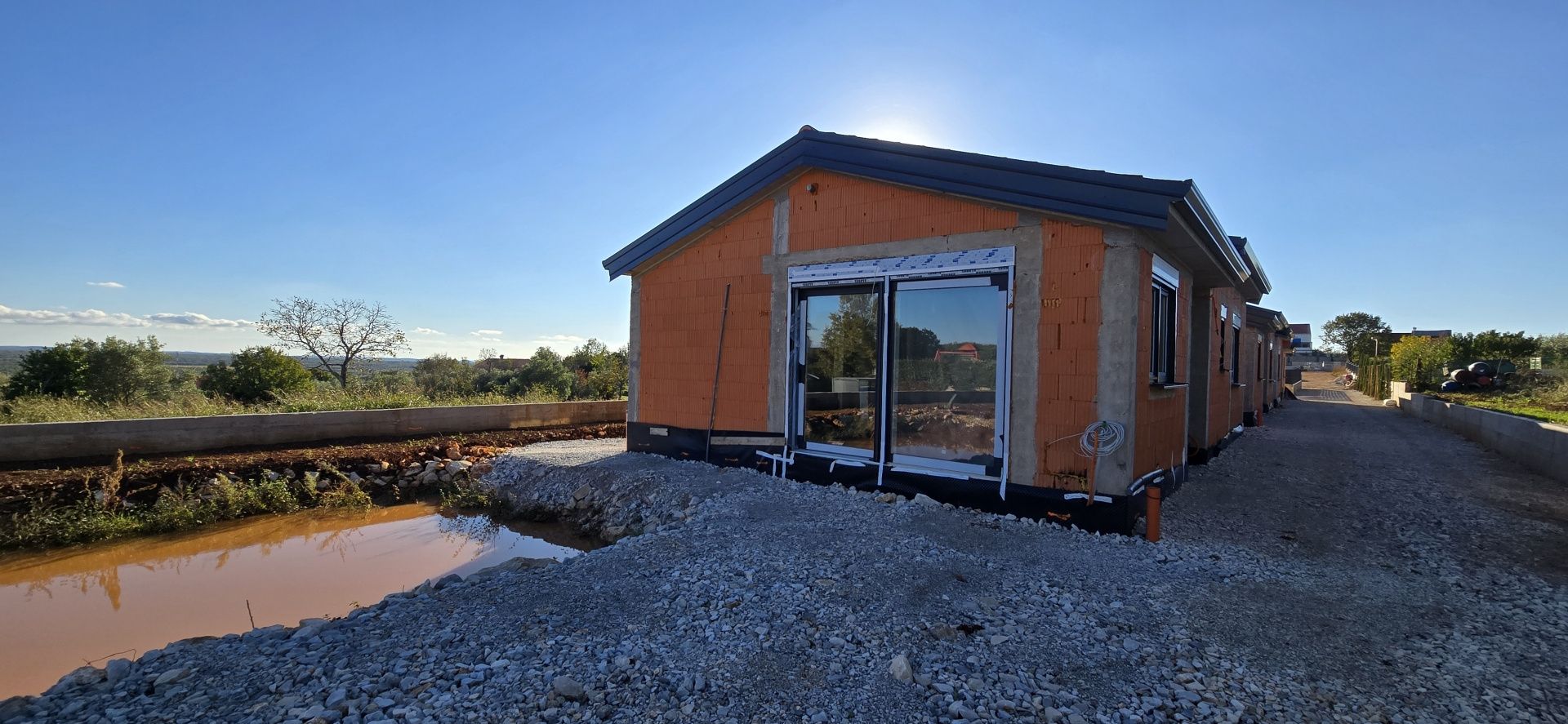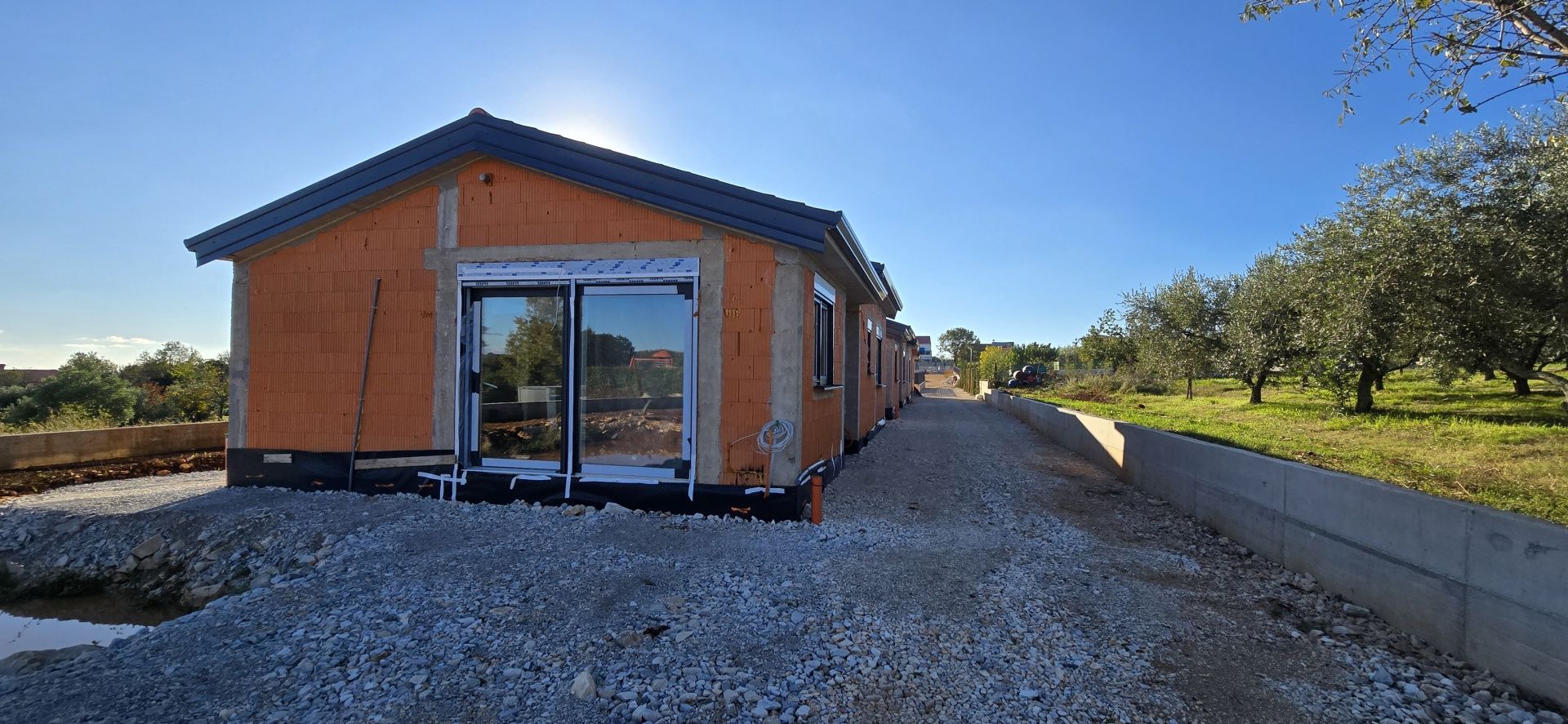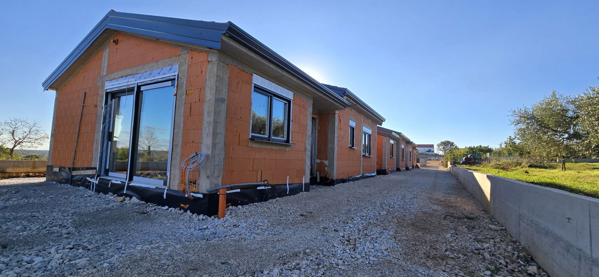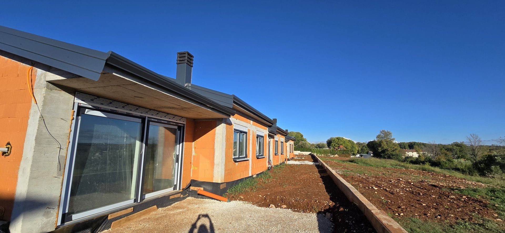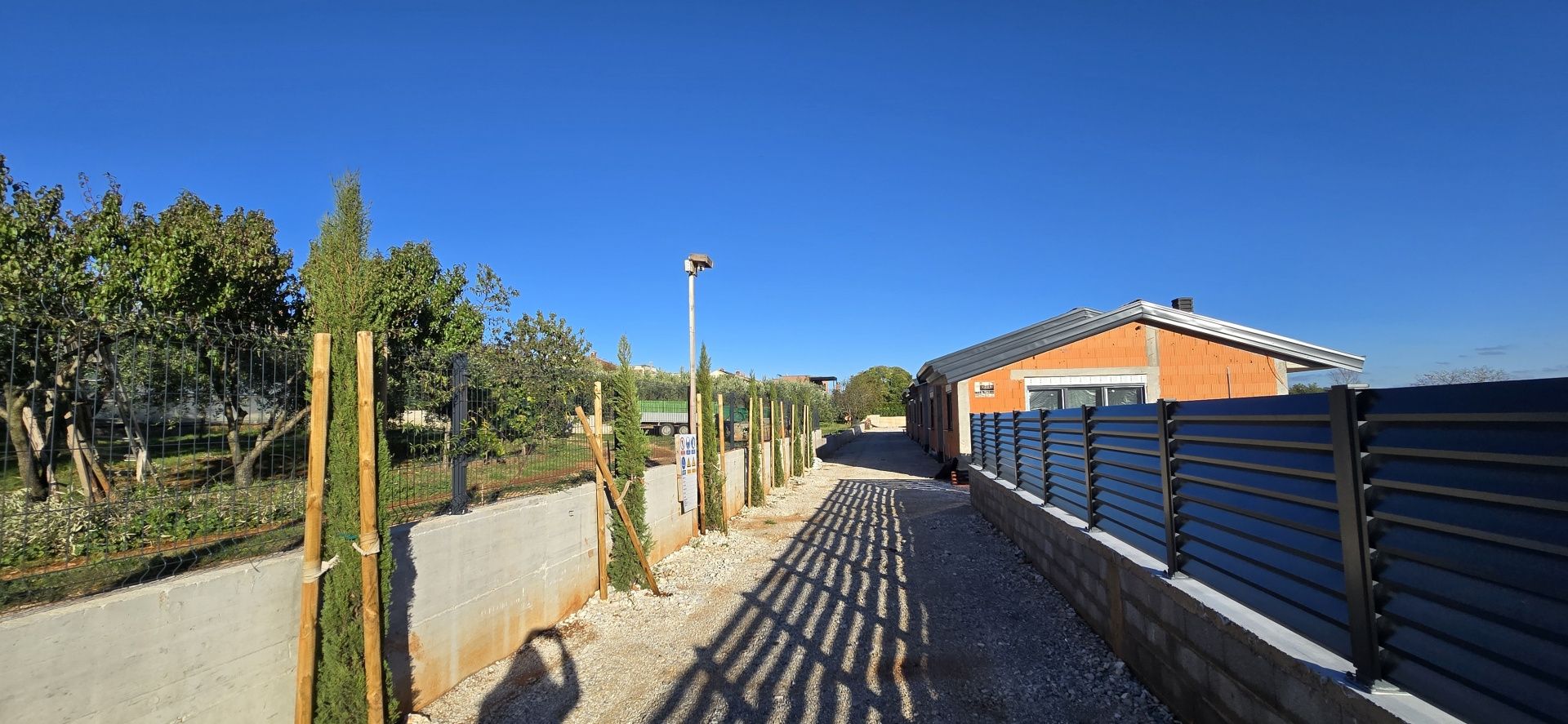 ISTRIEN, POREČ – Neubau, Designer-Einfamilienhaus mit privatem Pool Poreč ist einer der bekanntesten Touristenorte Istriens und liegt an der Westküste der Halbinsel. Die Stadt ist bekannt für ihre reiche Geschichte, gepflegte Strände, ihr ausgezeichnetes gastronomisches Angebot und ihre lebendige mediterrane Atmosphäre. Die Stadt besticht durch die UNESCO-geschützte Euphrasius-Basilika, eine charmante Altstadt sowie zahlreiche Kultur- und Sporteinrichtungen. Mit ihrer hervorragenden Verkehrsanbindung und der gut ausgebauten Infrastruktur ist sie ein idealer Ort zum Leben und Entspannen. Im ruhigen und malerischen Kaštelir, nur 13 Kilometer von Poreč und der Adriaküste entfernt, befindet sich ein modernes Einfamilienhaus, das zeitgenössisches Design, Funktionalität und Komfort perfekt vereint. Umgeben von Weinbergen, Olivenhainen und charakteristischer roter Erde bietet dieser Neubau ein einzigartiges istrisches Ambiente gepaart mit modernem Wohnstandard. Das Haus erstreckt sich über eine Etage und hat eine Gesamtwohnfläche von 91 m². Der Innenbereich umfasst eine Eingangshalle, ein geräumiges und helles Wohnzimmer, das offen mit Küche und Esszimmer verbunden ist, drei komfortable Schlafzimmer, ein modernes Badezimmer und ein zusätzliches Gäste-WC. Das Wohnzimmer öffnet sich zu einer Terrasse, ideal für laue istrische Abende. Hohe Decken in allen Räumen sorgen für zusätzliche Offenheit. Der ca. 300 m² große Garten ist sorgfältig angelegt und eingezäunt und umfasst einen 30 m² großen privaten Pool mit Sonnenterrasse, einen gepflegten Garten, einen privaten Eingang und einen Parkplatz neben dem Haus. Ein zusätzlicher Parkplatz steht den Gästen auf dem Gemeinschaftsparkplatz zur Verfügung. Eine Ladestation für Elektrofahrzeuge befindet sich am Eingang des Gebäudes. Das Haus ist außerdem mit Solarmodulen ausgestattet, die zur Energieeffizienz beitragen. Die hochwertige Bauweise und die sorgfältig ausgewählten Materialien sorgen für einen hohen Wohnstandard. Es wurden PVC-Fenster mit Dreifachverglasung und Aluminium-Eingangstüren (innen weiß, außen anthrazit) eingebaut. Das Haus ist mit einer elektrischen Fußbodenheizung und Klimaanlagen ausgestattet, die sowohl heizen als auch kühlen. Das gesamte System lässt sich über eine mobile App steuern. Für zusätzliche Sicherheit verfügt das Anwesen über eine integrierte Videoüberwachung an Vorder- und Rückseite. Der teilweise Meerblick trägt zusätzlich zum Gefühl von Ruhe und Luxus bei. Das Haus wird schlüsselfertig verkauft, die Fertigstellung ist für Ende 2025 geplant. Ein Kauf in der aktuellen Bauphase ist ebenfalls möglich, was zusätzliche Anpassungen nach individuellen Wünschen ermöglicht. Diese Immobilie ist eine hervorragende Gelegenheit für alle, die ein modernes, funktionales und ästhetisch ansprechendes Zuhause in einer der begehrtesten Lagen Istriens suchen. Es besteht auch die Möglichkeit, alle drei Häuser des Projekts für einen Gesamtpreis von 1.245.000 € zu erwerben.