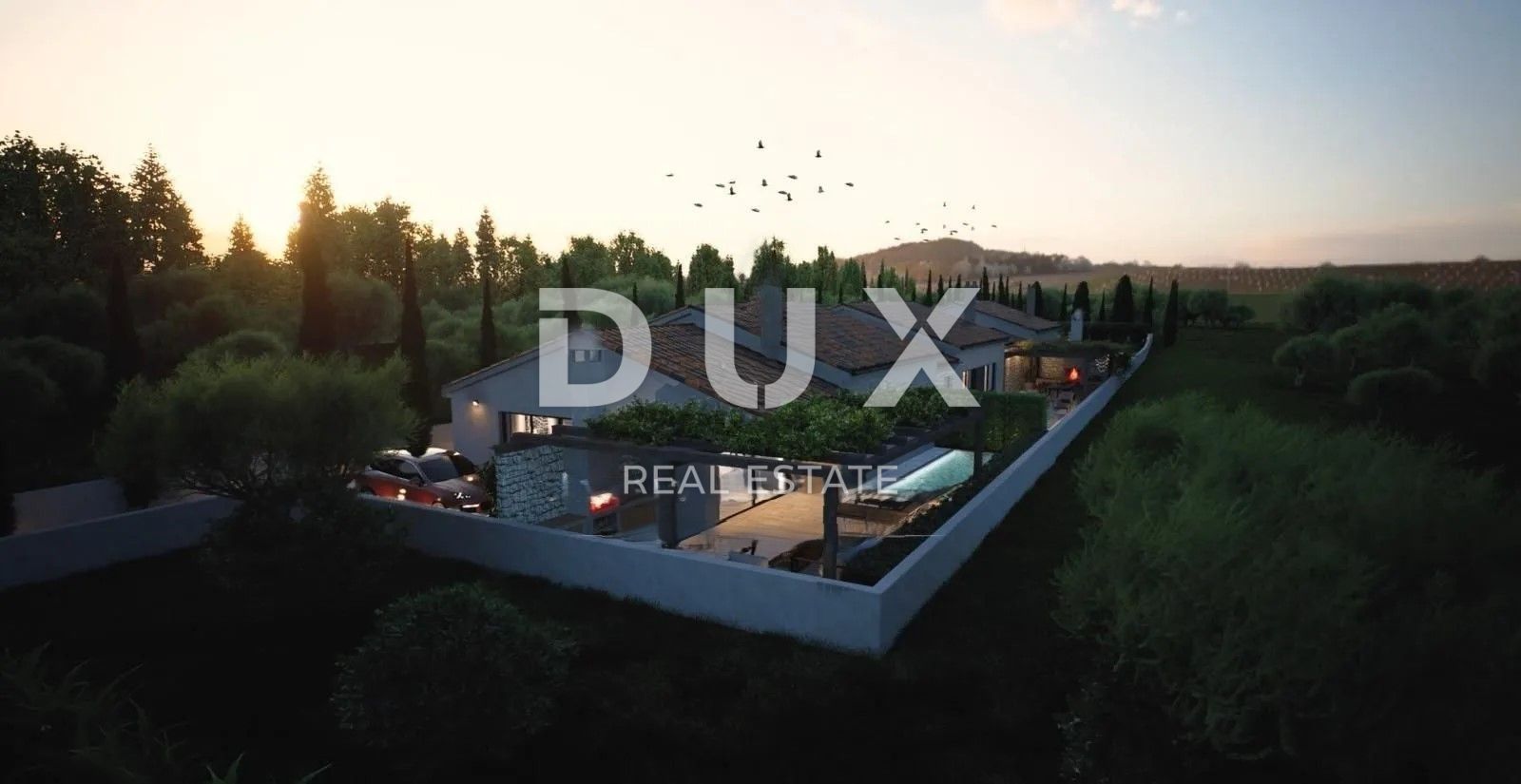 ISTRIEN, POREČ – Gemütliches Einfamilienhaus in idyllischer Umgebung Poreč ist eine der attraktivsten Städte Istriens an der Westküste der Halbinsel und bekannt für die perfekte Mischung aus Geschichte, Natur und modernem Tourismus. Die Stadt besticht durch die beeindruckende Euphrasius-Basilika unter UNESCO-Schutz, eine malerische Altstadt mit engen Steingassen sowie zahlreiche gepflegte Strände und Promenaden am Meer. Poreč bietet ein reichhaltiges gastronomisches und önologisches Angebot, zahlreiche kulturelle Veranstaltungen sowie vielfältige Sport- und Freizeitaktivitäten das ganze Jahr über. Dank seiner guten Verkehrsanbindung und der gut ausgebauten Infrastruktur eignet sich Poreč ideal für Urlaub und ganzjähriges Wohnen. Im charmanten Dorf Kaštelir, im grünen Hinterland Westistriens, nur 13 Kilometer von der Küste und der Stadt Poreč entfernt, befindet sich dieses moderne Einfamilienhaus, das Funktionalität, Komfort und zeitgenössisches Design perfekt vereint. Umgeben von Weinbergen, Olivenhainen und der typisch istrischen Landschaft ist dieses Anwesen ideal für alle, die ein ruhiges Leben in authentischer Umgebung und dennoch in der Nähe aller notwendigen Annehmlichkeiten suchen. Das Haus verfügt über 91 m² Wohnfläche und ist sorgfältig aufgeteilt. Die Eingangshalle führt zu einem geräumigen Wohnzimmer, das offen mit Küche und Esszimmer verbunden ist. Große Glaswände sorgen für viel Tageslicht und bieten direkten Zugang zur Terrasse. Drei Schlafzimmer bieten komfortablen Platz für die ganze Familie, während das Badezimmer und die zusätzliche Toilette mit Fokus auf Funktionalität und Ästhetik gestaltet wurden. Hohe Decken im gesamten Haus sorgen für zusätzliche Offenheit. Der ca. 100 m² große Garten bietet die Möglichkeit, einen Swimmingpool zu bauen, was dem zukünftigen Eigentümer die Freiheit gibt, seinen Außenbereich nach seinen eigenen Wünschen und Bedürfnissen zu gestalten. Das Anwesen wurde mit hochwertigen Materialien gebaut und für einen komfortablen Aufenthalt das ganze Jahr über ausgestattet. Es wurden PVC-Fenster mit Dreifachverglasung und Aluminium-Eingangstüren in einer Kombination aus Weiß und Anthrazit eingebaut. Elektrische Fußbodenheizung und Klimaanlage befinden sich im Wohnzimmer und im Flur. Das gesamte System kann über eine mobile App gesteuert werden. Für zusätzliche Sicherheit ist eine Videoüberwachung auf beiden Seiten des Gebäudes geplant, während Solarmodule zur Energienachhaltigkeit beitragen. Am Eingang wird eine Ladestation für Elektrofahrzeuge installiert. Das Haus wird schlüsselfertig verkauft, die Fertigstellung der Arbeiten ist für Ende 2025 geplant. Ein Kauf während der laufenden Bauphase ist ebenfalls möglich, was Raum für Vereinbarungen über die letzten Details und mögliche Anpassungen lässt. Dieses moderne istrische einstöckige Haus bietet eine hervorragende Wohn-, Urlaubs- oder Investitionsmöglichkeit und vereint ruhige Lage, hochwertige Bauweise und Flexibilität bei der Gestaltung des Außenbereichs. Für alle weiteren Informationen und die Organisation einer Besichtigung stehen wir Ihnen gerne zur Verfügung.
