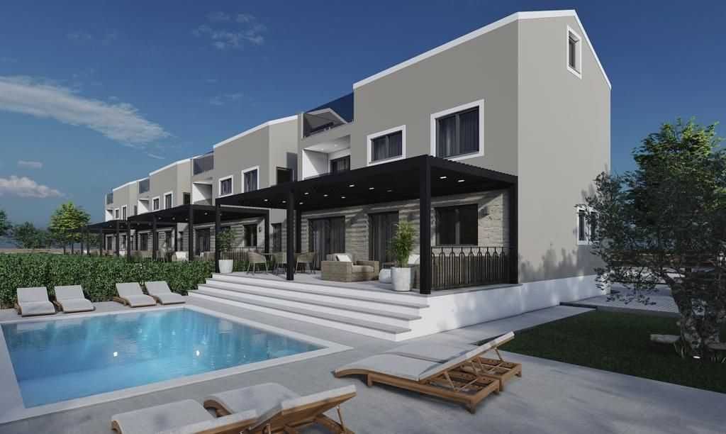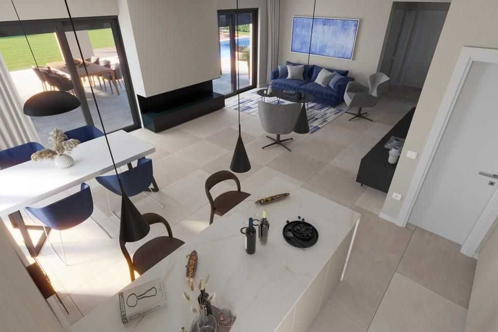 ISTRIEN, POREČ – Ein Wohngebiet in der Nähe von Poreč Das ganze Jahr über finden Sie in der Stadt einen Ort für Ruhe, Unterhaltung, Sport, Erholung, Besichtigung des historischen Erbes und zahlreicher Touristenattraktionen. Wenn Sie einen Ausflug machen, können Sie den Nationalpark Brijuni besuchen, die unterirdische Höhle Baredine betreten, durch das Teleskop des Observatoriums Višnjan schauen, die Schönheit der umliegenden magischen Städte an der Küste oder im Landesinneren Istriens bewundern, mit Dinosauriern im Dinopark abhängen, die Rutschen im größten Wasserpark Kroatiens – Aquacolors – hinunterrutschen und auf der Go-Kart-Bahn Motodrom Poreč Adrenalin erleben. Sie können auf den Radwegen entlang der Küste, durch das ländliche Hinterland, mediterrane Haine mit Burgresten, prähistorischen Hügelfestungen, Kirchen und rustikalen Villen radeln oder wandern. An einem kleinen und friedlichen Ort, der Natur und Stille ausstrahlt, wo Sie zu jeder Tageszeit das Zwitschern der Vögel hören können und der dennoch nur 11 km vom Stadtzentrum von Poreč und seinen ersten Stränden sowie nur wenige Autominuten vom istrischen Y entfernt ist, bieten wir Ihnen ein Reihenhaus bzw. das erste in einer Reihe mit einem Swimmingpool auf drei Etagen. Das Haus wird das dritte in einer Reihe sein, es wird sich über 3 Etagen mit einer Wohnfläche von 151 m2 erstrecken und über einen Garten von ca. 600 m2 verfügen. Im Erdgeschoss des Hauses wird es eine Küche mit einem Essbereich in einem offenen Raumkonzept, ein Wohnzimmer, eine Speisekammer, eine Gästetoilette und eine Waschküche geben. Im ersten Stock gibt es 3 Schlafzimmer, von denen eines als Hauptschlafzimmer konzipiert ist und über ein eigenes Badezimmer und einen eigenen Ausgang auf eine eigene Terrasse verfügen wird, während sich die beiden anderen Zimmer ein gemeinsames Badezimmer teilen werden, von denen eines auch einen Ausgang auf eine andere Terrasse haben wird. Das Dachgeschoss ist als Entspannungsbereich mit Wellnessbereich und Whirlpool konzipiert. Auf Wunsch des zukünftigen Käufers kann ein Teil des Dachgeschosses für andere Zwecke umgebaut werden. Vom Dachgeschoss bzw. Entspannungsbereich aus besteht außerdem Zugang zur Terrasse. Die Böden im Haus werden mit Keramikfliesen ausgelegt. Auf Wunsch des zukünftigen Eigentümers kann dies jedoch in Absprache mit dem Investor geändert werden. Die Heizung erfolgt über Fußbodenheizung mit Wärmepumpen, zur Kühlung werden Klimaanlagen installiert. Der Swimmingpool wird 32 m² groß sein.