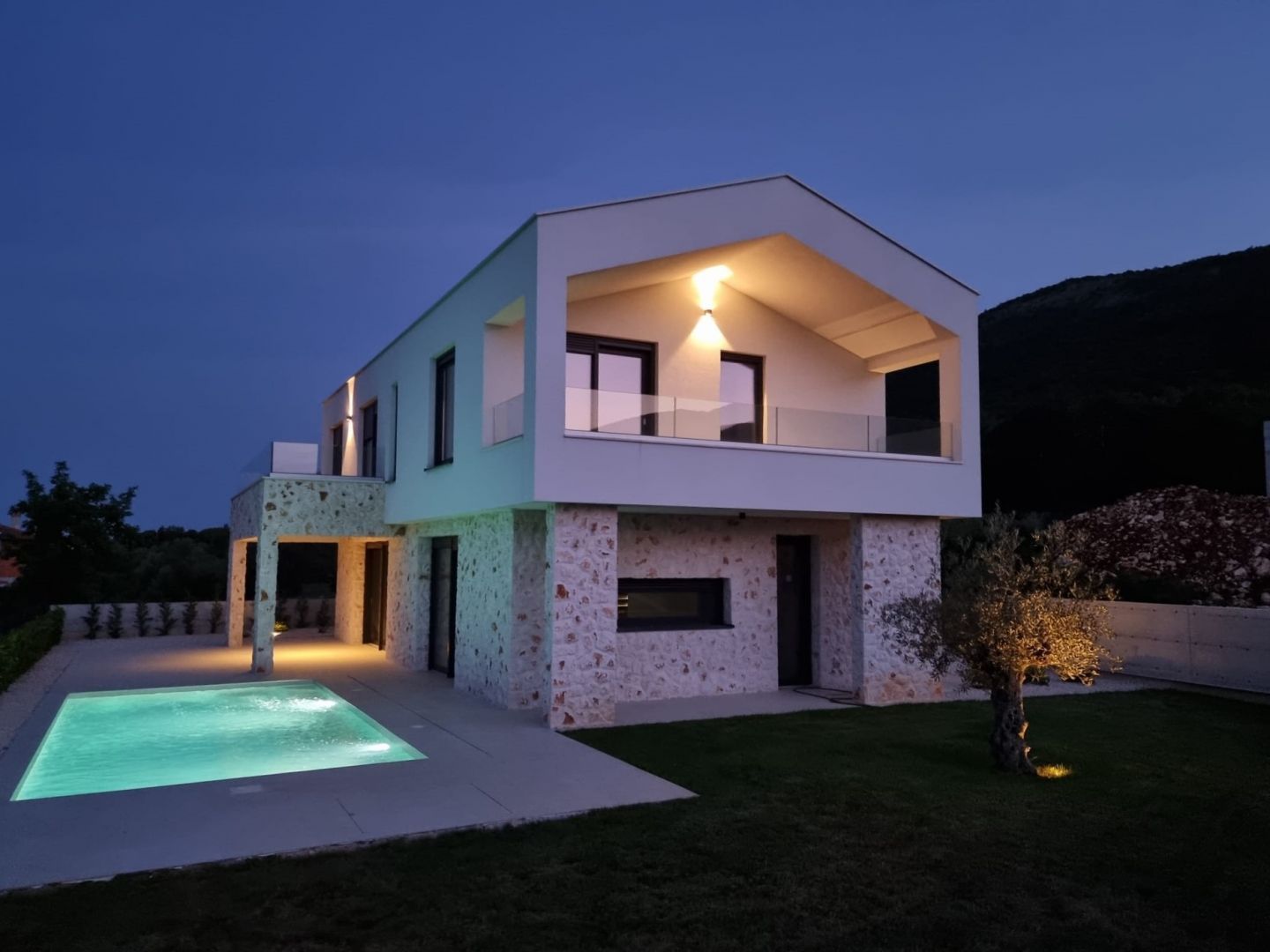 ISTRIEN, RABAC – Exklusive Neubauvilla mit spektakulärem Meerblick Auf halbem Weg zwischen Pula und Opatija, hoch über der Küste Istriens, liegt die Stadt Labin. Der mittelalterliche Kern war in den 1950er und 1960er Jahren ein Zentrum des Kohlebergbaus. Es ist ein Ort, an dem Geschichte und Moderne aufeinandertreffen. Zauberhafte Buchten, grandiose Gastronomie, herzliche und lebenslustige Einwohner prägen diese Stadt, die sich zu einem beliebten Reiseziel für Gäste aus dem deutschsprachigen Raum entwickelt hat. Ein herzliches Willkommen ist hier garantiert. Stellen Sie sich vor, Sie wachen jeden Morgen mit einem fantastischen Blick auf das Meer und die Inseln auf. Klingt wie ein Traum, oder? Mit dieser Villa werden Ihre Träume wahr... Unweit von Labin und Rabac, in einer von Ferienvillen dominierten Lage, wartet diese exklusive Villa mit eben solch einer Aussicht, Baujahr 2022, auf ihren neuen Besitzer! Auf 165 m2 Wohnfläche, die sich über das Erdgeschoss und den ersten Stock erstrecken, genießen Sie sämtlichen Komfort dieser modernen Villa. Das gesamte Erdgeschoss ist als offener Raum konzipiert und umfasst eine modern ausgestattete Küche mit Essbereich sowie ein geräumiges, helles Wohnzimmer. Große Glasschiebewände sorgen für Tageslicht und sorgen für einen angenehmen Aufenthalt, während das Zimmer geräumiger wirkt. Die bereits erwähnte Glaswand sorgt für eine hervorragende Kommunikation zwischen dem Erdgeschoss und dem Außenbereich der Villa. Außerdem gibt es im Erdgeschoss ein Badezimmer und einen Abstellraum. Über eine Innentreppe gelangen Sie in den ersten Stock, wo sich drei komfortable und modern eingerichtete Schlafzimmer befinden, jedes mit eigenem Bad, sodass die Privatsphäre aller Haushaltsmitglieder gewährleistet ist. Jedes Schlafzimmer verfügt außerdem über einen großzügigen Balkon, von dem Sie den uneingeschränkten Blick auf das Meer und die Inseln der Adria genießen können. Abgerundet wird das Ganze dieser modernen Villa durch einen 555 m2 großen Landschaftsgarten. Den zentralen Teil des Innenhofs nimmt ein einzigartiger Swimmingpool mit Liegewiese ein, der an warmen Tagen zur Abkühlung einlädt. Wenn Ihnen das Schwimmen im Pool zu langweilig wird, gehen Sie zum nächsten Strand, der nur 1 km von dieser Villa entfernt ist! Die Villa verfügt über zwei Parkplätze für Ihre Haustiere. Um zusätzliche Sicherheit zu gewährleisten, wurde eine Alarmanlage und eine Videoüberwachung installiert. Die Villa ist aus hochwertigen Materialien gebaut, mit 15–20 cm dickem istrischen Stein verkleidet und verfügt über große Gealan-Öffnungen und elektrische Rollläden. Es ist mit einer Klimaanlage in jedem Zimmer und einer Fußbodenheizung über eine Wärmepumpe ausgestattet. Dieses Haus bietet maximalen Komfort in einer sehr attraktiven Nachbarschaft und die Aussicht, die diese Villa bietet, wird jeden Ihrer Tage zu etwas Besonderem machen! Gelegenheit!!!