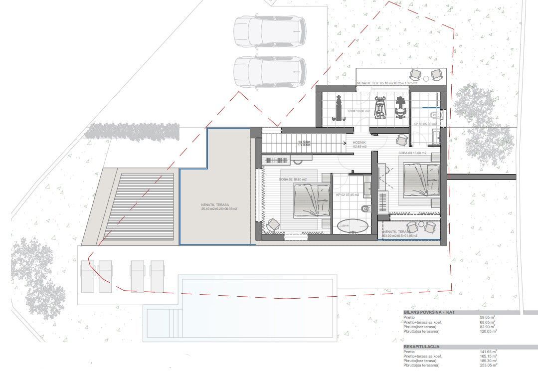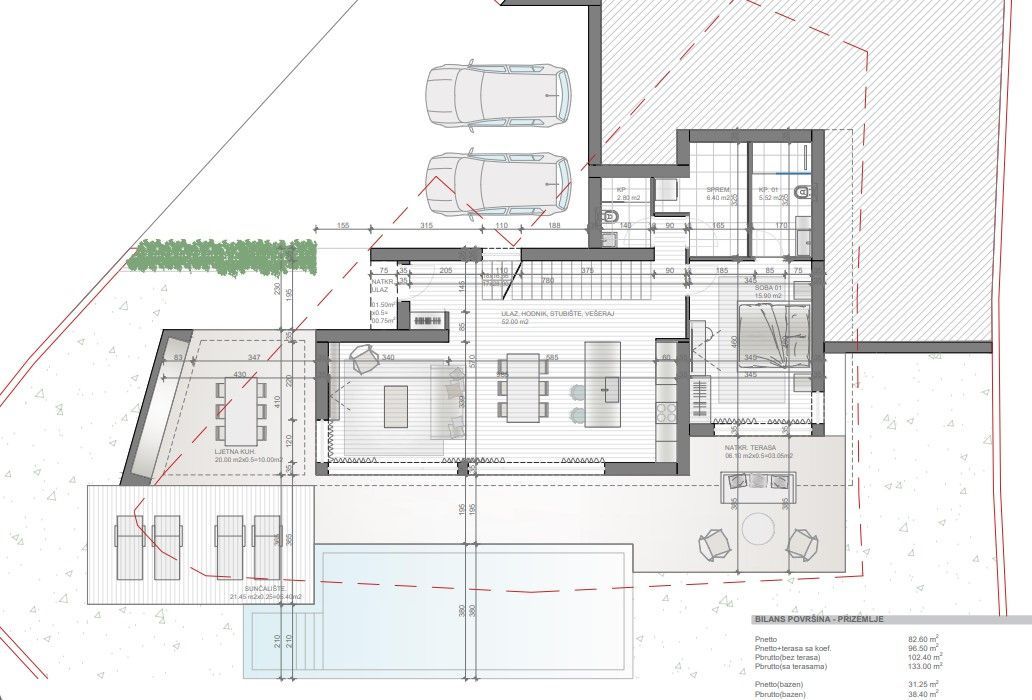 ISTRIEN, RABAC – Moderne Villa mit Pool und Meerblick An der Südostküste Istriens, wo grüne Hügel auf das Meer treffen und Natur und Kulturerbe sich vereinen, liegen zwei Städte ähnlicher Größe, aber mit unterschiedlichem, sich ergänzendem Charakter: Labin und Rabac. Das malerische Städtchen Labin erhebt sich auf einem 320 Meter hohen Hügel, nur fünf Kilometer von den weißen Kieselstränden Rabacs entfernt. Geprägt von einer reichen Geschichte und dem Bergbau, der diese Region einst formierte, ist Labin, das kurzzeitig eine unabhängige Republik war, heute eine faszinierende Stadt der Gegensätze: Alt und Neu, Geschichte und Gegenwart, Tourismus und Kunst. Unweit von Rabac und Labin steht diese exklusive, freistehende, moderne Villa mit Pool und herrlichem Meerblick zum Verkauf. Die Wohnfläche der Villa beträgt mit Terrassen 165,15 m² und ohne Terrassen 141,65 m². Das Erdgeschoss besteht aus einer offenen Wohnküche, einem Schlafzimmer mit eigenem Bad, einem Abstellraum und einem weiteren Badezimmer. Das Schlafzimmer und das Wohnzimmer führen auf eine geräumige, überdachte Terrasse, die zu einem großen Swimmingpool führt. Im Obergeschoss befinden sich zwei weitere Schlafzimmer, jeweils mit eigenem Bad. Außerdem gibt es einen privaten Fitnessraum. Die Zimmer bieten Zugang zu überdachten Terrassen mit fantastischem Meerblick. Hochwertige Aluminiumfenster und Aluminium-Glas-Wände sorgen für viel Licht und optimale Wärmedämmung in dieser Villa. Die Villa verfügt über Videoüberwachung und eine Alarmanlage sowie eine Klimaanlage mit Heiz- und Kühlfunktion, die sich per WLAN steuern lässt und automatisch abschaltet, sobald die Außenfenster geöffnet werden. Das Besondere an dieser modernen Villa ist das runde Fenster, in dem sich das Meer spiegelt. Sie befindet sich auf einem 594 m² großen Grundstück und ist komplett von einer Backsteinmauer umgeben. Eine Rampe am Eingang der Anlage ermöglicht die Einfahrt. Der angelegte Garten mit viel Grün und Pflanzen sowie einer automatischen Bewässerungsanlage bildet eine wunderschöne Oase der Ruhe. Zur Erfrischung an Sommertagen steht Ihnen ein schöner Swimmingpool mit Liegewiese zur Verfügung, und für Feinschmecker bietet die voll ausgestattete Sommerküche alles, was das Herz begehrt. Zwei Parkplätze für Ihre Haustiere sind vorhanden. Dank der Lage und des traumhaften Meerblicks ist dies eine ideale Kapitalanlage zur Vermietung während der Touristensaison, aber auch für alle, die ein perfektes Zuhause suchen – fernab vom Trubel der Stadt und dennoch in der Nähe aller Annehmlichkeiten des täglichen Lebens. Entfernung zum ersten Strand: 2 km, Luftlinie zum Meer: 500 m, bis zum Zentrum von Labin: 8 km.
