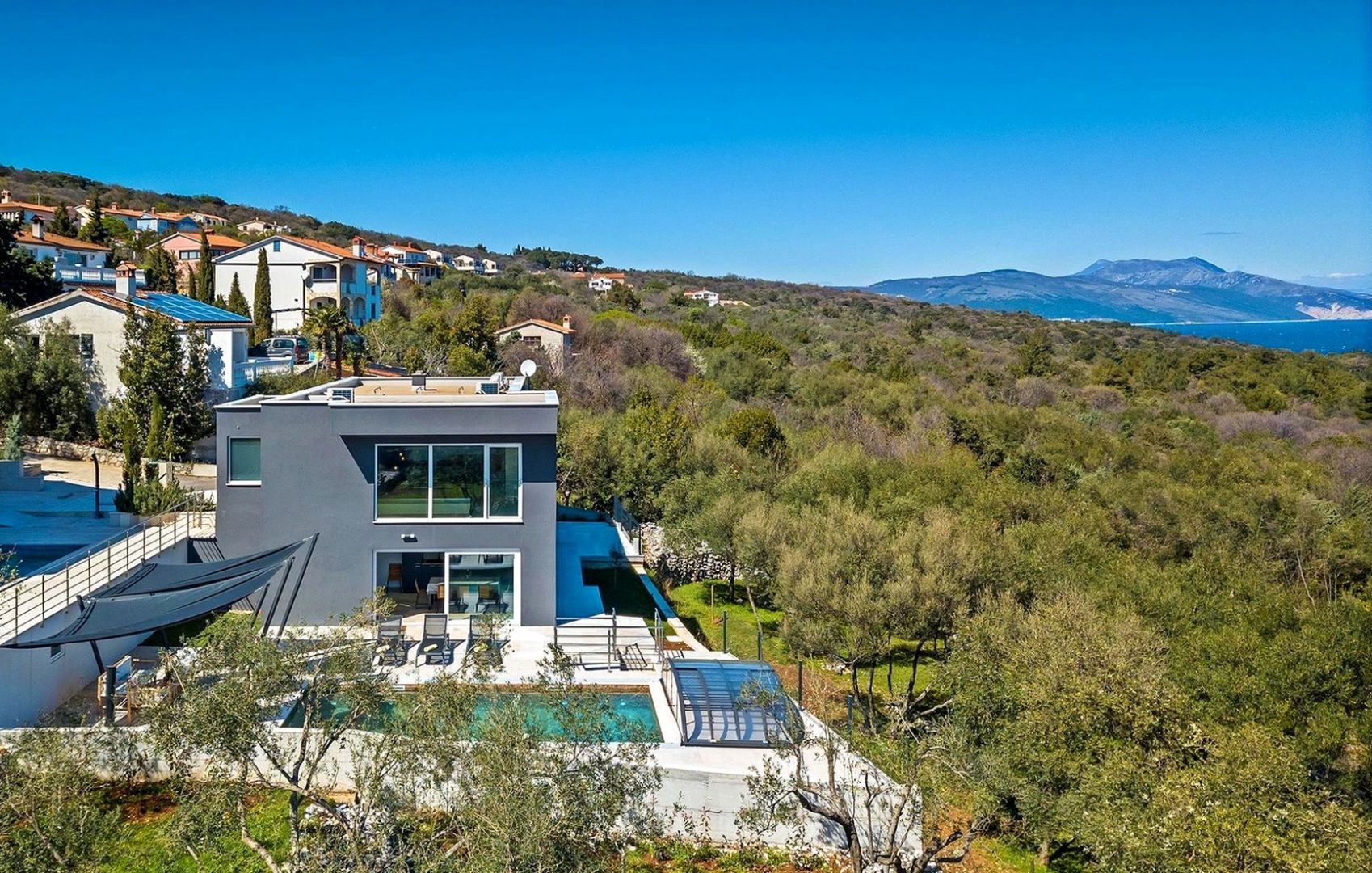 ISTRIEN, RABAC - Villa mit Panoramablick auf das Meer An der südöstlichen Küste Istriens, wo grüne Hügel auf das Meer treffen, wo Natur und Erbe zusammenkommen, gibt es zwei Städte ähnlicher Größe mit unterschiedlichen, sich aber gegenseitig ergänzenden Charakteren – Labin und Rabac, nur vier Kilometer voneinander entfernt. Rabac wird wegen seiner weißen Kiesstrände, der üppigen mediterranen Vegetation und dem kristallklaren Meer auch die Perle der Kvarner-Bucht genannt. Einst ein kleines Fischerdorf, ist Rabac heute ein attraktives Touristenziel, das in einem Netz farbenfroher Straßen eine Fülle kultureller Veranstaltungen verbirgt. Die grüne Umgebung von Rabac und das malerische Hinterland laden das ganze Jahr über zu Abenteuern, Forschung und Erholung ein. Unweit von Rabac und Labin in einer kleinen Siedlung am Meer steht eine Villa mit Panoramablick auf das Meer zum Verkauf. Es befindet sich in einer ruhigen Gegend mit einer Aussicht, die Učka, die Stadt Rijeka, die Kvarner-Inseln und die kristallklare Adria umfasst, und die Lage dieser Immobilie bietet genau diese bezaubernde und einzigartige Aussicht. Es zeichnet sich durch ein modernes Design aus und bei seiner Konstruktion wurden hochwertige Baumaterialien gemäß den höchsten Standards für den Wohnungsbau verwendet. Das minimalistische, moderne Interieur legt Wert auf offene Räume mit Glaswänden, die viel natürliches Licht und einen Panoramablick auf das Meer ermöglichen. Es handelt sich um eine Wohneinheit, deren Fläche auf zwei Etagen verteilt ist; Erdgeschoss und erster Stock. Das Erdgeschoss besteht aus einer Küche mit Esszimmer, drei Schlafzimmern, drei Badezimmern und einer Gästetoilette. Im ersten Stock gibt es ein geräumiges Wohnzimmer, ein Schlafzimmer, ein Badezimmer und ein Gäste-WC. Der Hof ist landschaftlich und gärtnerisch angelegt und eingezäunt, und für vollkommene Harmonie sorgt der beheizte, 38 m² große Swimmingpool mit Liegewiese. Die Lage, Struktur und der Komfort machen diese Immobilie zu einer idealen Gelegenheit für ein ruhiges Familienleben sowie zu einer Investition zur touristischen Vermietung.