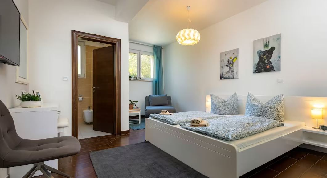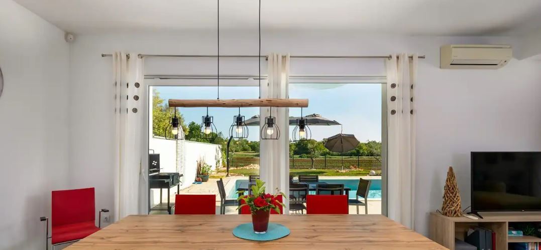 ISTRIEN, ROVINJ – Modernes Bungalow mit Pool Rovinj, eine der begehrtesten Städte Istriens, bekannt für ihre malerische Altstadt, das kristallklare Meer und ihre reiche Kultur, bietet die ideale Kombination aus mediterranem Flair, natürlicher Schönheit und modernem Komfort. Unweit dieser Stadt, in ruhiger, grüner Umgebung, steht ein modernes Bungalow-Doppelhaus mit Flachdach, großen Glasfronten und privatem Pool zum Verkauf – der perfekte Ort zum Wohnen und Entspannen. Die Wohnfläche des Hauses beträgt 140,69 m² und ist großzügig aufgeteilt in einen offenen Wohnbereich mit Küche und Essbereich, drei Schlafzimmer mit jeweils eigenem Bad, ein Gäste-WC, einen Flur, einen Heizungsraum und eine überdachte Terrasse. Die Südwestausrichtung sorgt den ganzen Tag über für viel Tageslicht, und fast jeder Raum bietet einen beruhigenden Blick ins Grüne. Die technische Ausstattung des Hauses umfasst hochwertige PVC-Fenster und -Türen mit Doppelverglasung und Rollläden, Aluminium-Eingangstüren, klassische Innentüren, hochwertige Keramikfliesen, Klimaanlage, Elektroheizung, Alarmanlage und Sat-TV. Das Haus wird möbliert verkauft, was die Praktikabilität und die sofortige Bezugsfertigkeit ohne weitere Investitionen unterstreicht. Der 823 m² große Garten ist sorgfältig angelegt und funktional gestaltet. Der Garten mit automatischer Bewässerung beherbergt Oliven-, Feigen- und Kirschbäume sowie Kräuter. Im Zentrum befindet sich ein 50 m² großer Pool mit Liegewiese, Dusche und einem Bereich zum Entspannen. Neben dem Haus befinden sich angelegte Terrassen und ein überdachter Parkplatz für zwei Fahrzeuge. Das gesamte Grundstück ist mit einem stabilen Metallzaun umzäunt, und die Einfahrt ist durch ein motorisiertes Schiebetor gesichert. Diese Immobilie vereint modernes Design, Privatsphäre und die Nähe zu allen wichtigen Annehmlichkeiten, darunter das Meer, Rovinj, Sehenswürdigkeiten wie Kontija und Dvigrad sowie eine schnelle Anbindung an den Flughafen Pula. Sie ist die ideale Wahl für alle, die Wert auf Qualität, Komfort und einen naturnahen und ruhigen Lebensstil legen.