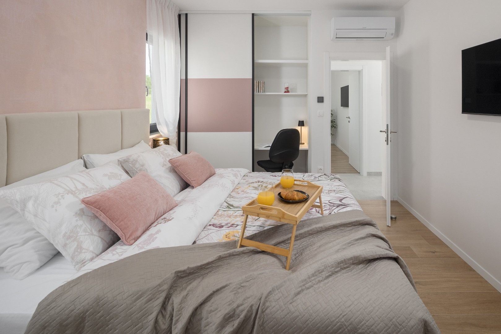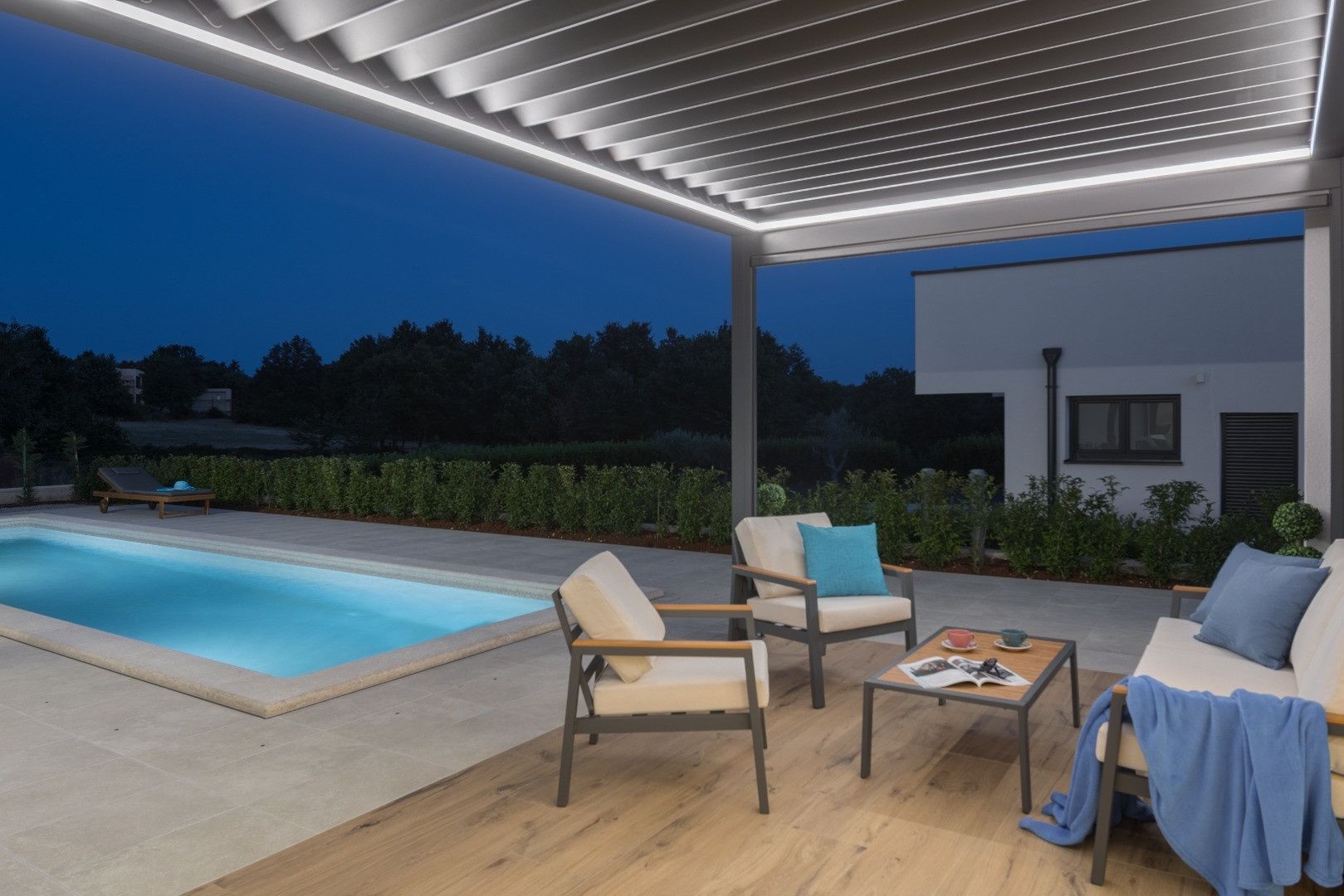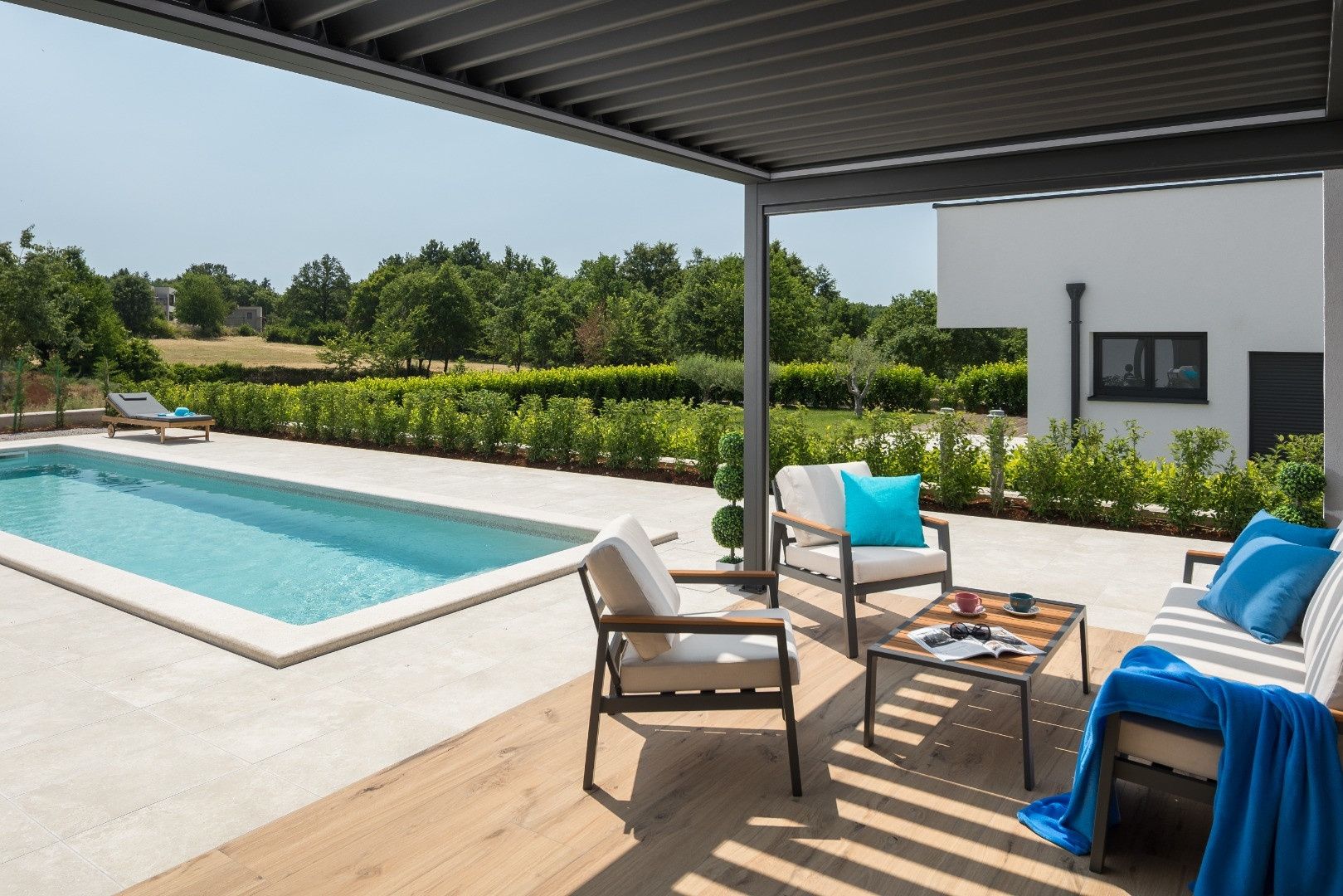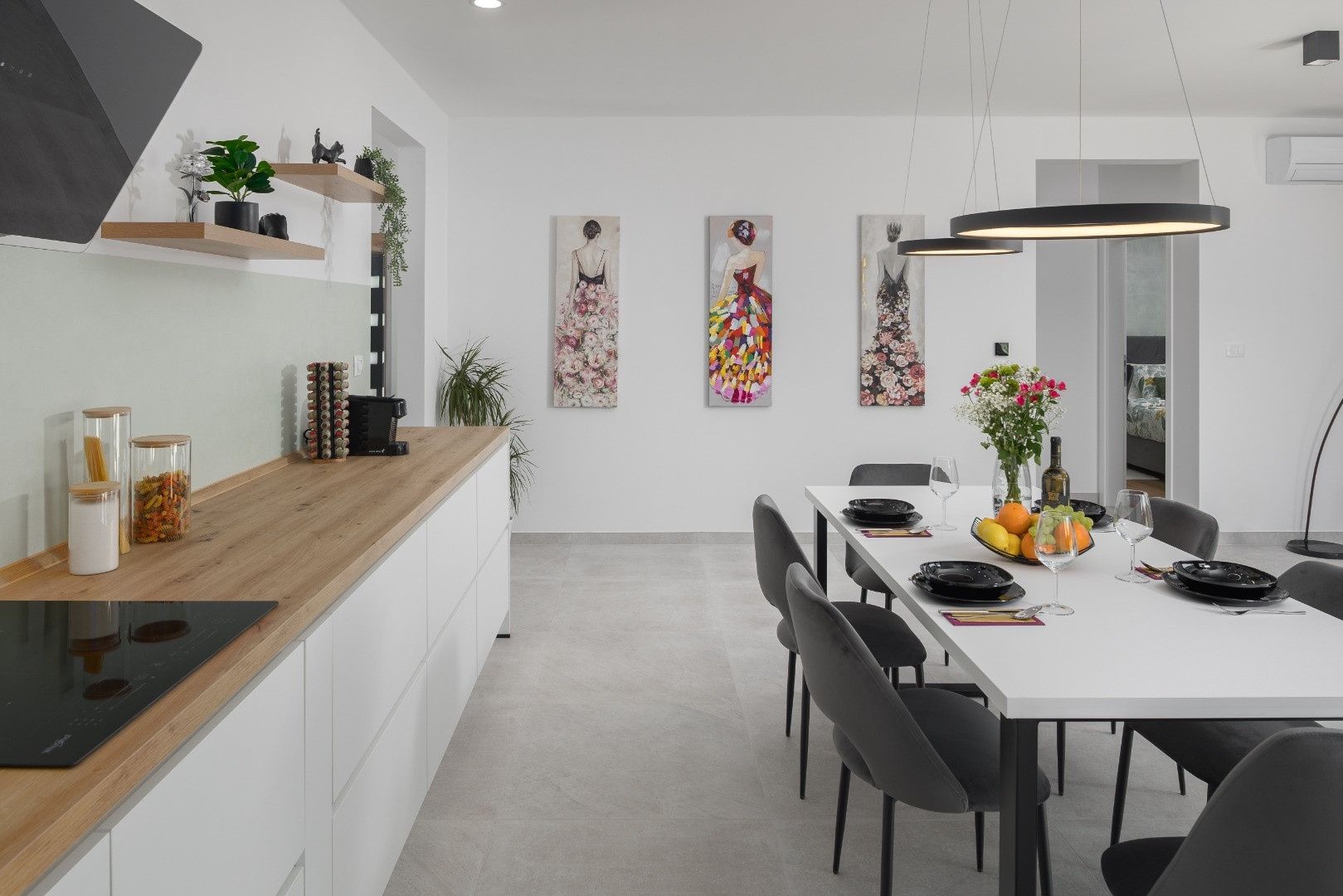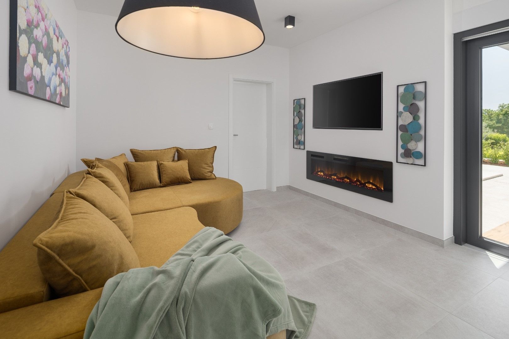 ISTRIEN, SVETI PETAR IM WALD - Hochwertiges Fertighaus mit Swimmingpool Umgeben von alten Wäldern und auf einer hügeligen Ebene gelegen, ist Sveti Petar u Šuma, Sitz der kleinsten Gemeinde Istriens, die ungewöhnlichste istrische Stadt. Typische istrische Architektur ist hier weniger vertreten, jedoch ist in ihrer Bauweise bereits ein spürbarer Einfluss des Nordens spürbar. Die meisten Häuser rund um St. Peter sind noch immer mit steinernen Fensterläden bedeckt, die von der Zeit grau geworden sind. Es ist weithin bekannt für die wunderschöne Barockkirche St. Peter und Paul und das Paulinerkloster mit Steinmauern, umgeben von einem Garten und einem großen Platz vor der Kirche und dem Kloster, wo sich eines der ältesten glagolitischen Denkmäler befindet – das Supetar-Fragment - wurde gefunden. Wir präsentieren Ihnen dieses hochwertige moderne Fertighaus mit einer Fläche von 147,70 m2 auf einem Grundstück von 630 m2. Es handelt sich um ein hochwertiges Fertighaus mit belüftetem Dach. Das neue Gebäude besteht aus: - zwei Schlafzimmern mit separaten Badezimmern - Küche, Esszimmer und Wohnzimmer im selben Raum - einem Raum für die Wäsche, in dem sich auch eine Vorrichtung zum Erhitzen von Wasser befindet - einem Raum mit direktem Zugang zum Pool ein separates WC und eine Dusche (Vorbereitungen für Sauna und Whirlpool wurden getroffen und eine ausreichende Belüftung für den Wellnessraum wurde installiert), kann aber auf Wunsch auch als weiteres Schlafzimmer oder als Fitnessraum eingerichtet werden. - ein separater Raum mit separatem Eingang von 4,70 m2, in dem sich der Hauptschaltschrank mit Sicherungen, ein Server für Kameras (die erste Phase für die Videoüberwachung wurde durchgeführt) und ein Wechselrichter für Sonnenkollektoren befinden (falls installiert, wurden auch Brunnen in den Dachboden geschoben). die Paneele einmal) und in diesem Raum gibt es eine Öffnung für den Eingang zum Dachboden und es können ein zusätzlicher Kleiderschrank oder Regale zum Aufbewahren von Dingen platziert werden. Wichtige Informationen: - PVC-Tischlerei verfügt über eingebaute elektrische. Jalousien mit Moskitonetzen und Klimasensoren im Wohnzimmer – die Eingangstür ist aus Aluminium – hochwertige Inoterm-Tür – alle Böden sind aus Keramik, darunter ist elektrische Heizung installiert. Fußbodenheizung - es gibt 3 Klimaanlagen - in den Schlafzimmern und im Wohnzimmer - die Fassadenverkleidung besteht aus Holzfasern und die Innenseite der Außenwände ist mit Zellulose als Wärmeisolator gefüllt - für die Abwasserentsorgung ein Bioreiniger mit Kompressor ist installiert - die Vorbereitung für den verschiebbaren Elektroportun am Eingang zum Hof, sowie Gewindesteckdosen für Autoladegeräte, Licht für Carports usw. - die erste Phase für die Antenne und den Fernseher ist installiert ist 3 x 10 m groß, die Beckenschale ist mit abgedeckt Mit blauer Farbe getüncht und der Maschinenraum befindet sich unter dem Strand, eine Wärmepumpe ist installiert und im Preis ist eine Winterabdeckung für den Pool enthalten. In der Ecke zwischen Küche/Pool wird eine bioklimatische Pergola von 15 m2 mit integrierter LED-Beleuchtung platziert. Wohnzimmer und der Pool. Diese neu erbaute Villa bietet ihren zukünftigen Eigentümern alles, was sie für einen sicheren und ruhigen Aufenthalt das ganze Jahr über benötigen, und ist außerdem die perfekte Immobilie für die Entwicklung Ihres eigenen touristischen Angebots mit einer sicheren Kapitalrendite.