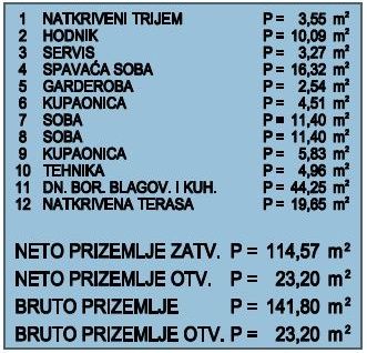 ISTRIEN, SVETVINČENAT – Modernes einstöckiges Haus mit Swimmingpool in ruhiger Lage Svetvinčenat ist ein authentisches istrisches Dorf, bekannt für seine reiche Geschichte, Kultur und seinen friedlichen Lebensstil, umgeben von viel Grün und nur 20 Minuten von der Küste und Touristenzentren wie Rovinj, Fažana und Pula entfernt. Im Herzen des idyllischen Istriens, im malerischen Ort Svetvinčenat, befindet sich dieses moderne einstöckige Haus, das die perfekte Kombination aus Komfort, Funktionalität und ruhiger Umgebung bietet. Dieses elegante Haus befindet sich in einer neuen Siedlung mit insgesamt 6 modernen einstöckigen Häusern, die Exklusivität, Sicherheit und Ruhe garantieren. Das Haus ist hinsichtlich des Grundrisses perfekt organisiert, hat eine Nettofläche von 114,57 m² geschlossener Fläche und verfügt über: – 3 geräumige und helle Schlafzimmer – 2 moderne Badezimmer – Offenes Wohnzimmer, Esszimmer und Küche – ein luftiger und heller Raum, ideal für Familien und geselliges Beisammensein – Sommerküche – perfekt, um istrische Köstlichkeiten unter freiem Himmel zu genießen – Überdachte Terrasse von 19,65 m² – geschaffen zum Entspannen an heißen Sommertagen – Privater Swimmingpool von 23,46 m² – mit geräumiger Liegewiese und absoluter Privatsphäre – Technikraum, Garderobe und Servicebereich Die gesamte Bruttofläche des Erdgeschosses beträgt 141,80 m² und das alles erstreckt sich über einen geräumigen Garten von 633 m², der von einer Mauer umgeben und mit Grün geschmückt ist. Technische Merkmale: - Fußbodenheizung – sorgt das ganze Jahr über für Wärme und Komfort - Klimaanlage – für eine optimale Temperatur in jeder Ecke des Hauses - Hochwertige Bauweise, erstklassige Isolierung und sorgfältig ausgewählte Materialien - Privatparkplatz für Ihre Fahrzeuge Das Haus befindet sich derzeit im Bau, sodass der Käufer die Fertigstellungsdetails nach seinen Wünschen auswählen kann. Diese moderne Villa mit Charakter ist ideal sowohl für das Familienleben als auch als Investition in die touristische Vermietung. Die Kombination aus moderner Architektur, ruhiger Lage und praktischer Raumaufteilung macht diese Immobilie äußerst attraktiv. Verpassen Sie nicht die Gelegenheit, Eigentümer dieses einzigartigen einstöckigen Hauses in einem ruhigen und grünen Teil Istriens zu werden!