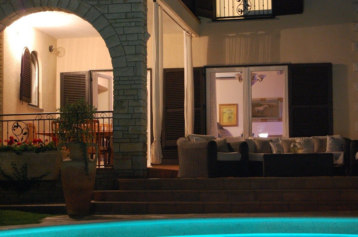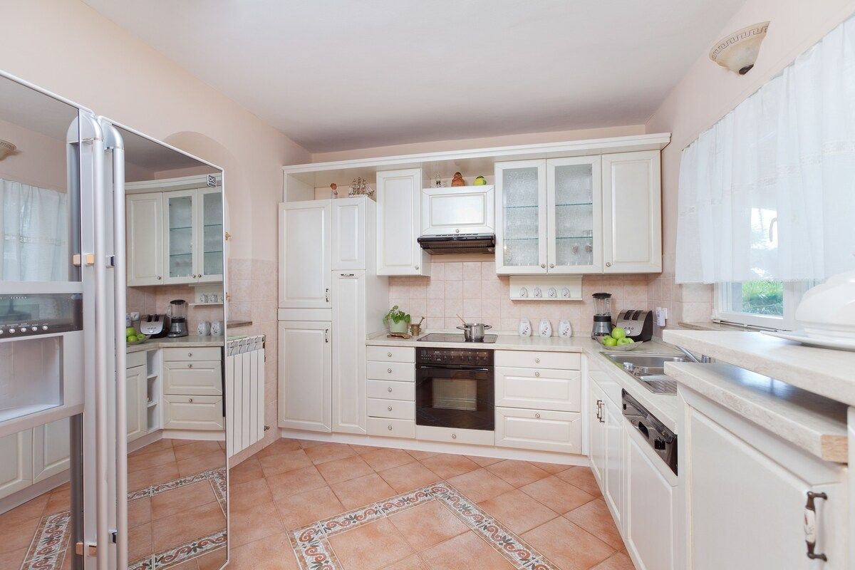 ISTRIEN, UMAG - Einzigartige Villa mit Pool, erste Reihe zum Meer Umag ist eine Stadt an der Westküste Istriens mit mediterranem Klima und bietet durch 45 km Küste den besten Einstieg in eine andere Erfahrung des Mittelmeers. Die Geschichte dieser Stadt ist sehr interessant. Es wurde von römischen Adligen entdeckt und beschlossen, es als Sommerresidenz zu nutzen. Glanz und Pracht von damals spiegeln sich noch heute in den venezianischen Häusern der Altstadt wieder. Die Entwicklung des Tourismus steht in direktem Zusammenhang mit der Entwicklung der Landwirtschaft - fruchtbare Böden eignen sich besonders für den Anbau von Oliven, Tomaten und Wein und anderen für das mediterrane Klima charakteristischen Pflanzen. Und wenn es um das gastronomische Angebot geht, gibt es ausgezeichnete Fisch- und Fleischspezialitäten und lokale istrische Küche. Umag wurde auch zur Europäischen Stadt des Sports erklärt und ist traditionell Gastgeber vieler Sportveranstaltungen auf der ganzen Welt, von denen das Tennisturnier ATP Croatia Open sicherlich hervorzuheben ist. In exklusiver Lage, 30 Meter vom Meer und 150 Meter von den Stränden entfernt, steht diese wunderschöne Villa im mediterranen Stil zum Verkauf, erste Reihe zum Meer, mit Außenpool, Whirlpool, Fitnessraum und wunderschönem Garten mit mediterranen Pflanzen. Die Villa ist mit einem handgefertigten schmiedeeisernen Zaun eingezäunt. Die Villa befindet sich in einer großartigen Lage für Yachtbesitzer und Segelbegeisterte, da sich der ACI-Yachthafen direkt vor dem Grundstück befindet. Es wurde nach hohen Standards renoviert, wobei viele seiner ursprünglichen Stein- und Marmormerkmale erhalten blieben und Moderne und Tradition erfolgreich kombiniert wurden, und es ist mit traditionellen italienischen Möbeln ausgestattet. Die Schlafzimmer und das Wohnzimmer haben Eichenböden, und die Flure und Küchen haben Terrakottafliesen oder Marmorböden. Die Badezimmer bestehen aus hochwertigen italienischen Fliesen und Sanitärkeramik. Auf einem Grundstück von 892 m2 befindet sich eine Villa mit einer Gesamtfläche von ca. 480 m2 auf zwei Etagen. Die Villa besteht aus drei Wohneinheiten, dem Hauptteil auf zwei Etagen und zwei Wohnungen mit separaten Eingängen. Das Erdgeschoss des Hauptteils der Villa besteht aus einem Wohnzimmer mit Marmorkamin und Zugang zu einer überdachten Terrasse, einem Esszimmer, einer voll ausgestatteten Küche, einem Schlafzimmer und einem Badezimmer. Im Erdgeschoss gibt es auch eine Sommerküche, die über einen Außenkamin mit Marmortisch verfügt und mit dem Garten verbunden ist, wo sich ein Swimmingpool mit Düsen, ein Wasserfall für Massagen, Nachtbeleuchtung und Winter- und Sommerabdeckung befindet. Im Erdgeschoss gibt es einen separaten Eingang, der zum Wellnessbereich führt, der aus einem Fitnessraum, einem Whirlpool und einem Badezimmer besteht. Im ersten Stock der Villa befinden sich eine Eingangshalle, zwei Badezimmer und vier Schlafzimmer. Zwei Schlafzimmer haben Zugang zu einem geräumigen Balkon mit herrlichem Meerblick, und die anderen beiden Schlafzimmer haben ebenfalls einen Balkon mit schöner Aussicht. Die beiden anderen Wohneinheiten haben separate Eingänge, was für zusätzliche Privatsphäre sorgt. Die erste Wohnung besteht aus Wohnzimmer, Küche, Bad, Balkon und einem Schlafzimmer. Im Obergeschoss befindet sich die zweite Wohnung, die aus einem Wohnzimmer, einer Küche mit Essbereich, zwei Schlafzimmern, einem Badezimmer und einem Balkon besteht. Auf der Rückseite der Villa befinden sich drei bis vier Parkplätze. Die Villa befindet sich in einem Wohnviertel der Stadt Umag in der Nähe des Zentrums und der Altstadt, aber in einer ruhigen Umgebung. Strände und alle wichtigen Sport- und anderen Einrichtungen sind nur einen kurzen Spaziergang entlang der Küste von der Villa entfernt. berechnet