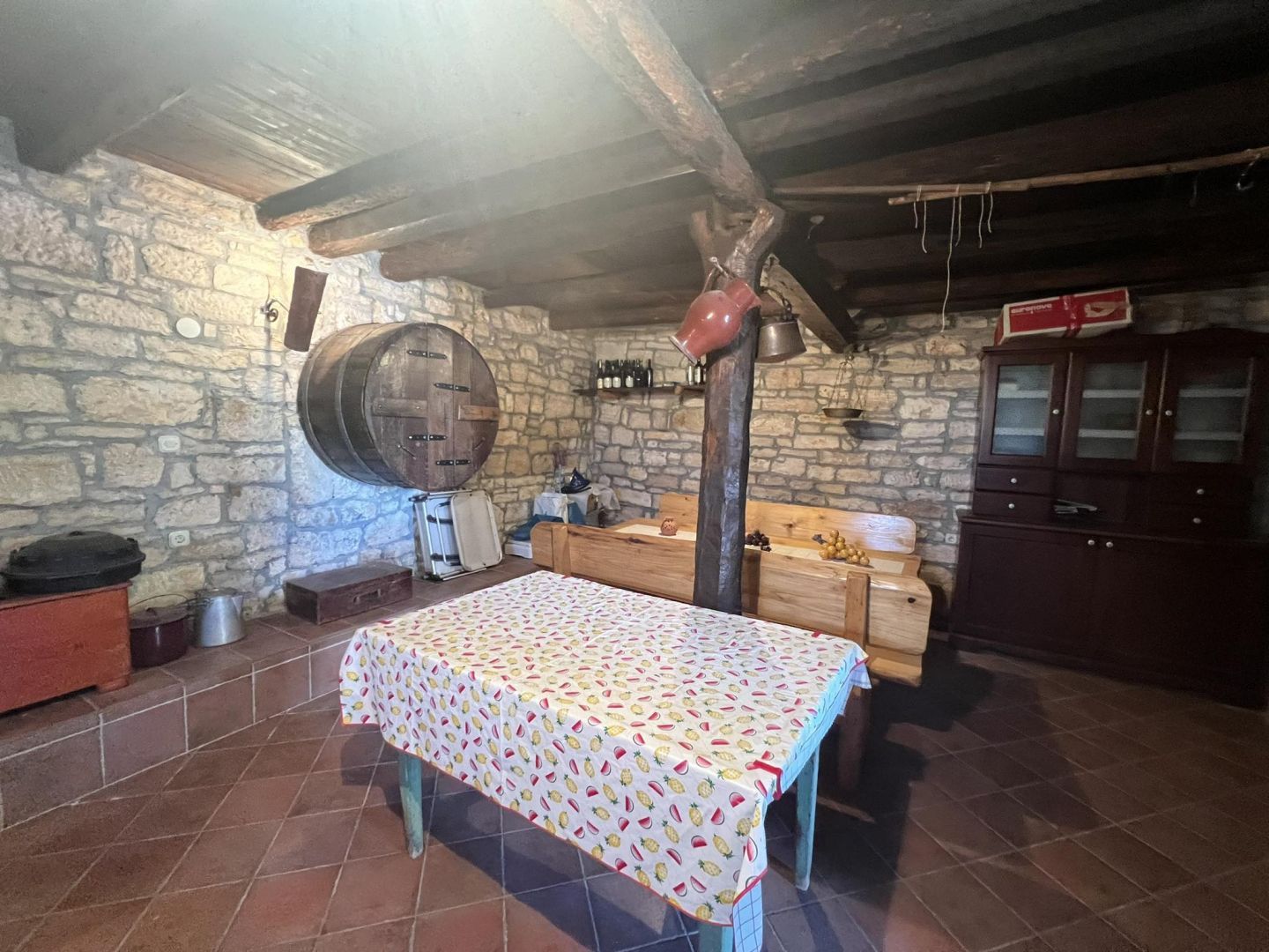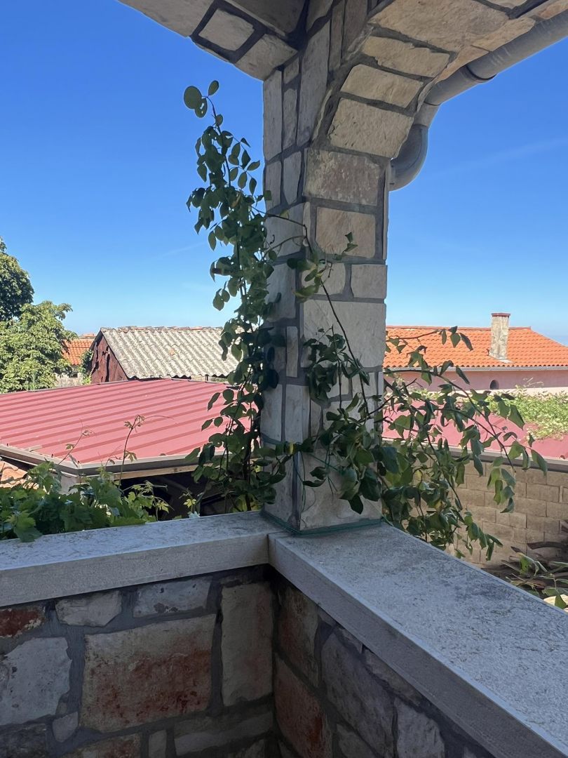 ISTRIEN, VIŠNJAN – Steinhaus mit Aussicht. Višnjan ist eine malerische und lebendige Stadt und Gemeinde im Westen Istriens. Die Gemeinde Višnjan umfasst 56 Ortschaften und liegt zwischen dem Fluss Mirna im Norden und dem Lim-Kanal im Süden. Das romantische Višnjan schmiegt sich an einen sanften Hügel, 244 m über dem Meeresspiegel, umgeben von Wiesen, Ackerland und Wäldern aus Steineichen und Weißbuchen. Heute ist Višnjan vor allem für seine einzigartige Sternwarte bekannt, die gemessen an der Anzahl der entdeckten Asteroiden zu den zwölf produktivsten Sternwarten der Welt zählt. Ein wunderschönes Steinhaus steht zum Verkauf. Es verfügt über einen großen Garten mit mehreren überdachten und nicht überdachten Parkplätzen. Im Innenhof befinden sich ein alter Brunnen und ein Brotbackofen. Im Erdgeschoss befinden sich eine Garage, eine Gaststube und ein Abstellraum. Im ersten Stock befinden sich eine überdachte Terrasse, ein großes Schlafzimmer, ein Wohnzimmer mit Küche, ein Esszimmer und ein großes Badezimmer. Im ausgebauten Dachgeschoss befinden sich zwei geräumige Schlafzimmer. Das Haus ist möbliert und wird im Ist-Zustand verkauft. Eine ideale Immobilie für Familien oder zur touristischen Vermietung.