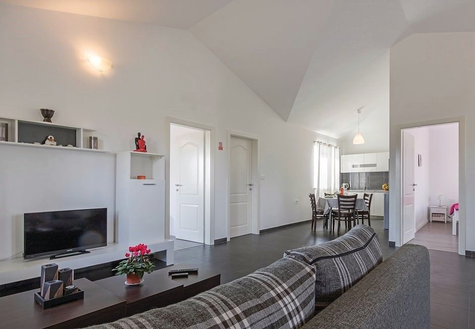 ISTRIEN, VODNJAN - Appartementhaus mit Hallenbad Fotogen Vodnjan, ein mittelalterliches Stadt-Land-Städtchen, liegt im Südwesten Istriens auf 135 Meter über dem Meeresspiegel. Das Gebiet der Stadt Vodnjan nimmt eine Fläche von 102 km² ein und umfasst vier Siedlungen: Barbariga, Gajana, Galižana und Peroj. Vodnjan und seine Umgebung sind durch eine einzigartige Kombination aus dem grünen Landesinneren und der blauen Adriaküste vereint. Die charmante Stadt und ihre Umgebung sind vor allem für die Herstellung von wertvollem Olivenöl, die Ölmühle, die die größte in Kroatien und die älteste in Istrien ist, und ihre goldenen Olivenhaine bekannt, in denen bis zu einer halben Million Oliven beheimatet sind Bäume, von denen viele aus dem Römischen Reich stammen. Der Olivengarten ist für viele andere Dinge interessant - ausgezeichnete Weine, die größte Konzentration von Kažun- und Trockensteinmauern auf dem Gebiet Istriens, erkennbare gotisch-venezianische, Renaissance- und Barockstile und zahlreiche Kirchen. In der Stadt Vodnjan gibt es den höchsten Glockenturm Istriens, die kürzeste und schmalste Straße Istriens und die längste Straße Istriens, während einige gewundene Steinstraßen mit farbenfrohen Wandmalereien bemalt sind. Dieses gesamte malerische Gebiet hat ein reiches kulturhistorisches immaterielles und materielles Erbe, eine geschützte Umwelt, sauberes Meer und gut gepflegte Strände, eine entwickelte Geschäfts- und Tourismusinfrastruktur, einen infrastrukturell und gärtnerisch eingerichteten Raum und eine gemeinschaftliche und soziale Sensibilität der Bevölkerung und ein fantastisches Potenzial bei der Entwicklung einer ganzen Reihe von Aktivitäten. Unweit des Zentrums von Vodnjan steht ein Mehrfamilienhaus mit Hallenbad zum Verkauf. Das großzügige Haus erstreckt sich über Untergeschoss, Erdgeschoss und Obergeschoss und beinhaltet drei Wohneinheiten. Im Untergeschoss des Hauses befindet sich eine 53 m² große Taverne mit offenem Kamin und Brotbackofen, eine 32 m² große Garage mit Auffahrrampe für zwei Autos und ein Heizungsraum. Im Erdgeschoss befindet sich eine Wohneinheit mit einer Fläche von 218 m². Die Wohnung besteht aus einem Wohnzimmer, einem Esszimmer und einer Küche in einem offenen Konzept, vier Schlafzimmern, zwei Badezimmern und einer Toilette. Im Erdgeschoss befindet sich auch ein Raum von 70 m², in dem sich ein beheizter Innenpool von 50 m² befindet. Vom Zimmer führt eine Außentreppe zu einer großzügigen Terrasse von 70 m² mit Meerblick. Die Etage enthält zwei Wohneinheiten von 104 m² und 86 m². Die größere Wohnung besteht aus Wohnzimmer, Esszimmer und Küche in einem offenen Konzept, zwei Schlafzimmern, einem Badezimmer und einer Loggia. Die kleinere Wohnung besteht aus Wohnzimmer, Esszimmer und Küche in einem offenen Konzept, zwei Schlafzimmern, einem Badezimmer und einem Balkon. Der weitläufige Garten mit Bewässerungssystem ist komplett eingezäunt und angelegt. Dieses geräumige Haus weit genug vom Trubel, aber nah genug am Stadtzentrum, ist ein ideales Objekt für das Familienleben oder als Investition zur Vermietung für touristische Zwecke, da zwei Wohneinheiten mit 4 Sternen mit etablierten und rentablen Mieten kategorisiert sind.