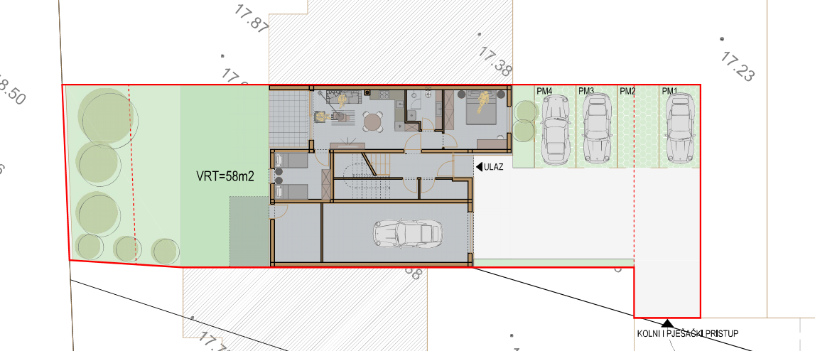 ISTRIEN, VALDEBEK – Wohnung mit Garten in einem Neubau Im ruhigen und attraktiven Ort Valdebek bei Pula, nur ca. 3 km vom Meer und dem Stadtzentrum entfernt, befindet sich ein modern gestalteter, hochwertiger Neubau. Im Rahmen dieses Projekts wird diese äußerst attraktive Erdgeschosswohnung angeboten, die sich durch ein seltenes und begehrtes Merkmal auszeichnet: einen eigenen Garten. Diese Art von Immobilie bietet ein wohnliches Ambiente mit allen Annehmlichkeiten modernen Wohnens und vereint Privatsphäre, Komfort und mediterranen Lebensstil. WOHNUNGSMERKMALE Gesamtfläche: 54,96 m². Die Wohnung wurde sorgfältig geplant, wobei besonderer Wert auf eine funktionale Raumaufteilung, viel Tageslicht und eine fließende Verbindung zwischen Innen- und Außenbereich gelegt wurde. Wohnungsaufteilung: -Küche, Flur, Esszimmer und Wohnzimmer 22,45 m² -Hauptschlafzimmer 13,10 m² -Schlafzimmer 9,24 m² -Badezimmer 4,73 m² -Loggia 5,44 m² mit Zugang zum Garten Geplante Heiz- und Kühlsysteme: -Fußbodenheizung im Wohnzimmer und in den Badezimmern -Inverter-Klimaanlagen von DAIKIN oder MITSUBISHI -Kaminoption (Schornstein wird vom Projekt bereitgestellt) Zusätzliche Leistungen im Preis inbegriffen: -eigener überdachter Parkplatz 2,50 m² -eigener Abstellraum 1,69 m² -eigener Garten 58 m² (bei einem Koeffizienten von 0,10 = 5,8 m²) BAUVORTEILE: Die Wohnung wurde mit hochwertigen Materialien gebaut, wobei besonderer Wert auf Langlebigkeit, Energieeffizienz und moderne Wohnstandards gelegt wurde. - DEMIT-Fassade mit 10 cm Wärmedämmung (EPS) - Nicht brennbare Steinwolle in Brandschutzzonen - PVC- oder Aluminiumfenster und -türen mit Mehrschichtverglasung - Außenjalousien und Insektenschutzgitter aus Aluminium - Brandschutztüren - Keramikfliesen der Klasse I in allen Räumen - Laminatboden in den Schlafzimmern - Warmwasserbereitung über einen Elektroboiler Valdebek zählt zu den begehrtesten Wohngebieten in Pula, denn: - Ruhige und gepflegte Umgebung - Hervorragende Verkehrsanbindung - Schnelle Erreichbarkeit des Stadtzentrums, der Strände und Promenaden - Nähe zu allen Annehmlichkeiten des täglichen Lebens - Pula, die größte Stadt im südlichen Istrien, bietet die perfekte Kombination aus mediterranem Lebensstil, reicher Geschichte und moderner Infrastruktur. Dies macht die Immobilie äußerst attraktiv zum Wohnen oder als Kapitalanlage. Geplante Fertigstellung und Bezug Mitte 2026. Für weitere Informationen und zur Vereinbarung eines Besichtigungstermins stehen wir Ihnen gerne zur Verfügung.