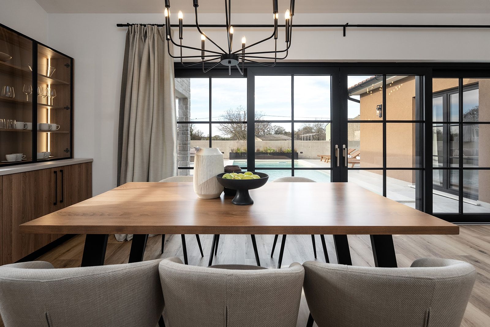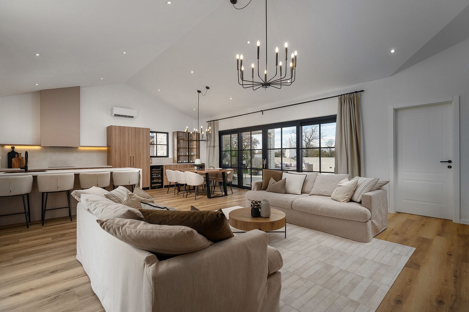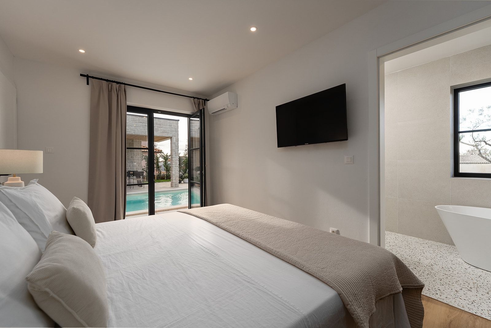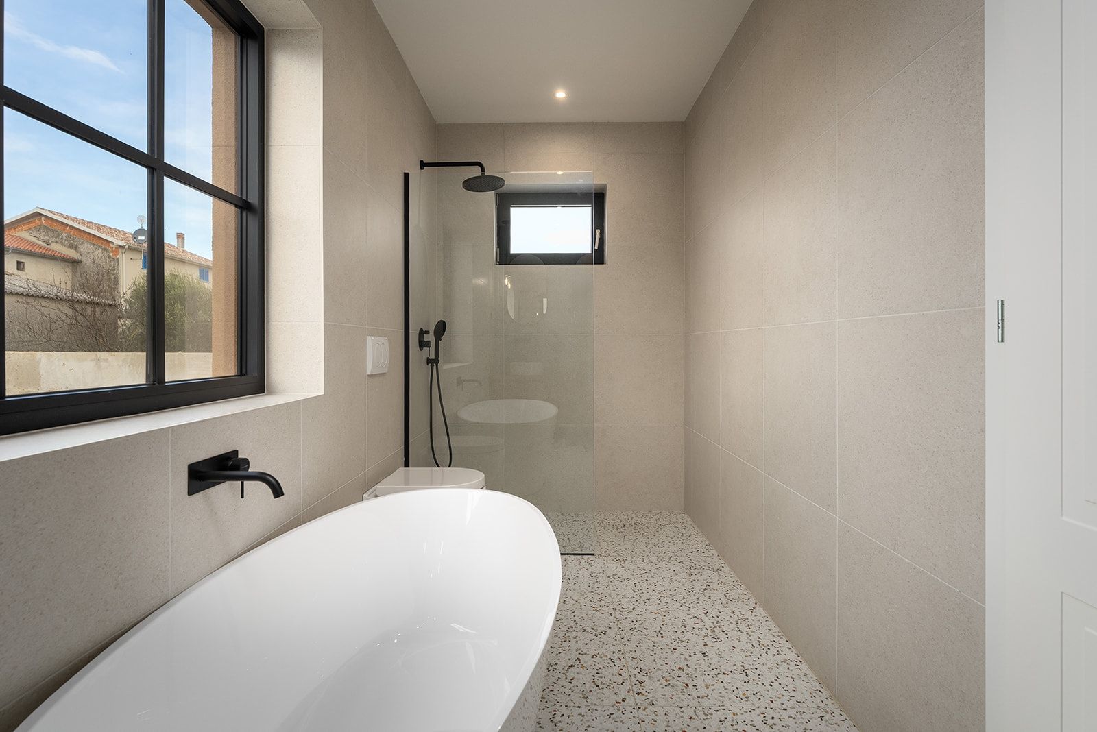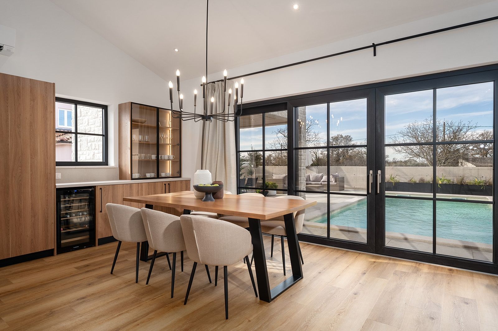 ISTRIEN, ŽMINJ – Ein traumhaftes Einfamilienhaus in einer privaten Anlage! DUX Real Estate präsentiert ein traumhaftes Einfamilienhaus mit erstklassiger Ausstattung! Dieses neu erbaute Haus befindet sich in ruhiger Lage, nur 5 Autominuten vom Zentrum von Žminj entfernt! Das Haus besticht durch ein offenes Raumkonzept mit exzellenter Raumaufteilung und einem großzügigen, fließend ineinander übergehenden Wohnbereich, der Wohnzimmer, Küche und Esszimmer miteinander verbindet. Zwei Schlafzimmer mit jeweils eigenem Bad, eines davon mit begehbarem Kleiderschrank, ein Hauswirtschaftsraum und ein Gäste-WC runden das Angebot ab. Wir laden alle Interessenten herzlich zu einer Besichtigung ein. Das wunderschöne, rustikal-moderne Interieur sorgt für ein ganz besonderes Ambiente. Das Haus wird möbliert verkauft. 90 % der Möbel wurden exklusiv für dieses traumhafte Einfamilienhaus maßgefertigt. Warum betonen wir immer wieder das Wort „traumhaft“? Weil dieses Haus wirklich etwas ganz Besonderes ist. Das Hausprojekt selbst und die Funktionalität der Räume heben sich deutlich von vielen anderen Immobilien auf dem Markt ab. Die Einrichtung wird sowohl Liebhaber des rustikalen als auch des modernen Stils begeistern und Ihnen gleichzeitig ein Gefühl von istrischem Flair vermitteln! Überzeugen Sie sich selbst! Für wohlige Wärme und Kühlung sorgt eine Fußbodenheizung im gesamten Haus, und selbstverständlich ist auch eine Klimaanlage vorhanden! Der Garten bietet alles, was Sie brauchen, ohne dass Sie viel Zeit und Geld in die Pflege investieren müssen. Es gibt einen Swimmingpool, eine Sonnenterrasse und eine überdachte Terrasse mit Sommerküche, deren Gestaltung sich harmonisch in das Gesamtkonzept des Anwesens einfügt. Zwei Parkplätze stehen zur Verfügung. Das Erdgeschoss ist umgeben von anderen Neubauten und Natur! Ein sicheres Zuhause! Wir stehen Ihnen für alle weiteren Fragen und die Organisation von Besichtigungen gerne zur Verfügung! Liebe