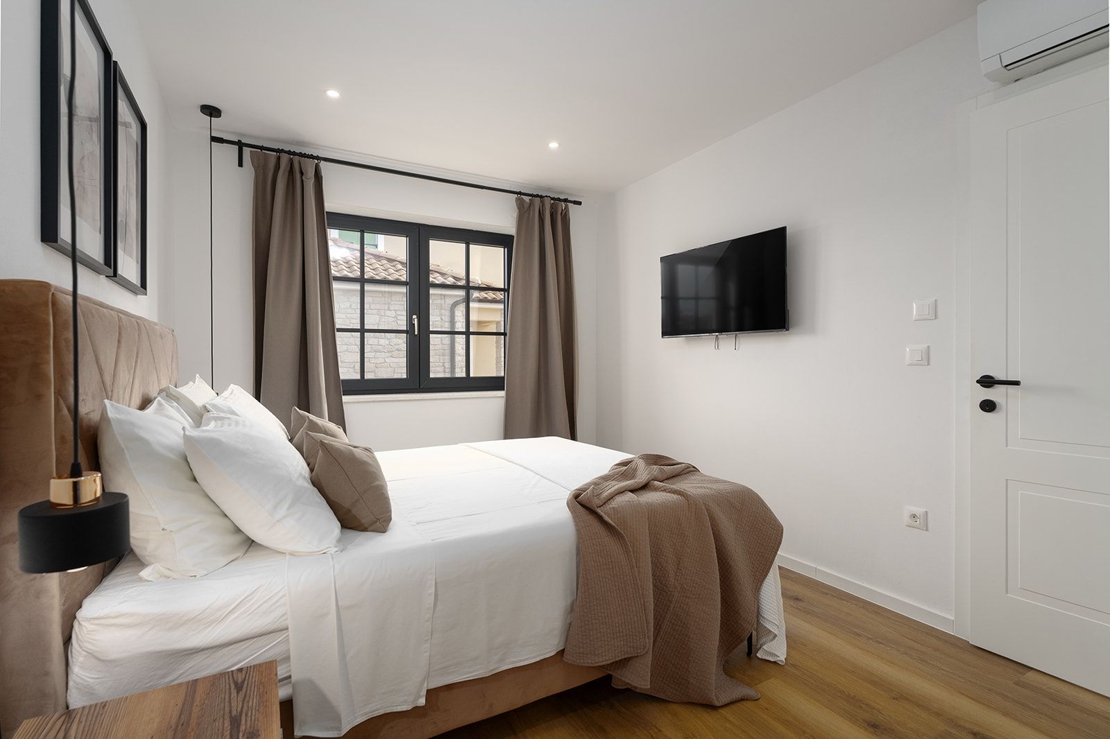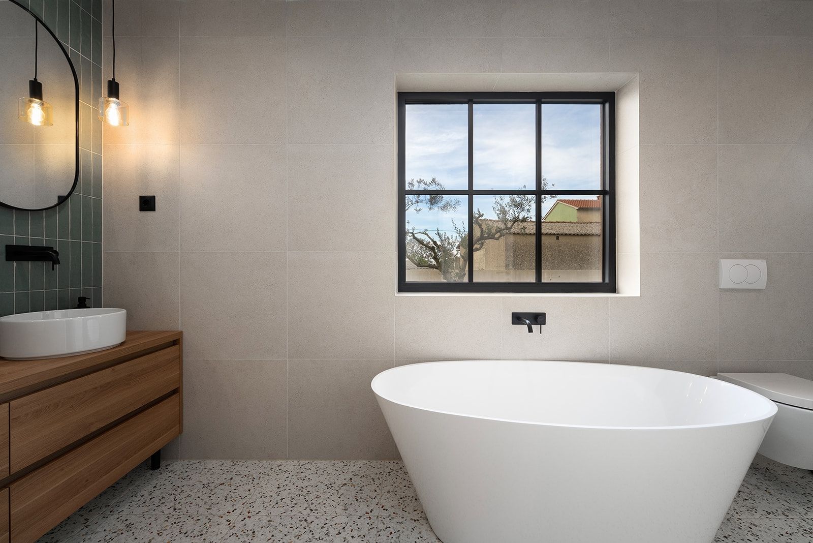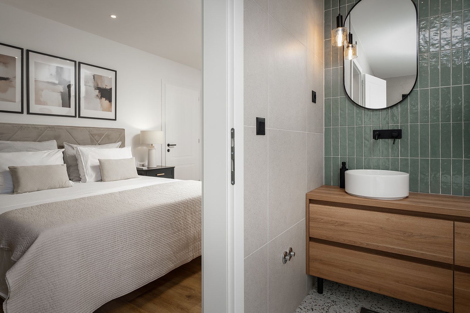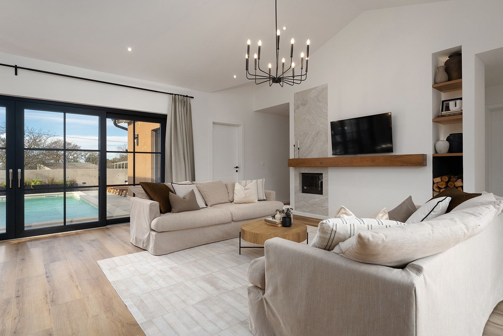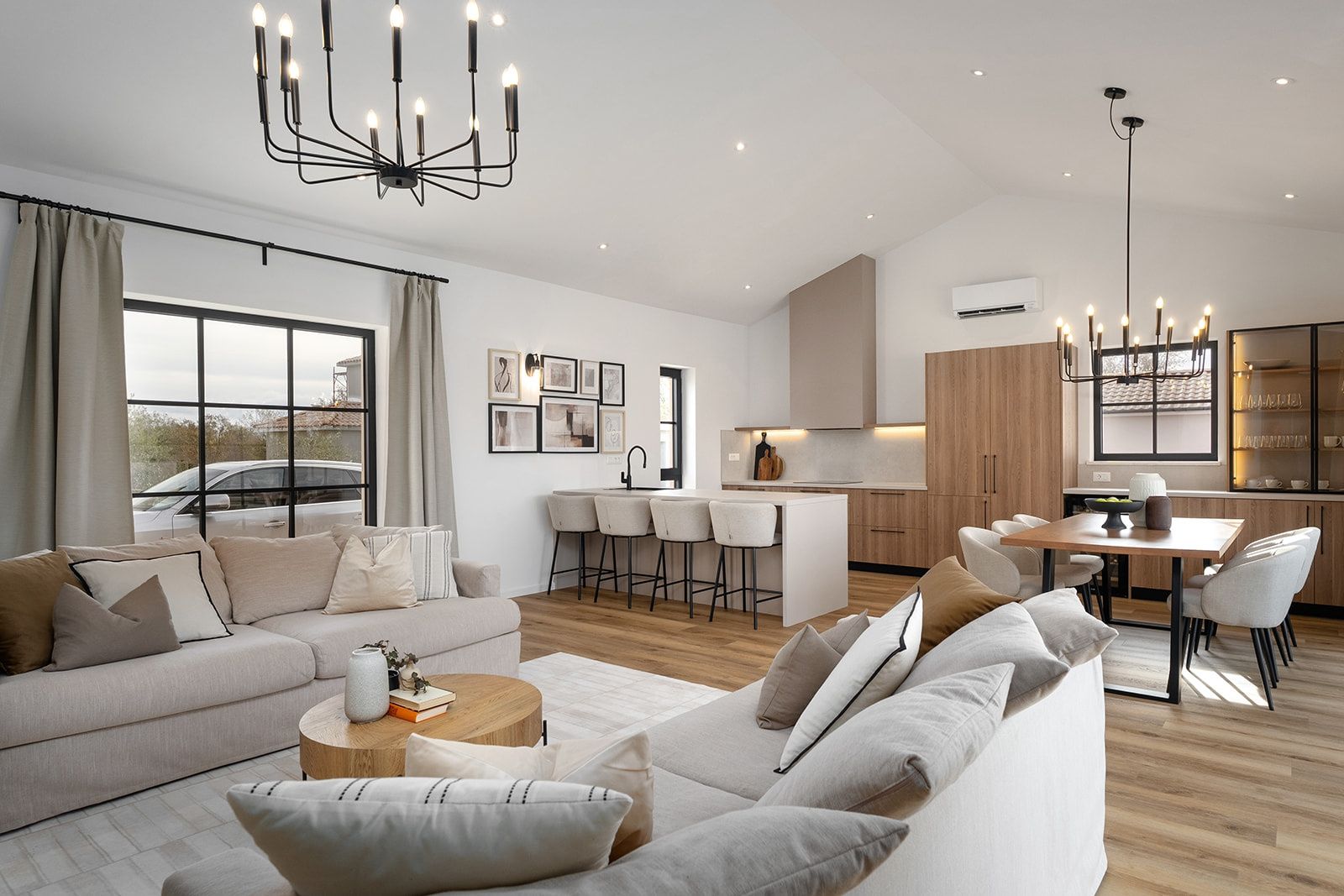 ISTRIEN, ŽMINJ – Ein traumhaftes Einfamilienhaus in einer privaten Anlage! DUX Real Estate präsentiert ein traumhaftes Einfamilienhaus mit erstklassiger Ausstattung! Dieses neu erbaute Haus befindet sich in ruhiger Lage, nur 5 Autominuten vom Zentrum von Žminj entfernt! Das Haus besticht durch ein offenes Raumkonzept mit exzellenter Raumaufteilung und einem großzügigen, fließend ineinander übergehenden Wohnbereich, der Wohnzimmer, Küche und Esszimmer miteinander verbindet. Zwei Schlafzimmer mit jeweils eigenem Bad, eines davon mit begehbarem Kleiderschrank, ein Hauswirtschaftsraum und ein Gäste-WC runden das Angebot ab. Wir laden alle Interessenten herzlich zu einer Besichtigung ein. Das wunderschöne, rustikal-moderne Interieur sorgt für ein ganz besonderes Ambiente. Das Haus wird möbliert verkauft. 90 % der Möbel wurden exklusiv für dieses traumhafte Einfamilienhaus maßgefertigt. Warum betonen wir immer wieder das Wort „traumhaft“? Weil dieses Haus wirklich etwas ganz Besonderes ist. Das Hausprojekt selbst und die Funktionalität der Räume heben sich deutlich von vielen anderen Immobilien auf dem Markt ab. Die Einrichtung wird sowohl Liebhaber des rustikalen als auch des modernen Stils begeistern und Ihnen gleichzeitig ein Gefühl von istrischem Flair vermitteln! Überzeugen Sie sich selbst! Für wohlige Wärme und Kühlung sorgt eine Fußbodenheizung im gesamten Haus, und selbstverständlich ist auch eine Klimaanlage vorhanden! Der Garten bietet alles, was Sie brauchen, ohne dass Sie viel Zeit und Geld in die Pflege investieren müssen. Es gibt einen Swimmingpool, eine Sonnenterrasse und eine überdachte Terrasse mit Sommerküche, deren Gestaltung sich harmonisch in das Gesamtkonzept des Anwesens einfügt. Zwei Parkplätze stehen zur Verfügung. Das Erdgeschoss ist umgeben von anderen Neubauten und Natur! Ein sicheres Zuhause! Wir stehen Ihnen für alle weiteren Fragen und die Organisation von Besichtigungen gerne zur Verfügung! Liebe