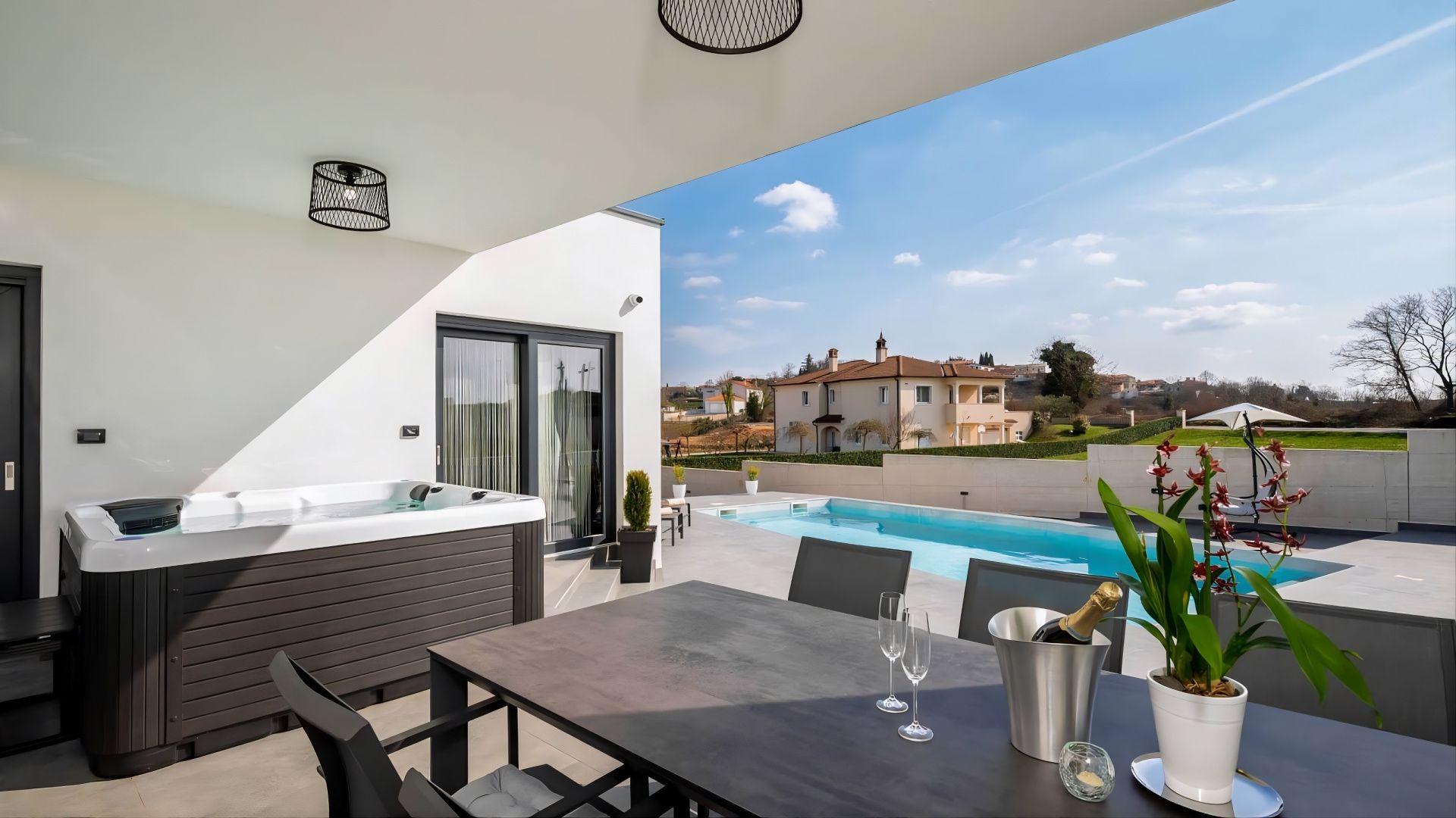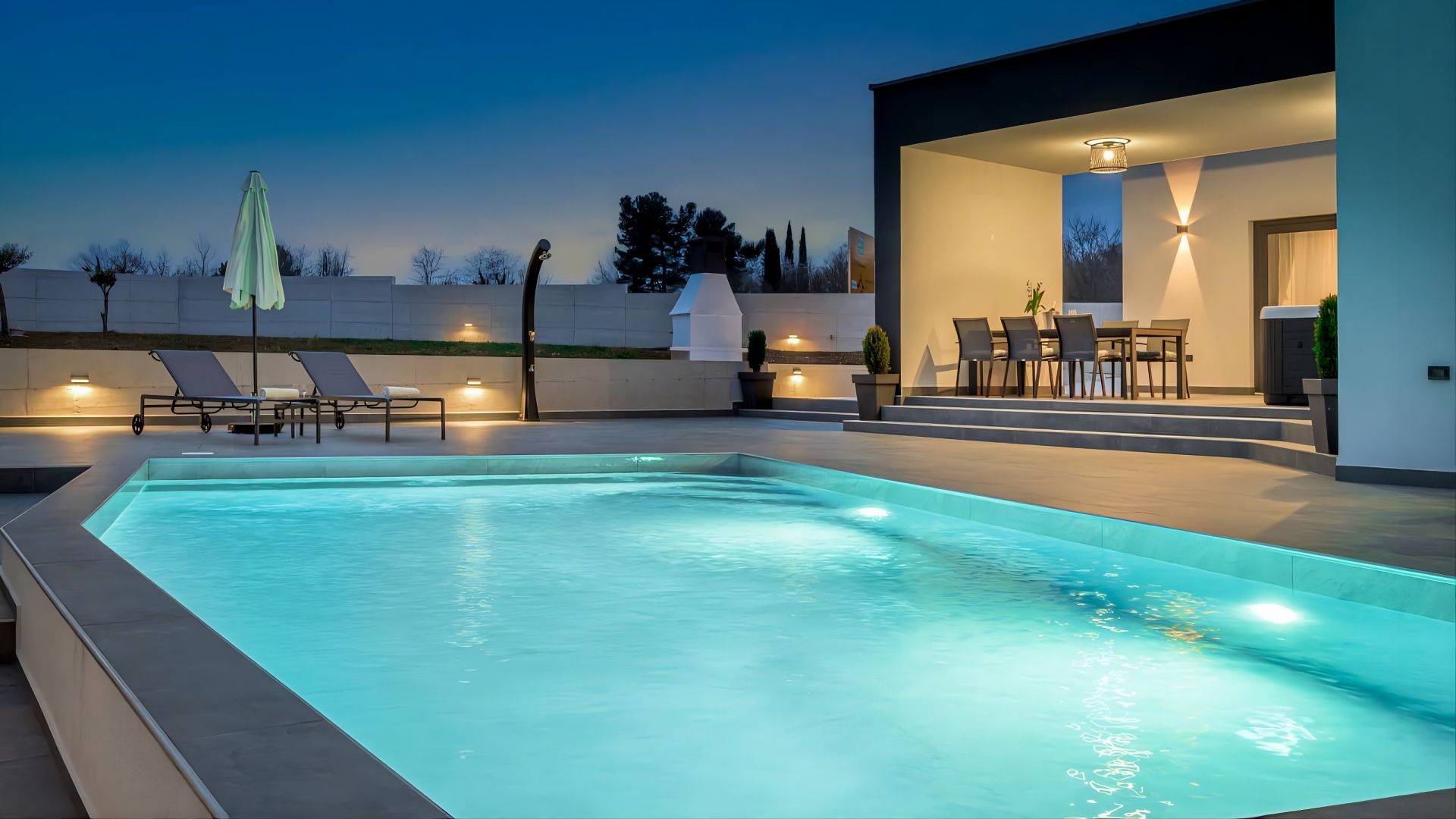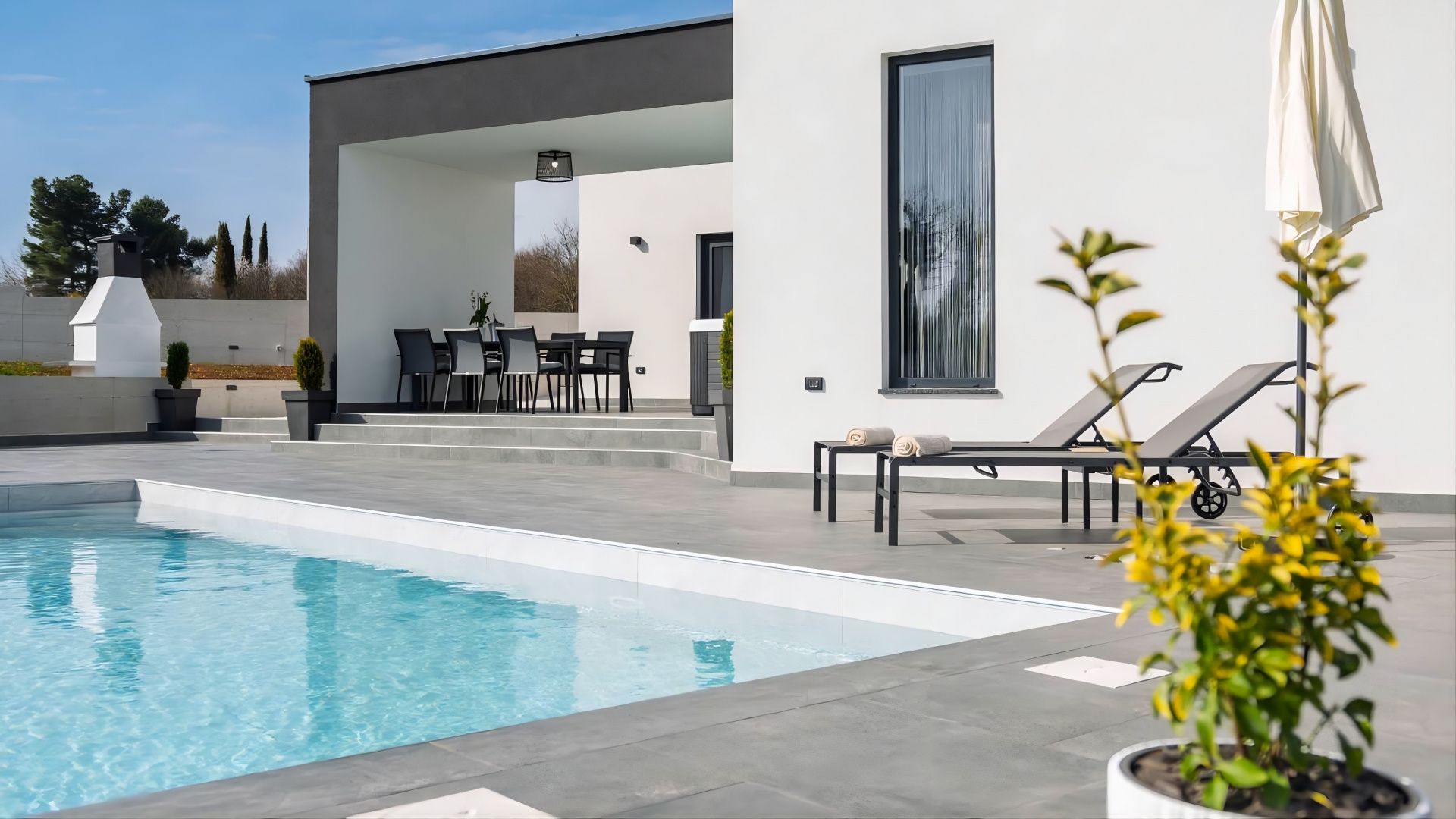 ISTRIEN, ŽMINJ – Modernes Haus mit Pool Wenn in Europa alle Wege nach Rom führen, dann führen in Istrien alle Wege nach Žminj – dem Herzen Istriens auf 379 Metern Höhe. Seit der Antike ist Žminj ein wichtiger Verkehrsknotenpunkt und verband die gesamte istrische Halbinsel. Dank seiner außergewöhnlichen Naturschönheit mit endlosen Wiesen, Weinbergen, fruchtbaren Feldern, alten Wäldern und neu entdeckten Höhlen ist es der ideale Ort, um die Natur zu erleben. Grüner, gesunder und nachhaltiger Tourismus prägt diese Gemeinde, die mit ihrer Fläche, Kultur und Gastronomie beeindruckt. Das malerische Gebiet von Žminj umfasst 33 Ortschaften und 112 Dörfer. In diesem kleinen Ort steht ein modernes Haus mit Pool zum Verkauf. Die Lage bietet ein authentisches istrisches Kleinstadterlebnis, Privatsphäre, Erholung vom Alltag und gleichzeitig die Nähe zu den dynamischen Städten Istriens mit ihren vielfältigen Angeboten. Neben der günstigen Lage zeichnet sich die Immobilie durch ihre hochwertige Bauweise aus, die langfristige Zufriedenheit und hohen Wohnkomfort garantiert. Das Haus fügt sich architektonisch harmonisch in die Umgebung und die Landschaft ein und schafft so eine gelungene Verbindung von Natur und modernem Design. Es handelt sich um eine Wohneinheit auf einer Ebene mit funktionalem Grundriss. Der offene Wohnbereich vereint Küche, Esszimmer und Wohnzimmer und bietet Zugang zu einer überdachten Terrasse. Außerdem verfügt das Haus über zwei Schlafzimmer, einen Fitnessraum mit Sauna und zwei Badezimmer. Der Garten ist landschaftlich gestaltet und umzäunt. Ein beheizter Swimmingpool mit Liegewiese rundet das harmonische Gesamtbild ab. Die exzellente Lage und die durchdachte Raumaufteilung im Innen- und Außenbereich bieten ideale Voraussetzungen für ein komfortables Familienleben oder eine Investition in die touristische Vermietung.