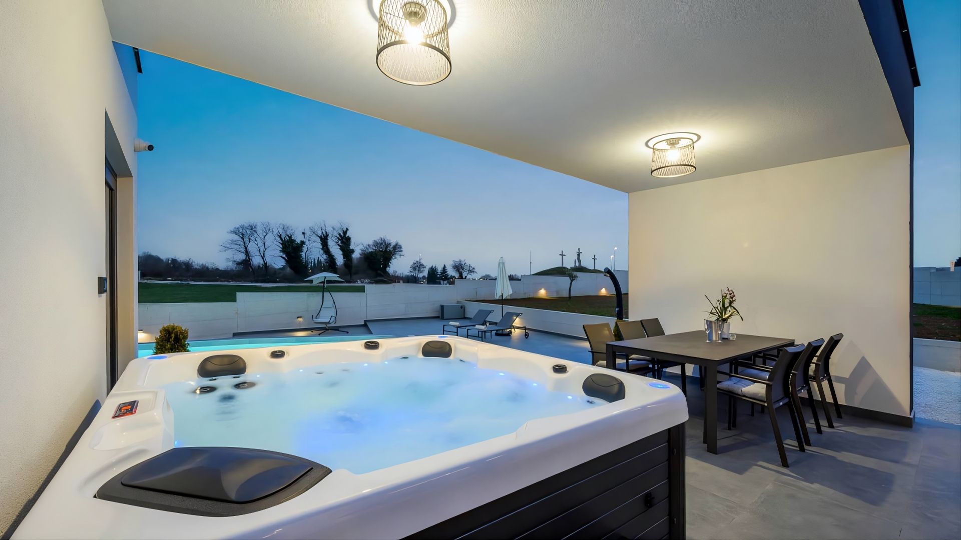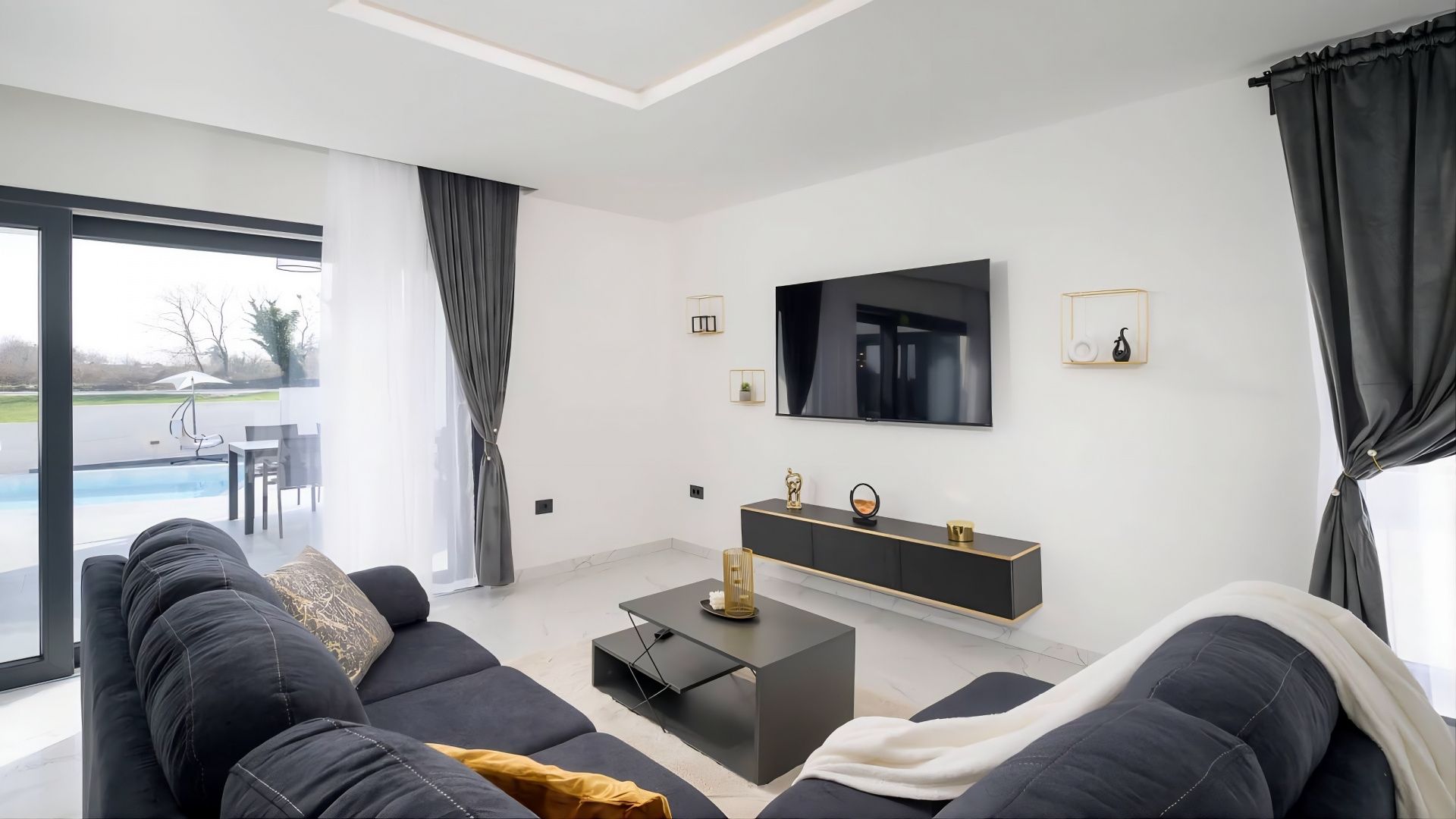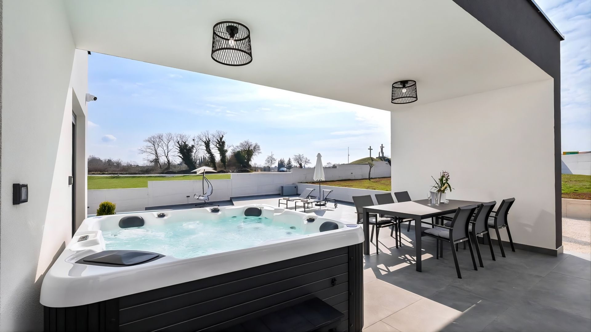 ISTRIEN, ŽMINJ – Modernes Haus mit Pool Wenn in Europa alle Wege nach Rom führen, dann führen in Istrien alle Wege nach Žminj – dem Herzen Istriens auf 379 Metern Höhe. Seit der Antike ist Žminj ein wichtiger Verkehrsknotenpunkt und verband die gesamte istrische Halbinsel. Dank seiner außergewöhnlichen Naturschönheit mit endlosen Wiesen, Weinbergen, fruchtbaren Feldern, alten Wäldern und neu entdeckten Höhlen ist es der ideale Ort, um die Natur zu erleben. Grüner, gesunder und nachhaltiger Tourismus prägt diese Gemeinde, die mit ihrer Fläche, Kultur und Gastronomie beeindruckt. Das malerische Gebiet von Žminj umfasst 33 Ortschaften und 112 Dörfer. In diesem kleinen Ort steht ein modernes Haus mit Pool zum Verkauf. Die Lage bietet ein authentisches istrisches Kleinstadterlebnis, Privatsphäre, Erholung vom Alltag und gleichzeitig die Nähe zu den dynamischen Städten Istriens mit ihren vielfältigen Angeboten. Neben der günstigen Lage zeichnet sich die Immobilie durch ihre hochwertige Bauweise aus, die langfristige Zufriedenheit und hohen Wohnkomfort garantiert. Das Haus fügt sich architektonisch harmonisch in die Umgebung und die Landschaft ein und schafft so eine gelungene Verbindung von Natur und modernem Design. Es handelt sich um eine Wohneinheit auf einer Ebene mit funktionalem Grundriss. Der offene Wohnbereich vereint Küche, Esszimmer und Wohnzimmer und bietet Zugang zu einer überdachten Terrasse. Außerdem verfügt das Haus über zwei Schlafzimmer, einen Fitnessraum mit Sauna und zwei Badezimmer. Der Garten ist landschaftlich gestaltet und umzäunt. Ein beheizter Swimmingpool mit Liegewiese rundet das harmonische Gesamtbild ab. Die exzellente Lage und die durchdachte Raumaufteilung im Innen- und Außenbereich bieten ideale Voraussetzungen für ein komfortables Familienleben oder eine Investition in die touristische Vermietung.