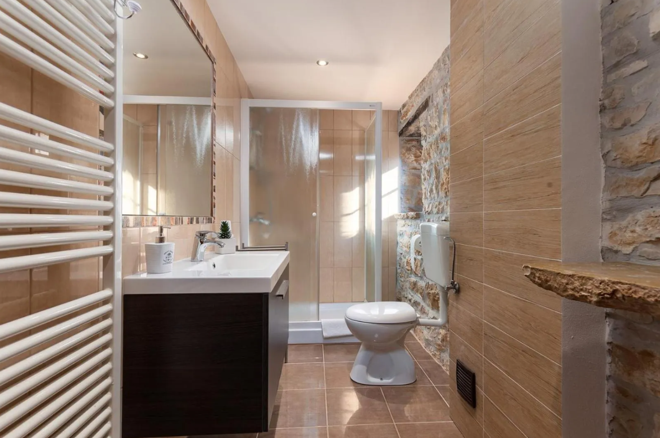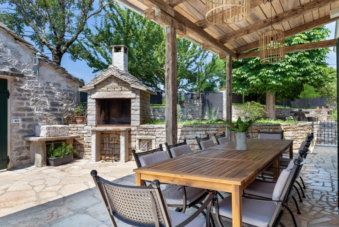 ISTRIEN, ŽMINJ (Umgebung) - Beeindruckendes istrisches Steinhaus mit Swimmingpool Wenn alle Wege in Europa nach Rom führen, dann führen alle Wege in Istrien nach Žminj – dem Herzen Istriens auf einer Höhe von 379 Metern. Žminj ist seit der Antike ein wichtiger Verkehrsknotenpunkt. Es verband die gesamte istrische Halbinsel. Aufgrund seiner außergewöhnlichen Naturschönheit, endlosen Wiesen, Weinbergen, fruchtbaren Feldern, alten Wäldern und neu entdeckten Höhlen ist es der richtige Ort für den Kontakt mit der Natur. Grüner, gesunder und nachhaltiger Tourismus ist charakteristisch für diese Gemeinde, die sowohl flächenmäßig als auch kulturell und gastronomisch beeindruckend ist. Das malerische Gebiet von Žminj umfasst 33 Siedlungen und 112 Dörfer. Zum Verkauf steht eine wunderschöne istrische Villa mit einer Fläche von 225 m², die sich auf einem Grundstück von 688 m² befindet und istrische Tradition perfekt mit modernem Design verbindet. Die Villa besticht durch authentische Details wie originale Steinwände, weiße Deckenbalken und Holzböden und schafft eine gemütliche und elegante Atmosphäre. Der durch die Verbindung zweier Steinhäuser entstandene Innenraum beeindruckt durch seine Geräumigkeit und luxuriöse Dekoration. Das Erdgeschoss besteht aus einem geräumigen Wohnzimmer, Esszimmer und Küche und die hohen Decken von 6 Metern vermitteln den Eindruck außergewöhnlicher Geräumigkeit. Der Kamin trägt zur Wärme des Raumes bei, während sich im Erdgeschoss ein ca. 30 m² großes Schlafzimmer befindet. Im Obergeschoss befinden sich drei luxuriöse Schlafzimmer mit jeweils eigenem Bad, die für maximalen Komfort und Privatsphäre sorgen. Zu den Außenanlagen gehören ein 49 m² großer Swimmingpool, eine Sommerküche und ein angelegter 414 m² großer Garten, der sich ideal zum Genießen im Freien eignet. Die Villa verfügt außerdem über einen separaten Technikbereich mit einem Speicher für Zentralheizung und Warmwasserspeicher, was die Praktikabilität noch weiter erhöht. Die Villa verfügt außerdem über zwei Parkplätze. Dank der etablierten Touristenvermietung stellt diese Immobilie eine ausgezeichnete Investition oder ein luxuriöses Einfamilienhaus in einer ruhigen und entspannenden Umgebung dar. Verpassen Sie nicht die Gelegenheit, diese einzigartige Villa zu besitzen!