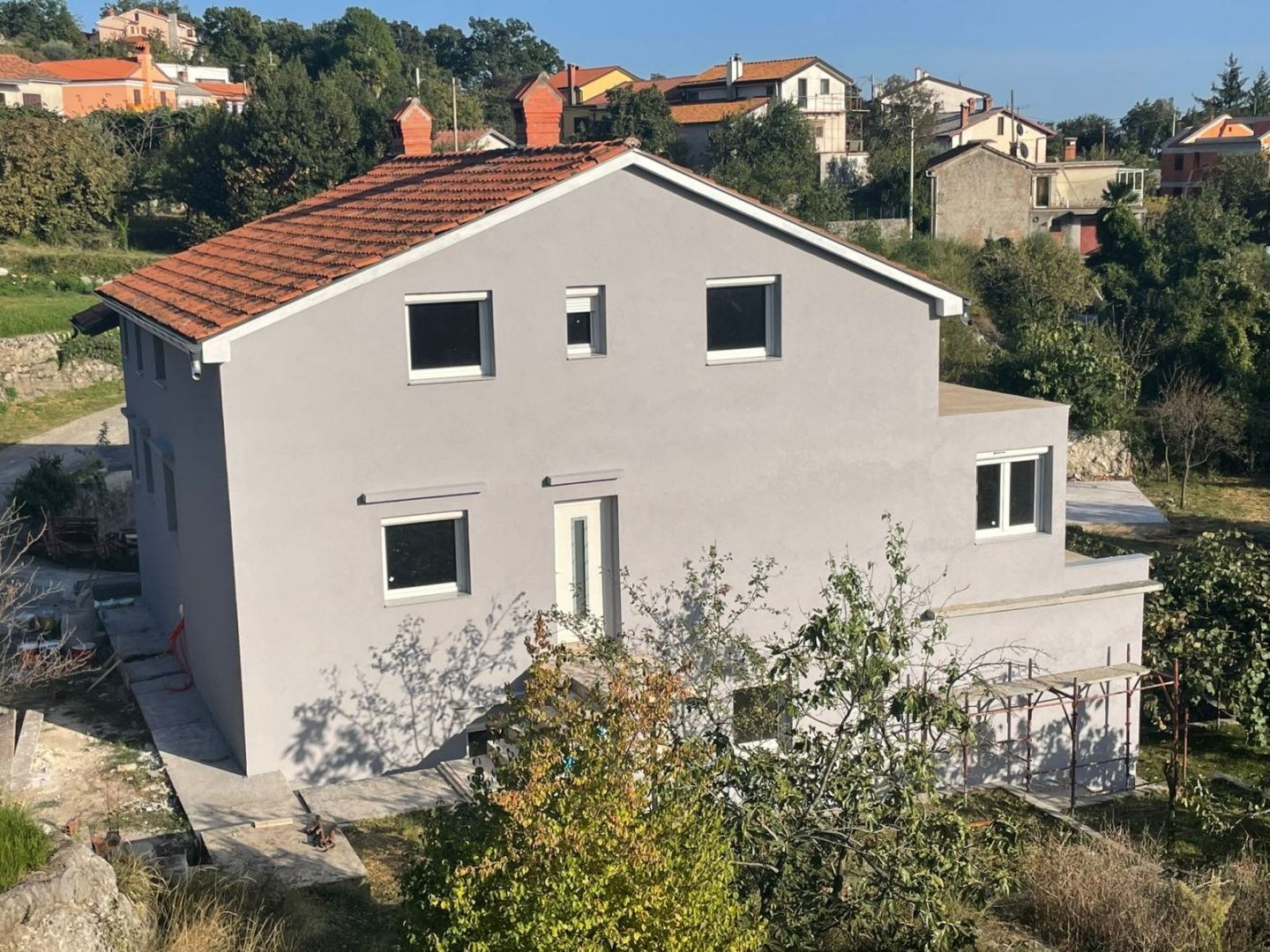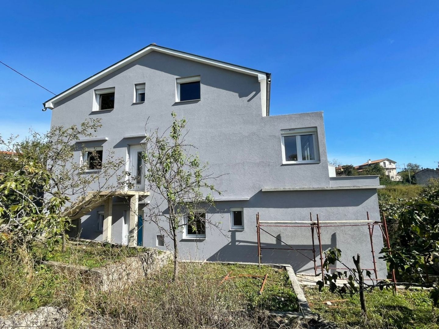 KASTAV, ĆIKOVIĆI – 2 Schlafzimmer + Bad mit Terrasse in einem frisch renovierten Haus Wir bieten Ihnen eine Wohnung im 1. Obergeschoss eines frisch renovierten Gebäudes in ruhiger und begehrter Lage in Ćikovići. Die 82 m² große Wohnung besteht aus zwei Schlafzimmern, einem Badezimmer, einem Flur und einem offenen Wohn-/Essbereich mit Küche. Vom Wohnzimmer aus gelangen Sie auf eine 12 m² große Terrasse, die zusätzlichen Platz zum Verweilen und Entspannen bietet. Die Immobilie wird im fortgeschrittenen Renovierungsstadium verkauft, sodass Sie die Inneneinrichtung nach Ihren Wünschen und Bedürfnissen gestalten können. Die Lage bietet ein ruhiges Umfeld mit guter Anbindung und in der Nähe aller Annehmlichkeiten des täglichen Lebens.