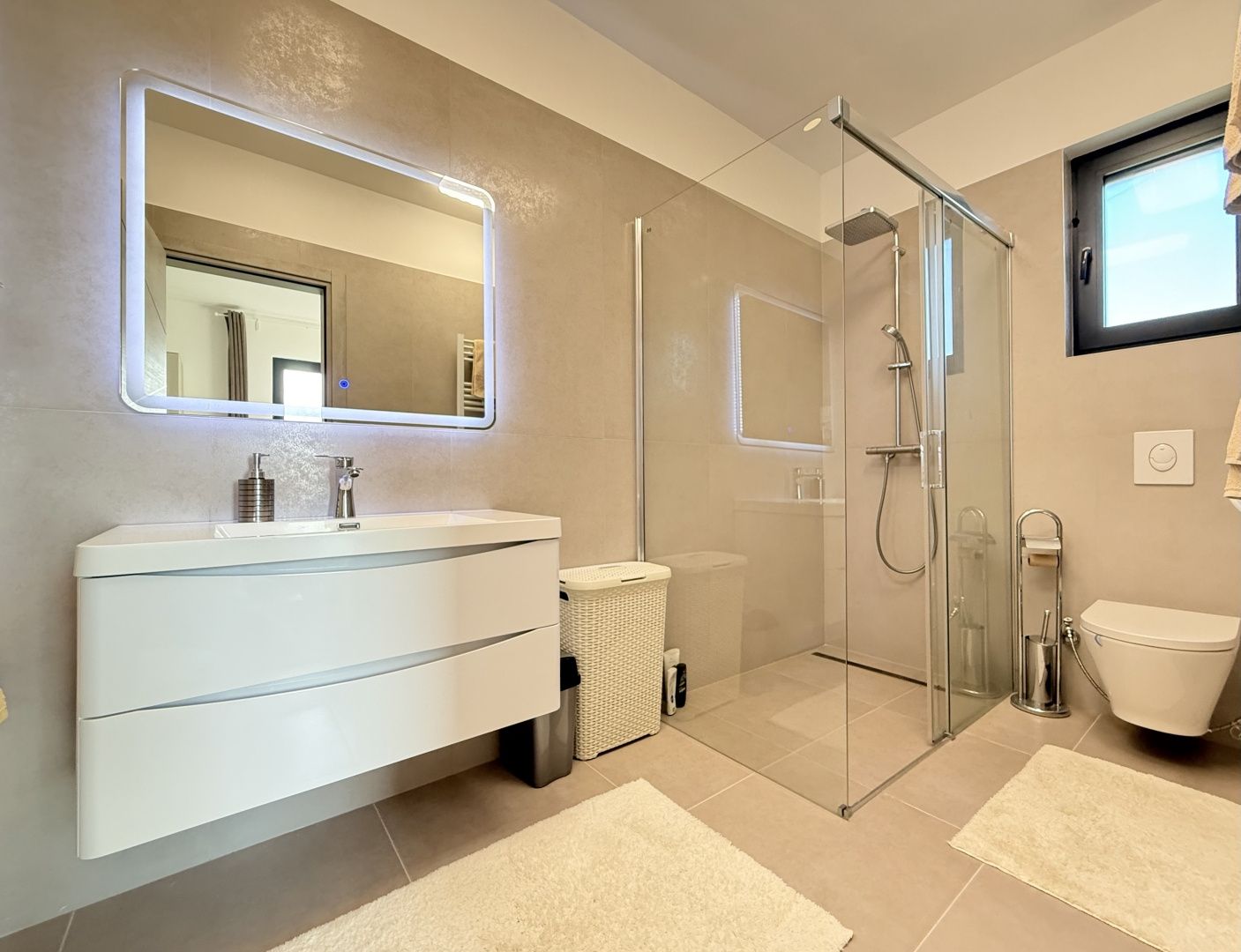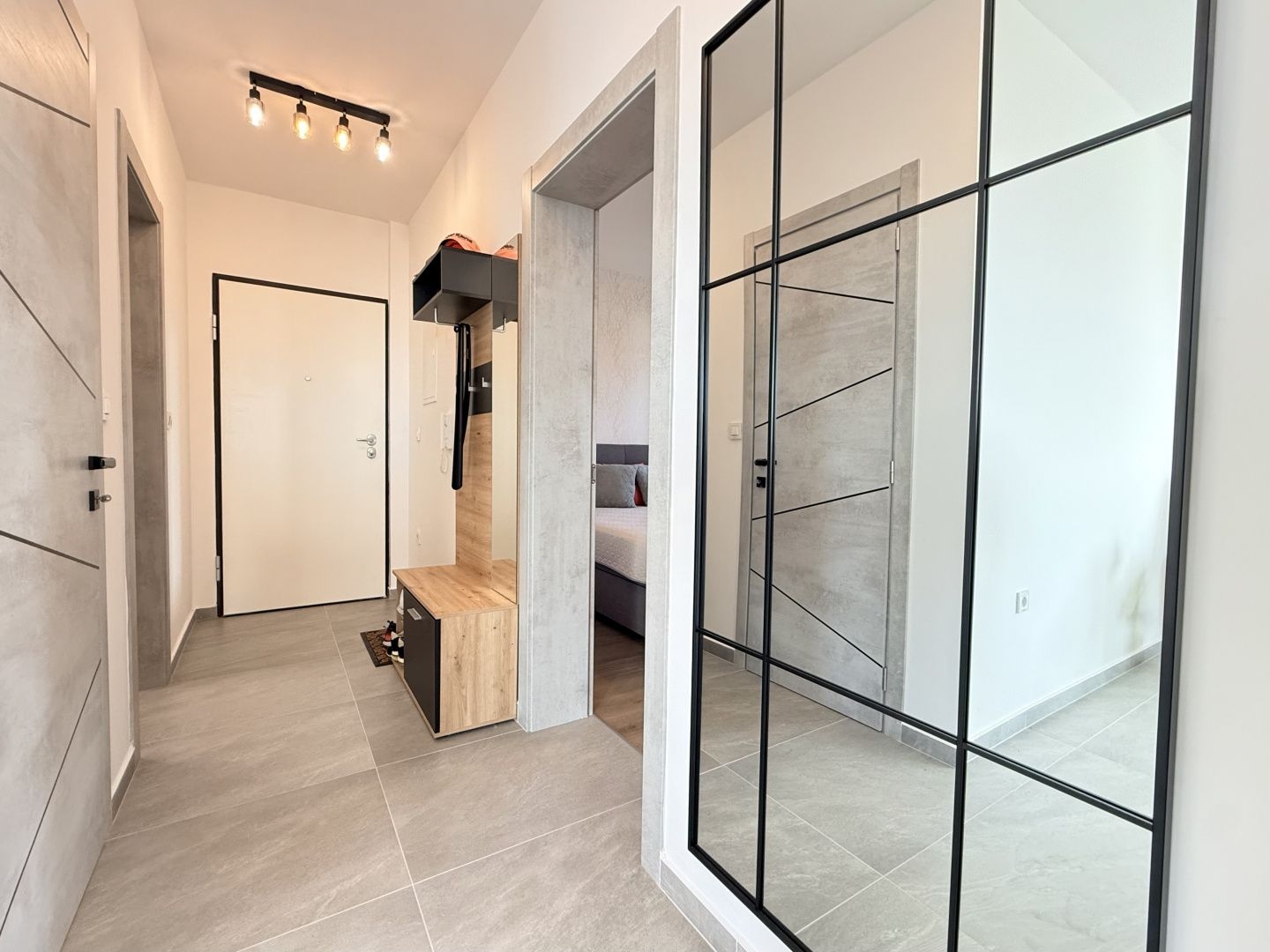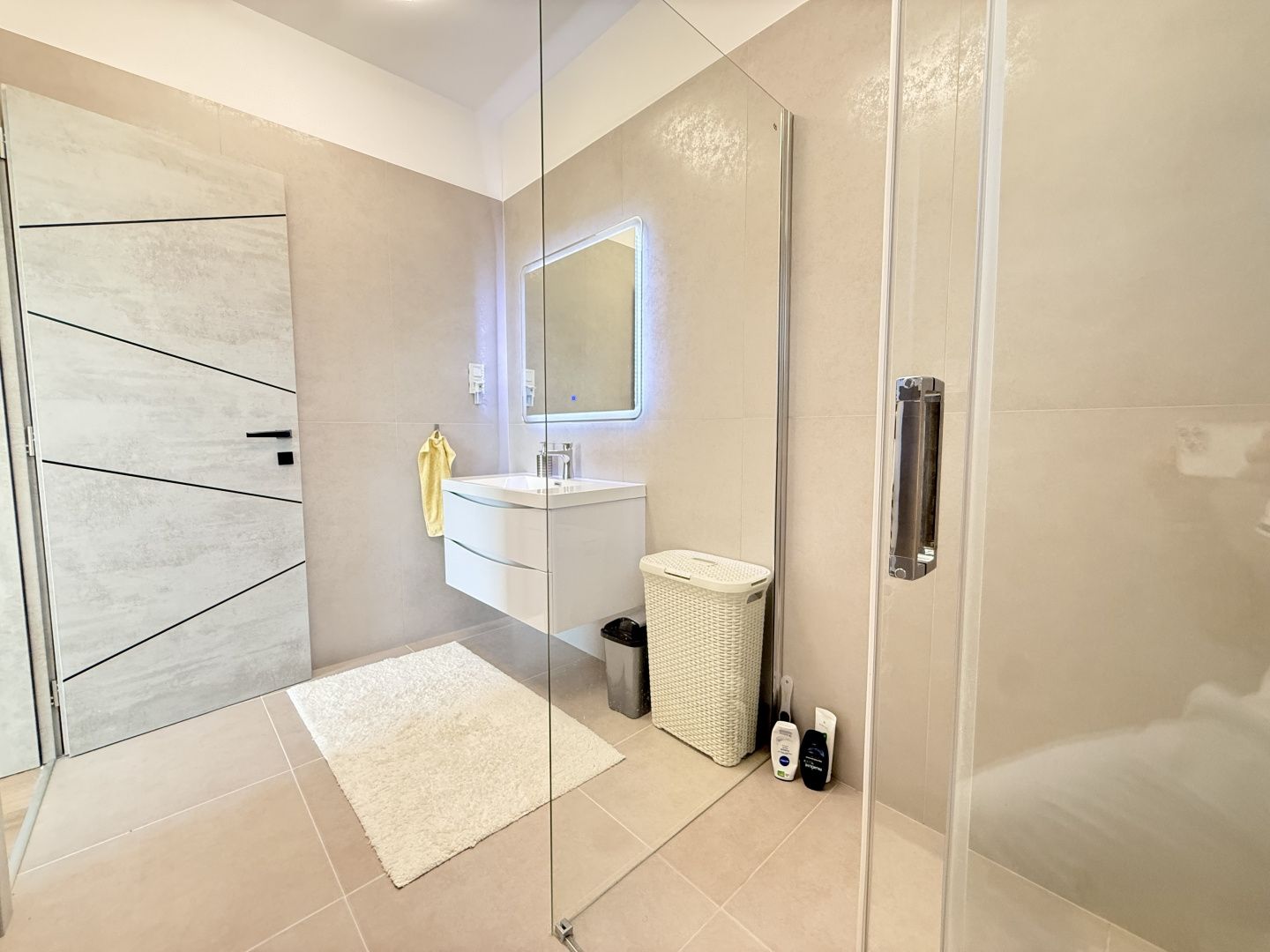 KLENOVICA – Luxuswohnung in erster Reihe zum Meer in einem Neubau ERSTE REIHE ZUM MEER – PANORAMABLICK – EXKLUSIVE WOHNUNG MIT ERSTKLASSIGER DEKORATION. Eine einzigartige Immobilie in Klenovica steht zum Verkauf – eine exklusiv eingerichtete Wohnung in einem kleineren Neubau (2023), buchstäblich 10 Meter vom Meer entfernt. Diese Gelegenheit bietet sich selten auf dem Markt – eine erstklassige Wohnung in prestigeträchtiger Lage, voll möbliert und bereit, ohne Kompromisse genossen zu werden. Die Wohnung befindet sich im zweiten Stock, zugleich im obersten Stockwerk, und nimmt die beste Lage im Gebäude ein. Gesamtfläche 90,79 m², und die Aufteilung umfasst: geräumige Küche, Esszimmer und Wohnzimmer (36,54 m²) Flur (6,43 m²) zwei komfortable Schlafzimmer (11,49 m² und 13,39 m²) zwei luxuriöse Badezimmer (5,98 m² und 5,53 m²) Abstellraum überdachte Terrasse (10,33 m²) mit unverbaubarem Panoramablick auf das Meer. Die Wohnung ist mit hochwertigsten Materialien und maßgefertigten Möbeln ausgestattet und jedes Detail wurde sorgfältig durchdacht. Jeder Raum in der Wohnung hat Fußbodenheizung, viel natürliches Licht und vermittelt einen Eindruck von Eleganz, Komfort und Luxus. Das Gebäude ist eingezäunt, ebenso wie der Garten, und im Hof gibt es einen privaten Ausgang direkt zum Strand. Obwohl es in der ersten Reihe zum Meer liegt, ist die Lage äußerst ruhig und privat, perfekt für ein entspanntes Leben am Meer, ohne Lärm und Menschenmassen. Das Gebäude ist kleiner und hat einen privateren Charakter, was zusätzlich zum Gefühl von Luxus und Sicherheit beiträgt. Zur Wohnung gehört auch ein eigener Parkplatz. Eine echte Rarität auf dem Markt, eine fantastische Immobilie für alle, die höchste Qualität, stressfrei und ohne zusätzliche Investitionen suchen. Geeignet sowohl zum dauerhaften Wohnen als auch als luxuriöses Ferienhaus oder als sichere Investition für die Vermietung auf höchstem Niveau. Diese Gelegenheit sollten Sie sich nicht entgehen lassen. Bei jeder Besichtigung der Immobilie ist die Unterzeichnung eines Vermittlungsvertrags obligatorisch!