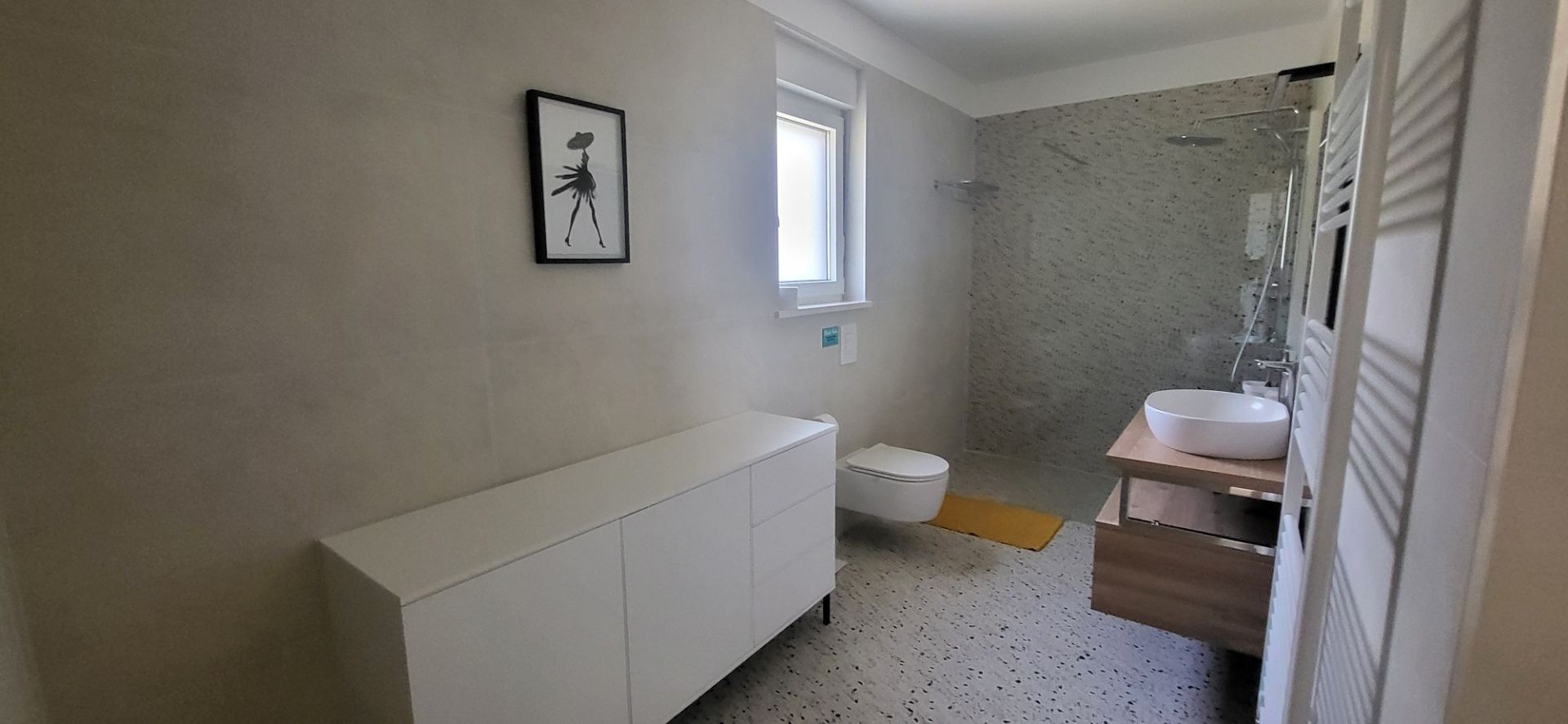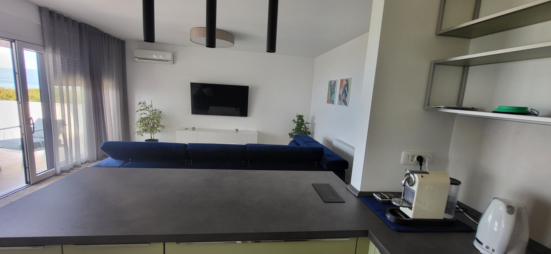 KOSTRENA – Wohnung zur Langzeitmiete Diese Zweizimmerwohnung in Kostrena ist ideal für alle, die eine ruhige Umgebung in Meeresnähe genießen möchten. Die Wohnung besteht aus einem geräumigen Wohnzimmer, einer Küche und einem Essbereich, die einen offenen Wohnbereich bilden und so für ein helles und luftiges Ambiente sorgen. Vom Wohnzimmer aus gelangt man auf einen Balkon mit herrlichem Meerblick – der perfekte Ort, um den Morgenkaffee zu genießen oder den Sonnenuntergang zu bewundern. Eine Außentreppe führt zu einem privaten Pool, der das luxuriöse Flair der Wohnung unterstreicht und zum Sonnenbaden und Entspannen einlädt. Die Wohnung verfügt über zwei komfortabel eingerichtete Schlafzimmer und zwei Badezimmer, was das Wohnen hier besonders praktisch und komfortabel macht. Eines der Schlafzimmer hat einen eigenen Balkon, ideal für Momente der Ruhe. Neben einem Hauswirtschaftsraum und einem Abstellraum ist die Wohnung komplett ausgestattet und möbliert und sofort bezugsfertig. Eine Klimaanlage sorgt für angenehme Temperaturen das ganze Jahr über. Vor dem Haus befindet sich ein privater Parkplatz, und es gibt zusätzliche Gästeparkplätze. Diese Wohnung bietet einen hohen Wohnstandard in ruhiger Lage. Dank der Nähe zu allen wichtigen Einrichtungen und der reizvollen Natur ist sie die perfekte Wahl zur Miete. ****