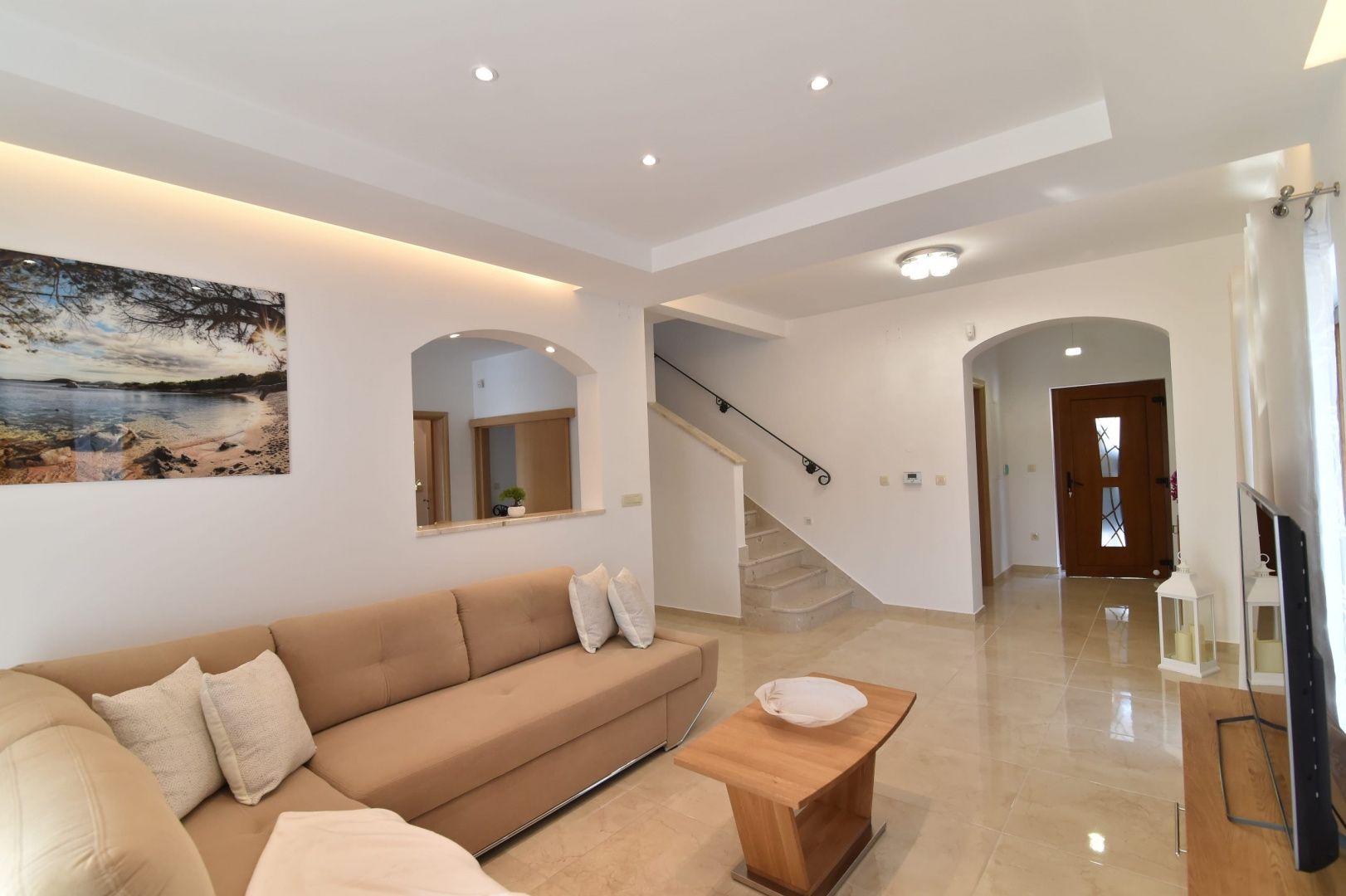 KRK, LINARDIĆI – Eleganz, Sicherheit und mediterraner Charme vereint, 350 m² In exklusiver und ruhiger Lage nahe Krk befindet sich diese prächtige, freistehende Villa mit 350 m² Wohnfläche, erbaut 2019 auf einem 735 m² großen Grundstück. Architektonisch klar, modern und elegant – dieses Anwesen ist ein privater Wohnsitz für alle, die sich nicht mit dem Durchschnitt zufriedengeben. Der Panoramablick aufs Meer erstreckt sich wie eine lebendige Leinwand, und jedes Detail des Hauses ist auf Komfort, Ästhetik und absolute Privatsphäre ausgerichtet. Der Innenbereich bietet optimalen Komfort für acht Personen und verfügt über vier geräumige Schlafzimmer, jeweils mit eigenem luxuriös ausgestatteten Badezimmer, Klimaanlage und Fernseher. Drei Zimmer sind mit Kingsize-Betten ausgestattet, das vierte mit zwei Einzelbetten. Die Räume strahlen eine Harmonie aus hochwertigen Materialien, sorgfältig ausgewählter Beleuchtung und moderner Technik aus. Wohnzimmer, Esszimmer und die voll ausgestattete Küche bilden ein repräsentatives Ensemble, ideal für gemütliche Treffen oder elegante Dinner. Besondere Exklusivität bietet der beheizte Innenpool, der als privater Spa-Bereich ganzjährig zur Verfügung steht. Die Villa verfügt zudem über Freizeiteinrichtungen wie Billard, Tischtennis und Badminton und schafft so das Ambiente eines luxuriösen Urlaubs, ohne das Haus verlassen zu müssen. Der Garten ist komplett umzäunt und gärtnerisch gestaltet, und der Parkplatz bietet Platz für fünf Fahrzeuge. Die Ausstattung entspricht höchsten modernen Wohnstandards. Jedes Element im Innen- und Außenbereich wurde sorgfältig ausgewählt, um ein Gefühl von raffinierter Eleganz und dauerhaftem Wert zu vermitteln. Die Immobilie erzielt im Tourismussegment hervorragende Ergebnisse mit ganzjährig hoher Auslastung. Der zukünftige Eigentümer kann ein etabliertes und profitables Unternehmen übernehmen und weiterhin signifikante Einnahmen mit minimalem Risiko generieren. Es besteht die Möglichkeit, ein Unternehmen mit der Option auf Mehrwertsteuererstattung oder -ausgleich zu erwerben, sowie die Option, ein bestehendes Unternehmen mit einem kompletten Geschäftsmodell zu übernehmen. Dies macht das Angebot besonders attraktiv für seriöse Investoren. Die Villa liegt 12 Kilometer von der Stadt Krk entfernt. Ein Restaurant und ein Geschäft befinden sich nur 1 Kilometer entfernt, das Meer 1,2 Kilometer, der Flughafen 28 Kilometer und die Autobahnausfahrt 33 Kilometer. Die Nähe zum Flughafen gewährleistet schnelle und bequeme Verbindungen zu nationalen und internationalen Zielen. Die Insel Krk, eine der begehrtesten Inseln der Adria, ist bekannt für ihr kristallklares Wasser, exklusive Buchten und ihr reiches kulturelles Erbe. Der historische Stadtkern von Krk, die erstklassige Gastronomie, der Yachthafen, die Promenaden und die abwechslungsreichen Strände schaffen einen Lebensstil, der Prestige, Natur und eine sichere Investition vereint. Diese Villa ist ein sorgfältig gestaltetes Luxusdomizil in einer der exklusivsten Lagen der Adria. Sehr geehrte Kaufinteressenten, wir freuen uns über Ihr Interesse an den Immobilien in unserem Angebot. Für weitere Informationen und zur Vereinbarung eines Besichtigungstermins kontaktieren Sie uns bitte. Eine Besichtigung ist nur nach Unterzeichnung eines Maklervertrags möglich. Die Maklergebühr richtet sich nach den Allgemeinen Geschäftsbedingungen. https://www.dux-nekretnine.hr/opci-uvjeti-poslovanja