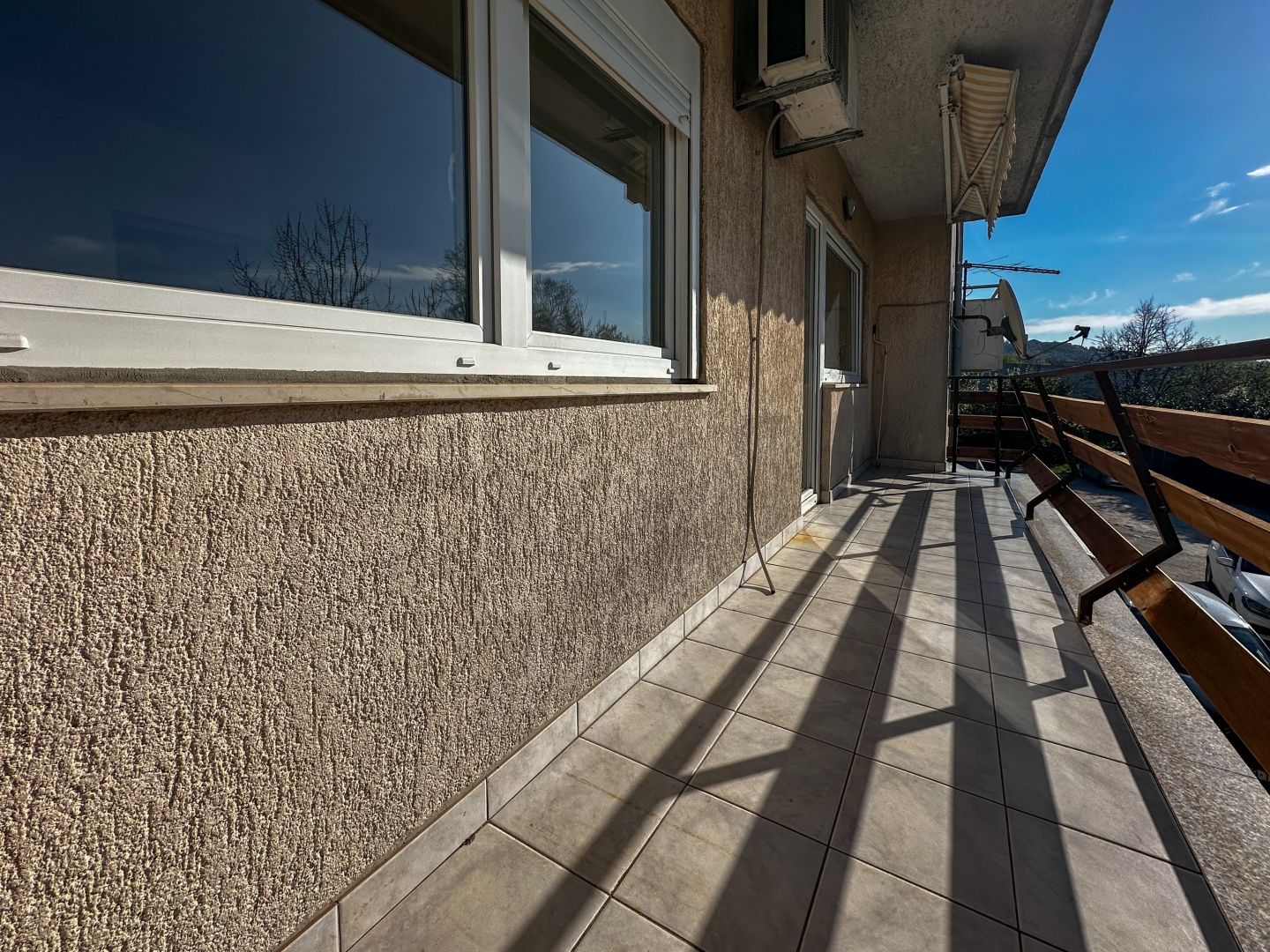 MATULJI – Attraktive Gelegenheit: Gepflegte 3-Zimmer-Wohnung mit Wohnzimmer, Balkon und Parkplatz Im Angebot von DUX befindet sich eine großzügige Etagenwohnung im ersten Obergeschoss eines kleinen Wohnhauses mit insgesamt drei Wohneinheiten. Die 87 m² große Wohnung ist den ganzen Tag über lichtdurchflutet und bietet so eine angenehme und warme Atmosphäre. Die Raumaufteilung ist durchdacht und auf die Bedürfnisse einer modernen Familie zugeschnitten. Das Herzstück bildet das Wohnzimmer mit angrenzender Küche. Drei Schlafzimmer bieten sich ideal für Familien mit Kindern oder zur Einrichtung eines Arbeitszimmers an. Zusätzlich gibt es ein Badezimmer, ein Gäste-WC, einen Flur und eine Speisekammer mit zusätzlichem Stauraum. Ein besonderes Highlight ist der große Balkon, der vom Wohnzimmer und einem Schlafzimmer aus zugänglich ist und zum Entspannen an der frischen Luft einlädt. Zur Wohnung gehören außerdem zwei Parkplätze im Hof des Gebäudes, was den Wohnkomfort zusätzlich erhöht. In ruhiger Lage bietet diese Etage Privatsphäre und Ruhe. Alle wichtigen Einrichtungen wie Geschäfte, Schulen und Kindergärten sind nur wenige Minuten entfernt.