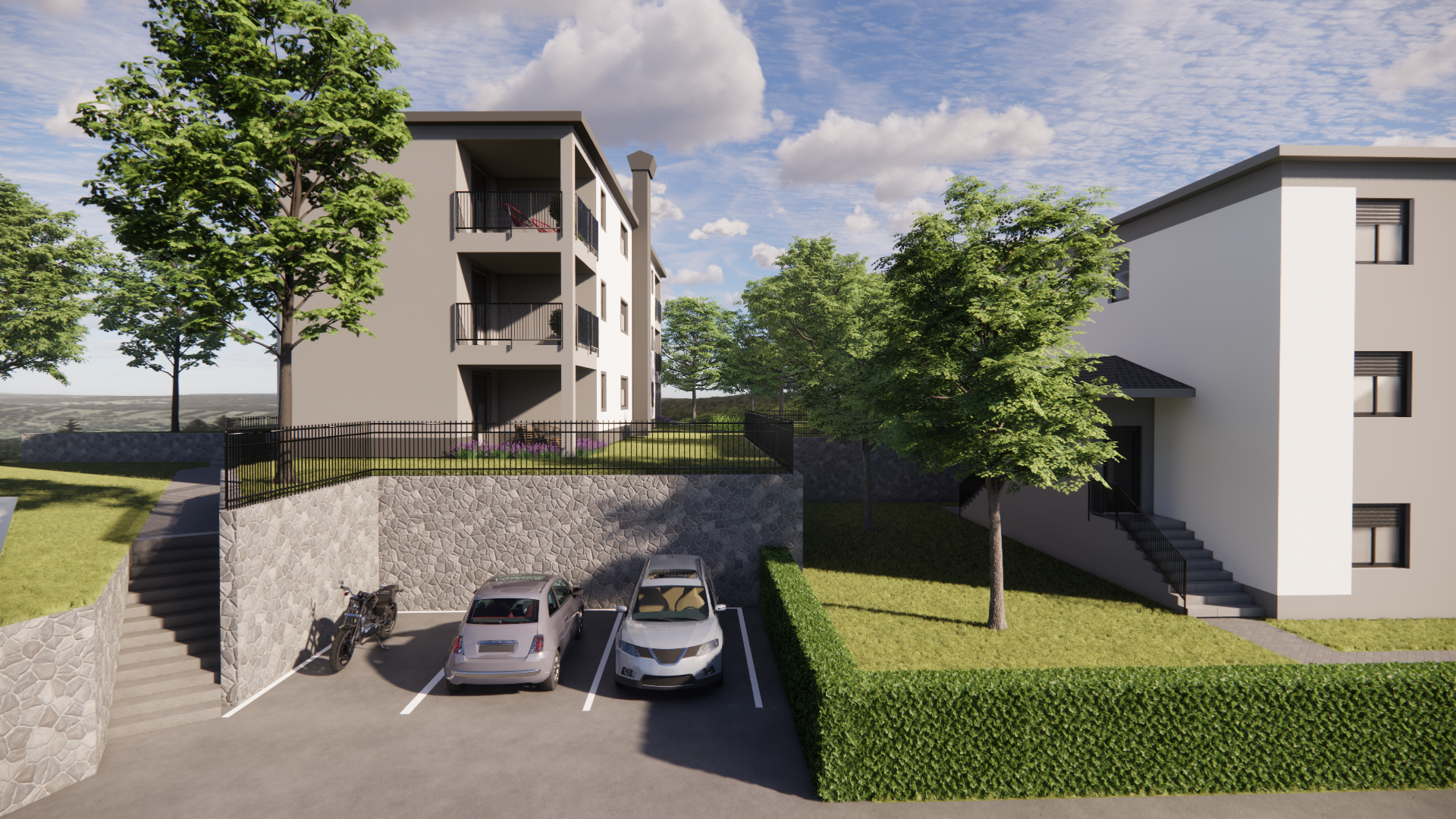 MATULJI, JUŠIĆI, JURDANI – Wohnung, 2. Stock, 64,19 m² in einem Neubau, DB+2S mit Garten Unweit des Zentrums von Matulji, in Jušići, verkaufen wir eine Wohnung im zweiten Stock bestehend aus: - Flur, - zwei (2) Schlafzimmern, - Esszimmer + Wohnzimmer, - Küche, - Badezimmer und - überdachter Terrasse, alle im ersten Stock, und Folgendes: – ein Lagerraum (Markierung Nr. 3), – ein Parkplatz (Markierung Nr. 3) und – Grünflächen (Markierung Nr. 3) außerhalb des Gebäudes, alle blau markiert. Die Gesamtfläche des Wohnteils beträgt 59,26 m², die Nebenflächen 53,95 m². Die Gesamtfläche des Sonderteils beträgt 113,21 m³‘. Die Anlage ist mit hochwertiger PVC-Tischlerei und elektrischer Fußbodenheizung ausgestattet. Die Mehrwertsteuer ist im Preis enthalten, sodass der zukünftige Käufer beim Erwerb der Immobilie keine Steuern zahlt.