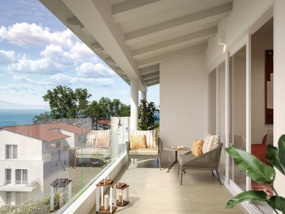 NOVI VINODOLSKI – Penthouse in erster Strandreihe mit Hotelausstattung DUX präsentiert exklusiv ein einzigartiges Luxus-Resort in Novi Vinodolski, in erster Strandreihe gelegen, mit eigenem Privatstrand und Hotelausstattung für ein rundum mediterranes Erlebnis. Das luxuriöse Penthouse befindet sich im zweiten Stock der Residenz A und bietet eine Wohnfläche von 116 m². Herzstück des Penthouses ist ein großzügiger, offener Wohnbereich mit Küche und Essbereich (43 m²). Vom Wohnbereich gelangt man auf eine geräumige Terrasse. Vom Eingangsbereich aus erreicht man zwei Schlafzimmer (je 25 m²), die jeweils über ein eigenes Badezimmer verfügen. Das Hauptschlafzimmer besticht durch direkten Zugang zum Balkon, während das zweite Schlafzimmer denselben Komfort und dieselbe Privatsphäre bietet. Das Penthouse umfasst außerdem ein Gäste-WC und einen Abstellraum. Die Inneneinrichtung erfolgt nach den Vorgaben des Verkäufers und wird pauschal abgerechnet. Die komplette Möblierung obliegt dem Investor. Das Resort bietet zudem zahlreiche Annehmlichkeiten, die den Lebensstandard deutlich erhöhen. Es gibt drei Swimmingpools mit Lounge-Bereichen, ein Wellness- und Spa-Center, einen Privatstrand, Restaurants und Bars sowie weitere Einrichtungen wie einen Tennisplatz, ein Indoor-Spielzimmer und einen Wasserpark für die Kleinsten. Zusätzlich stehen Ihnen À-la-carte-Services wie Wäscheservice, Lebensmittellieferung, Auto- oder Bootsverleih, Ausflugsbuchungen, ein Personal Trainer, Massagen in der Residenz und Babysitter-Service zur Verfügung. Mit dem Kauf einer Residenz erhalten Sie außerdem eine exklusive Mitgliedschaft im Accor Ownership Benefits Programm mit VVIP-Status und zahlreichen Vorteilen. Für die Nutzung der Einrichtungen innerhalb dieser exklusiven Anlage zahlt der zukünftige Eigentümer eine jährliche Pauschalgebühr. Diese beinhaltet die Nutzung aller Gemeinschaftseinrichtungen sowie die regelmäßige Instandhaltung der Anlage. Die genannte Gebühr umfasst Leistungen wie die Außenreinigung, die Gartenpflege und die Bewässerungsanlagen. So können Eigentümer den hohen Lebensstandard dieser Anlage unbeschwert genießen. Das Resort verfügt über eine private Tiefgarage mit 450 Stellplätzen, davon 304 für Eigentümer, sowie 10 Ladestationen für Elektrofahrzeuge. Für eine Besichtigung oder weitere Informationen kontaktieren Sie bitte vertrauensvoll den Makler. Beratungen sind auch auf Deutsch möglich.