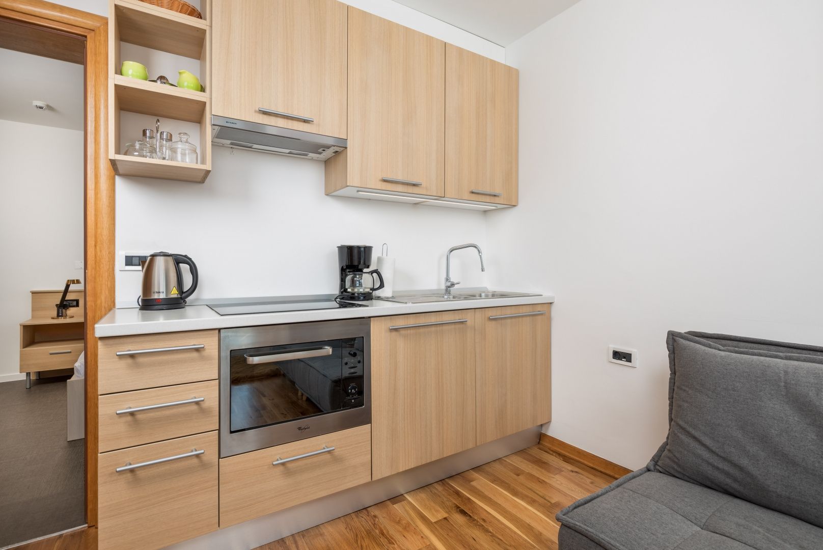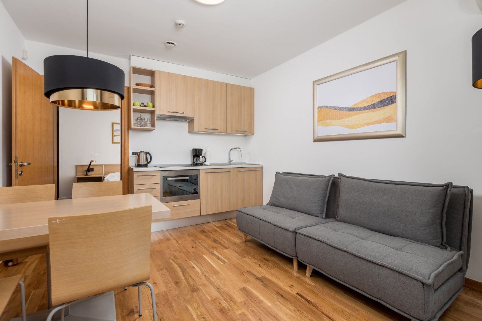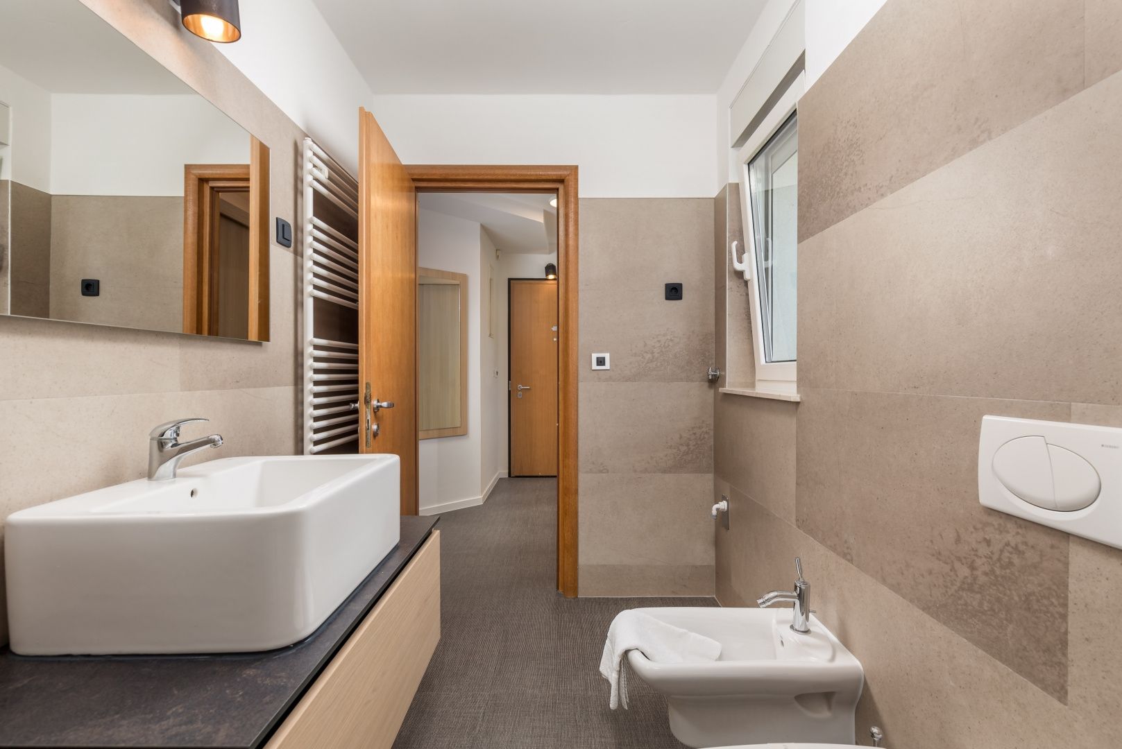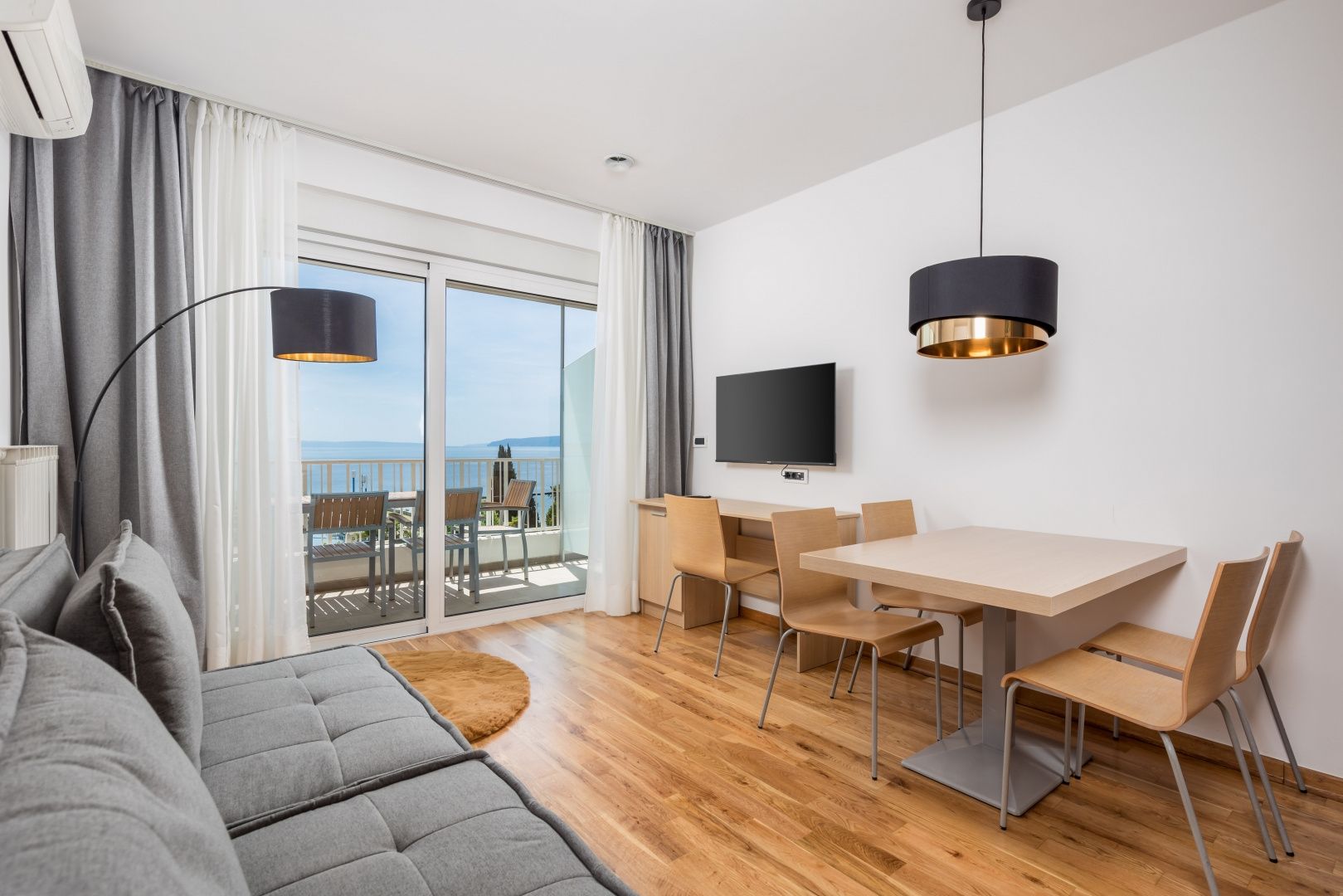 OPATIJA, IČIĆI – Moderne Wohnung (51 m²) zur Langzeitmiete mit Swimmingpool und Panoramablick auf das Meer In außergewöhnlicher Lage am Meer, in einem ruhigen Teil von Ičići bei Opatija, steht eine moderne und luxuriös ausgestattete Wohnung in einem Mehrfamilienhaus mit Aufzug zur Miete. Die Wohnung E5 befindet sich im 1. Stock und verfügt über zwei geräumige Terrassen – eine mit offenem und die andere mit seitlichem Blick auf das Meer und Ičići. Der Innenraum ist sorgfältig eingerichtet und funktional gestaltet. Er besteht aus einem Eingangsbereich mit Garderobe, einem Schlafzimmer, einem Badezimmer mit ebenerdiger Dusche, Bidet und WC sowie einem eleganten Wohnzimmer, das mit Küche und Esszimmer verbunden ist. Die Wohnung verfügt über eine Wärmepumpe zum Heizen und Kühlen. Eine Lüftung mit Wärmerückgewinnung sorgt das ganze Jahr über für optimale Temperatur und frische Luft. Ein videoüberwachter Parkplatz steht zur Verfügung. Die Mieter können außerdem den Außenpool nutzen, der mit den anderen Wohnungen im Gebäude geteilt wird. Monatsmiete: 950 € zzgl. Nebenkosten. Für eine Besichtigung kontaktieren Sie bitte einen unserer Makler – Beratung auf Deutsch möglich.