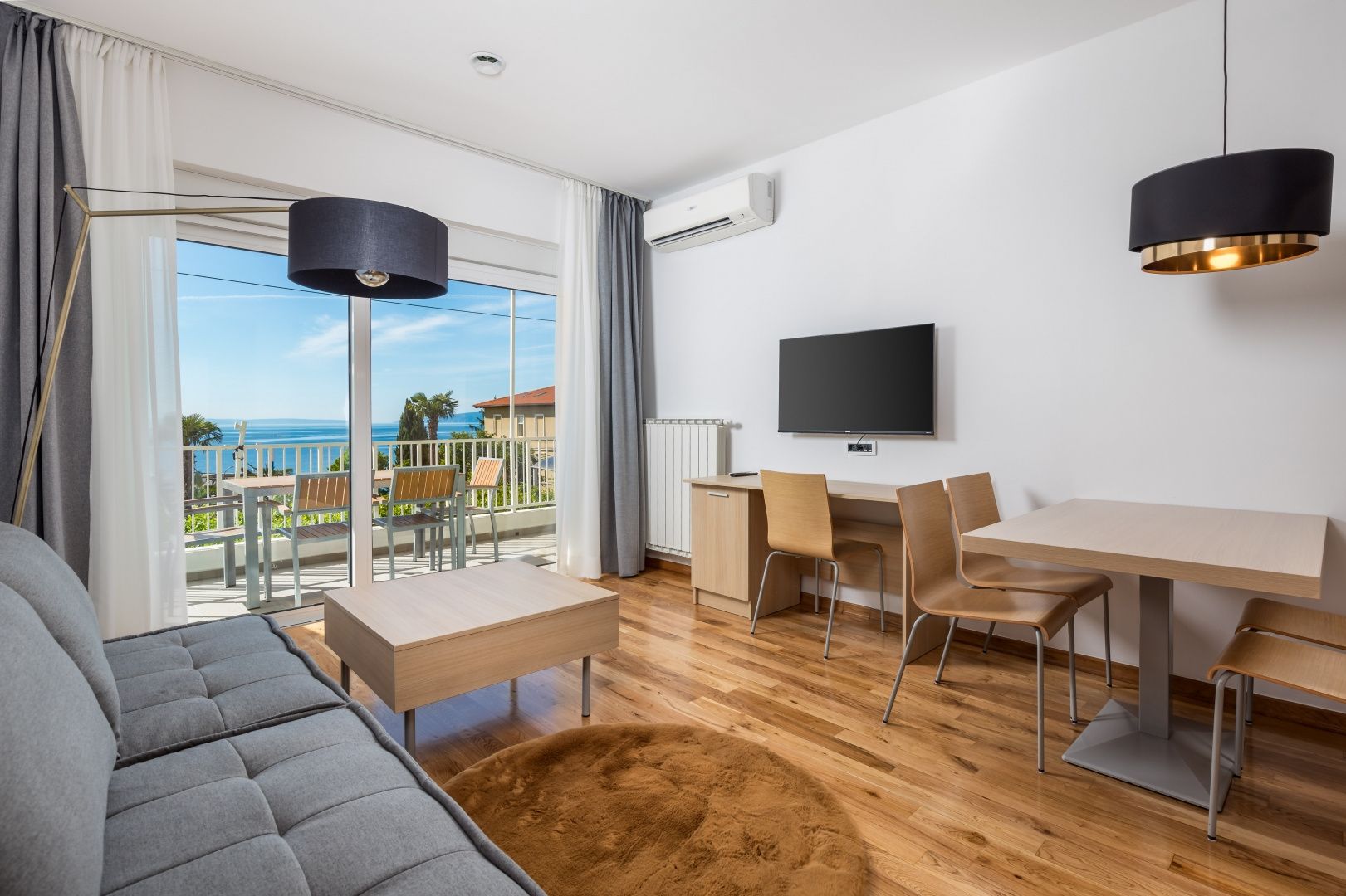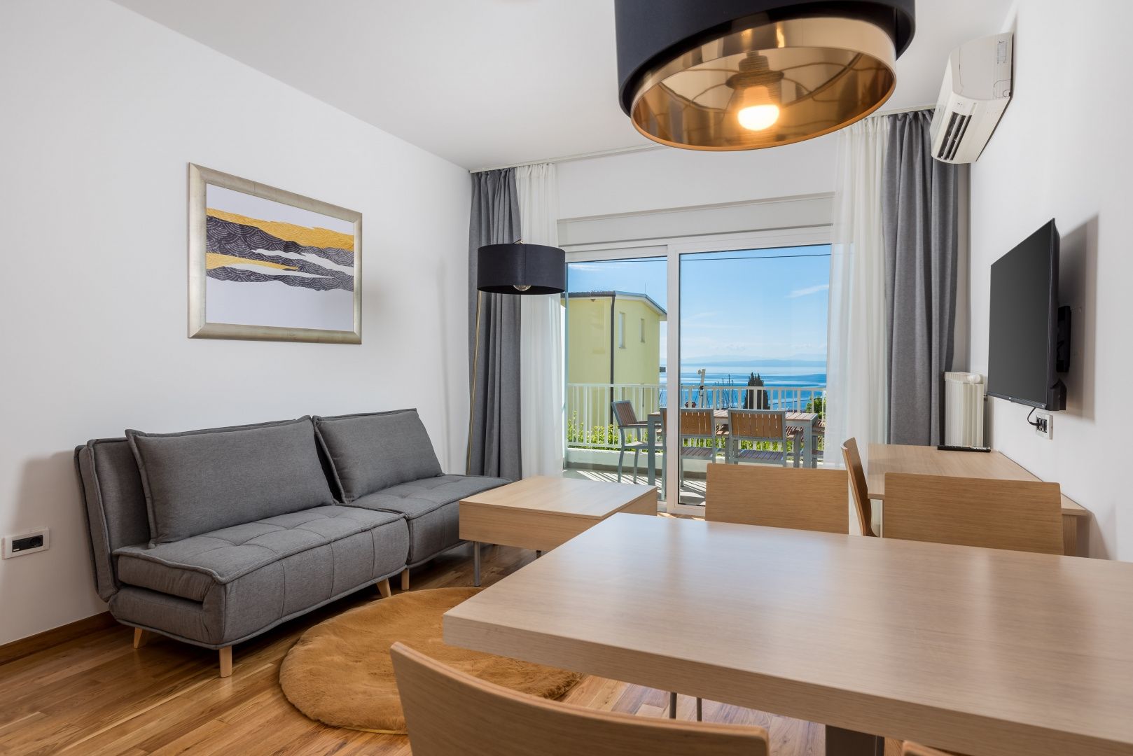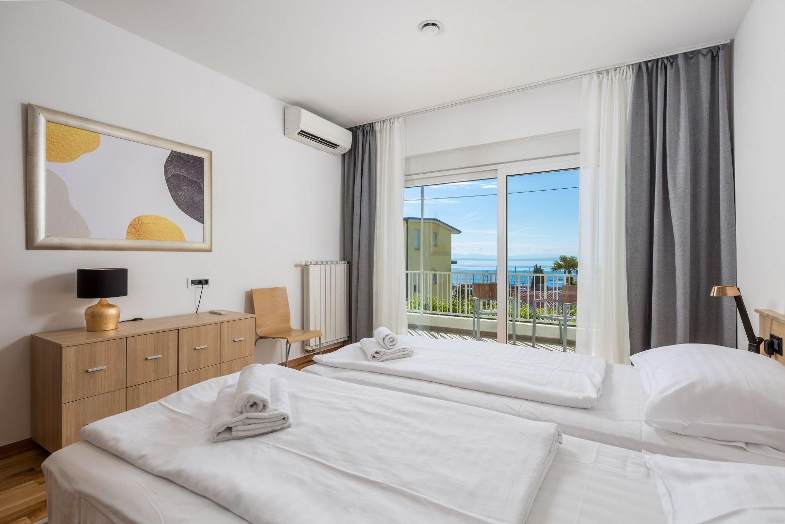 OPATIJA, IČIĆI – Modernes Apartment mit 66 m² zur Langzeitmiete, mit Swimmingpool und Panoramablick auf das Meer In außergewöhnlicher Lage am Meer, in einem ruhigen Teil von Ičići bei Opatija, steht ein modernes, luxuriös ausgestattetes und komplett möbliertes Apartment in einem Mehrfamilienhaus mit Aufzug zur Miete. Apartment C3 mit einer Gesamtfläche von 66 m² befindet sich im Hochparterre und verfügt über eine geräumige Terrasse mit freiem und bezauberndem Blick auf die gesamte Kvarner-Bucht. Der Innenraum ist sorgfältig dekoriert und funktional eingerichtet – er besteht aus einem Eingangsbereich mit Garderobe, einem Schlafzimmer, einem Wohnzimmer mit Esszimmer, einer Küche und einem Badezimmer mit ebenerdiger Dusche, WC und Bidet. Das Apartment ist mit einem modernen Heiz-, Kühl- und Lüftungssystem über eine Wärmepumpe ausgestattet, und die Lüftung mit Rekuperation sorgt das ganze Jahr über für einen angenehmen Aufenthalt. Das Gebäude wurde 2024 komplett renoviert und bietet zahlreiche Annehmlichkeiten: - Außenpool mit Sonnenterrasse und Dusche, - kostenloses WLAN, - gesicherten Parkplatz mit Videoüberwachung, - städtische Kanalisation und hohen Ausstattungsstandard. Monatsmiete: 1.100 € + Nebenkosten. Um einen Besichtigungstermin zu vereinbaren, rufen Sie einen vertrauenswürdigen Makler an – Beratung auf Deutsch möglich.