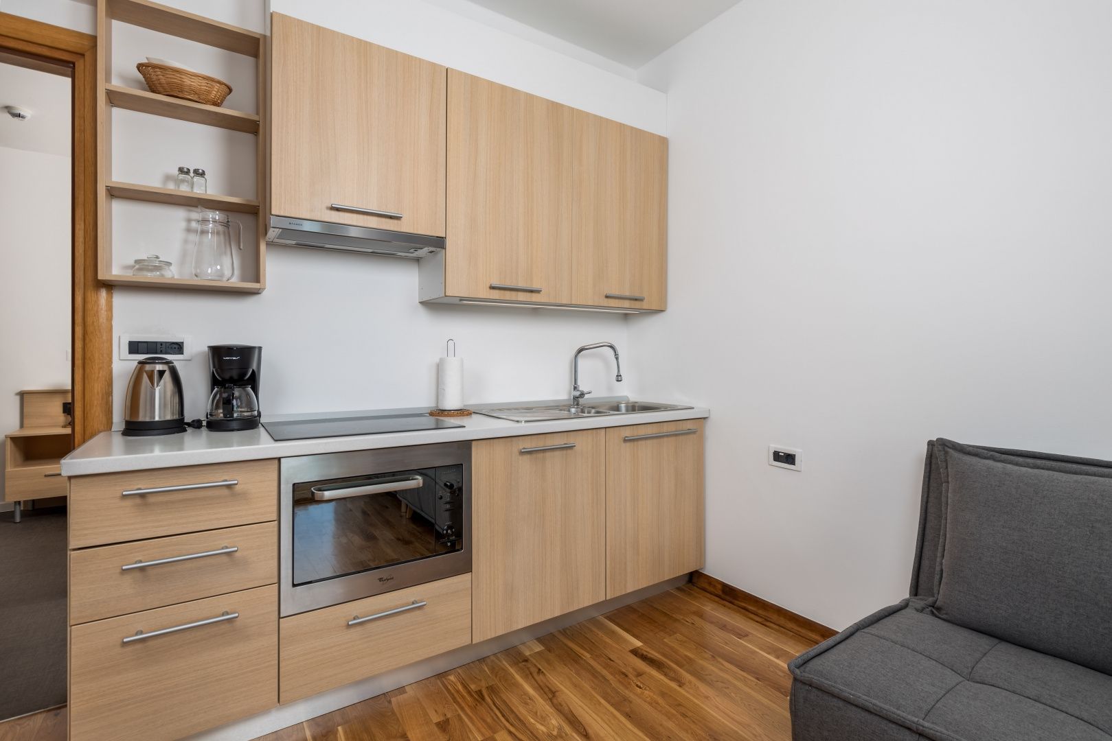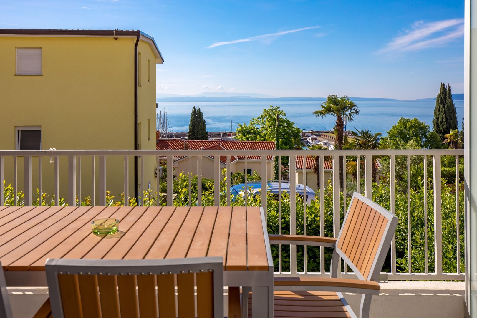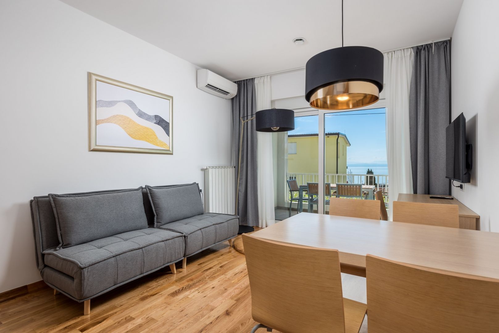OPATIJA, IČIĆI – Modernes Apartment mit 51 m² zur Langzeitmiete, mit Swimmingpool und Panoramablick auf das Meer In außergewöhnlicher Lage direkt am Meer, in einem ruhigen Teil von Ičići bei Opatija, steht dieses moderne und luxuriös ausgestattete Apartment in einem Mehrfamilienhaus mit Aufzug zur Miete. Apartment B2 befindet sich im Hochparterre und verfügt über zwei geräumige Terrassen – eine mit offenem und die andere mit seitlichem Blick auf das Meer und Ičići. Der Innenraum ist sorgfältig dekoriert und funktional eingerichtet. Er besteht aus einem Eingangsbereich mit Garderobe, einem Schlafzimmer, einem Badezimmer mit ebenerdiger Dusche, Bidet und WC sowie einem eleganten Wohnzimmer, das mit Küche und Esszimmer verbunden ist. Das Apartment verfügt über ein Heiz- und Kühlsystem mit Wärmepumpe, und eine Lüftung mit Wärmerückgewinnung sorgt das ganze Jahr über für optimale Temperatur und frische Luft. Ein videoüberwachter Parkplatz steht zur Verfügung, und die Mieter können auch den Außenpool nutzen, der mit anderen Wohnungen im Gebäude geteilt wird. Monatsmiete: 950 € zzgl. Nebenkosten. Um einen Besichtigungstermin zu vereinbaren, rufen Sie den Makler vertrauensvoll an – eine Beratung auf Deutsch ist möglich.