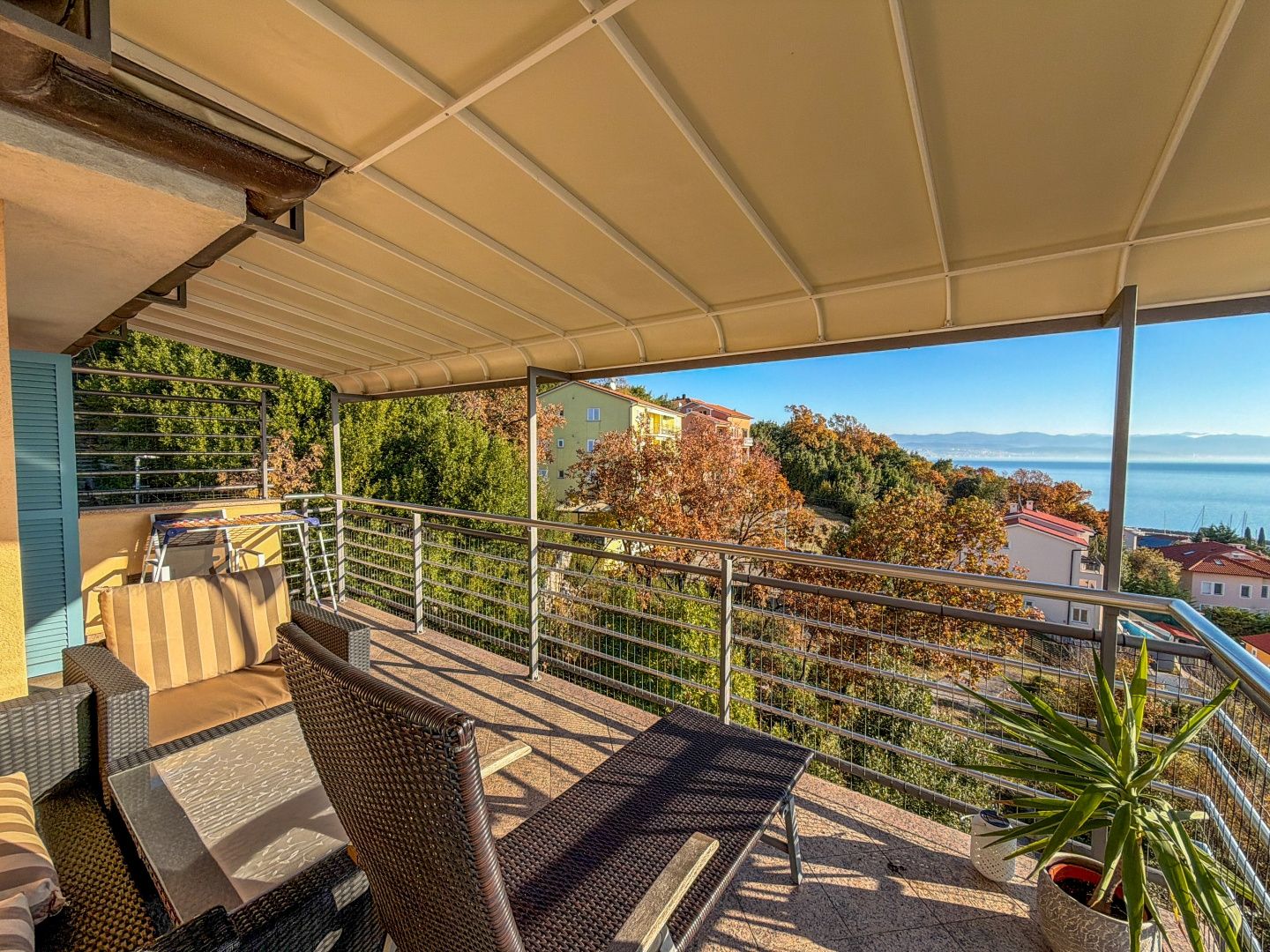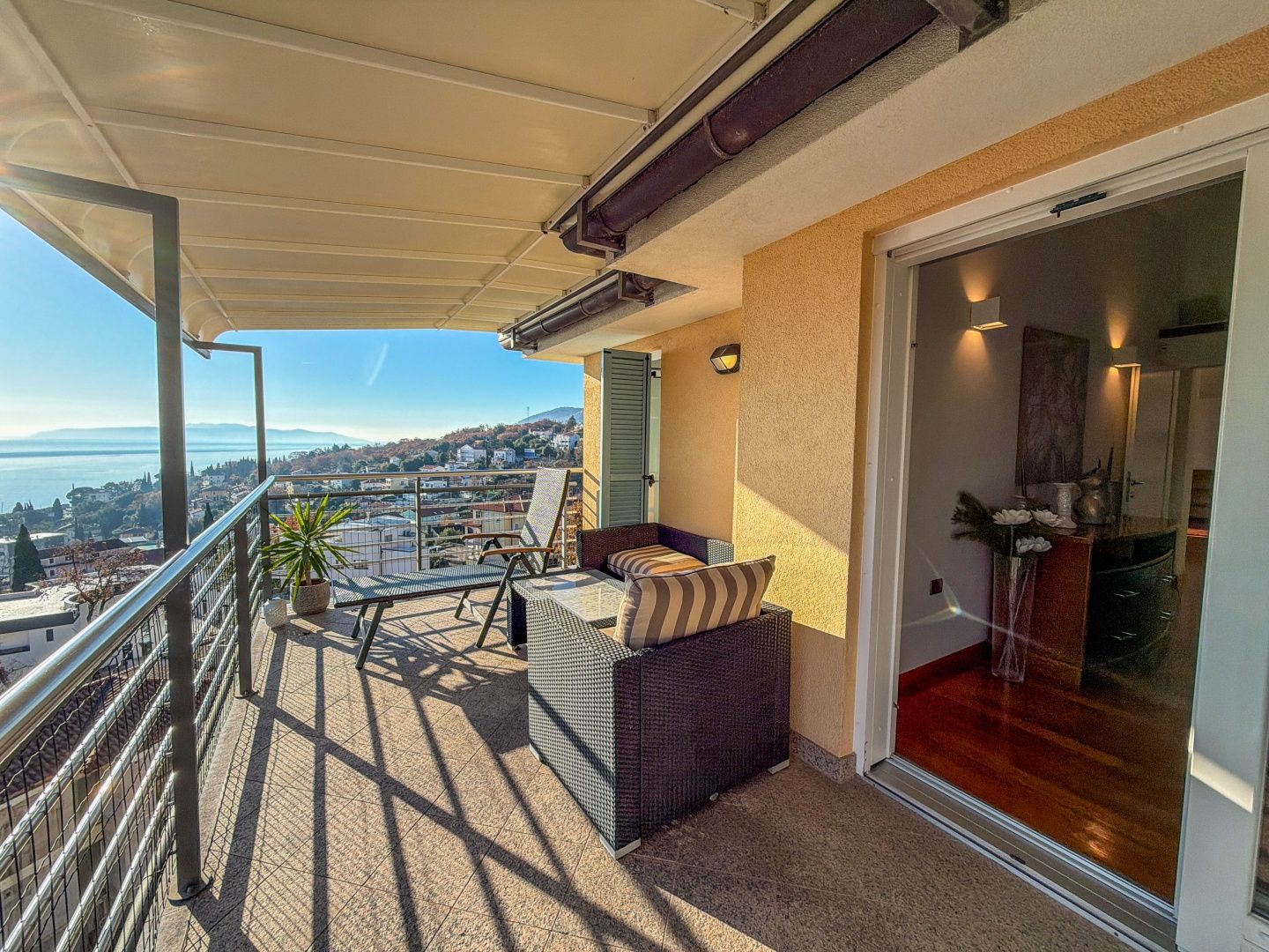 OPATIJA, IČIĆI – Penthouse in einer wunderschönen Villa oberhalb des Marriott Resorts, Garage, 300 m vom Strand In einem exklusiven DUX-Verkauf präsentieren wir Ihnen eine außergewöhnliche Immobilie nur wenige Schritte vom berühmten Marriott Resort am Meer entfernt, direkt am Strand von Ičići, dem schönsten Strandabschnitt in der Nähe von Opatija. Die neu erbaute Villa mit mehreren Apartments liegt in einer ruhigen Wohnstraße, nur 300 Meter von der Zufahrtsstraße zum Meer und zum Strand entfernt. Zur Ausstattung gehören ein Garten, ein Parkplatz und Garagenstellplätze. Das Penthouse im zweiten Obergeschoss besteht aus einem Flur, zwei geräumigen Schlafzimmern, zwei Badezimmern und einem großen, offenen Wohnbereich mit Zugang zu einer Terrasse mit Panoramablick auf das Meer. Auch das Hauptschlafzimmer mit eigenem Bad verfügt über eine eigene Terrasse mit Panoramablick auf das Meer und den bekannten Yachthafen ACI. Die neu erbaute Immobilie befindet sich in einem exzellenten Zustand und wurde kaum (nur saisonal) genutzt. Die verwendeten Materialien sind hochwertig, und die Schreinerarbeiten sind in einem Top-Zustand. Jedes Zimmer verfügt über eine Klimaanlage und eine Zentralheizung mit Heizkörpern. Zur Immobilie gehört eine geräumige Garage mit 22 m², wodurch sich die Gesamtfläche auf 135 m² beläuft. Die Lage des Gebäudes ist ideal: ruhig, verkehrsberuhigt und ohne Baustellen im vorderen Bereich. Von hier aus genießen Sie einen unverbaubaren Panoramablick auf das Meer. Dies ist eine großartige Gelegenheit, eine größere Wohnung in unmittelbarer Nähe zum Meer in Ičići zu erwerben. Die Fahrt ins Zentrum von Opatija dauert 5 Minuten, zum Strand 60 Sekunden. Der Strand ist in nur 4 Minuten zu Fuß erreichbar. Für eine Besichtigung rufen Sie den Makler gerne an – eine Beratung auf Deutsch ist möglich.