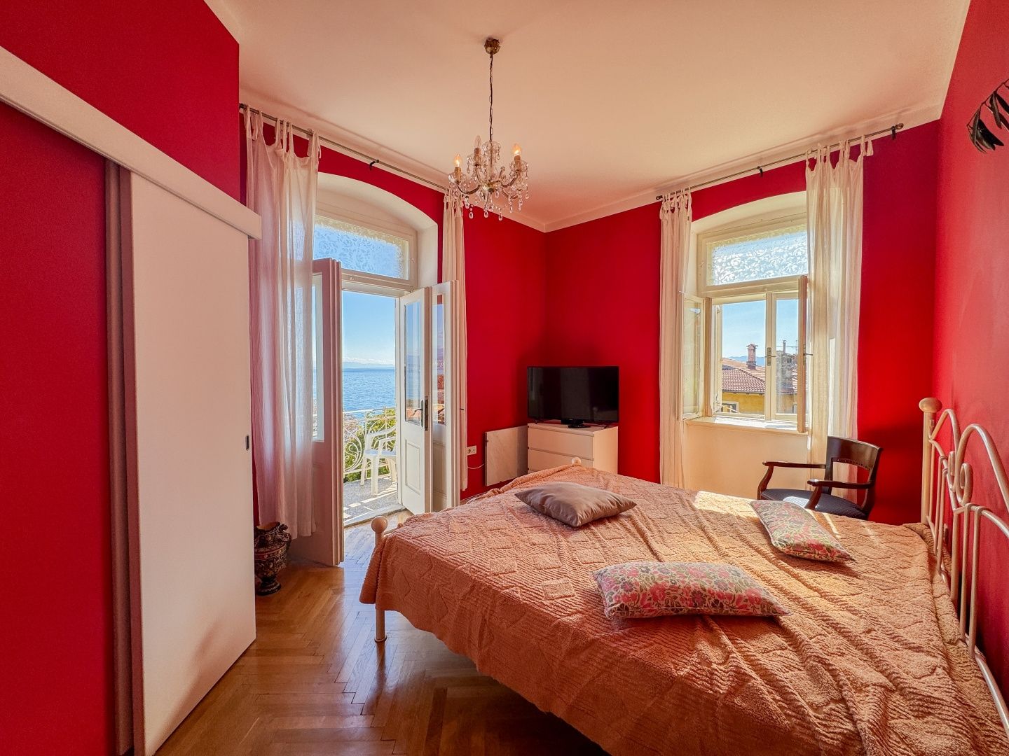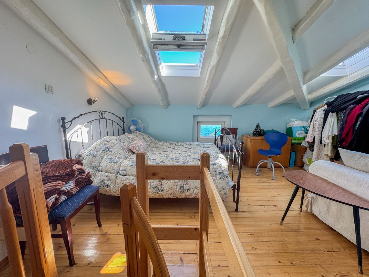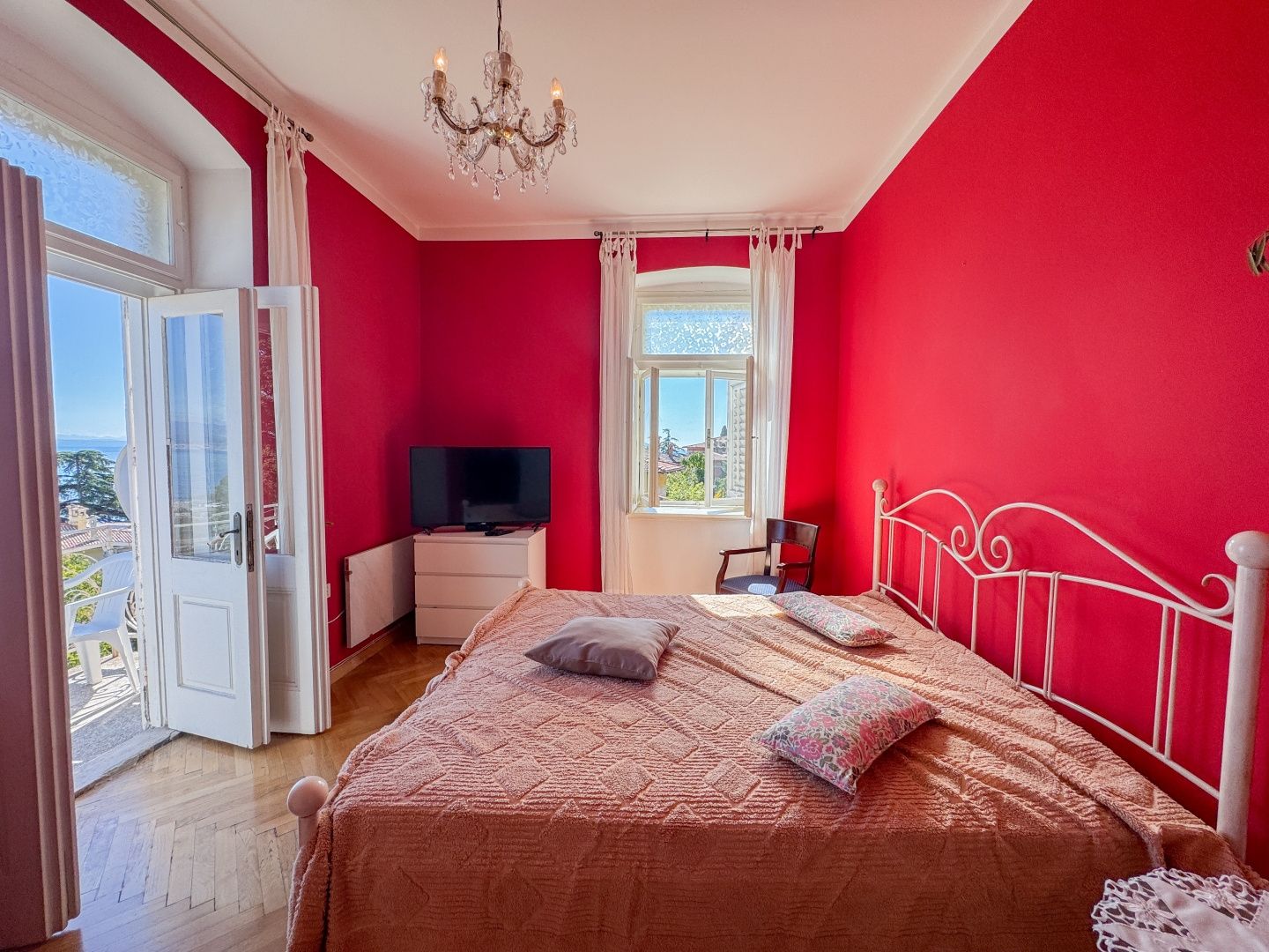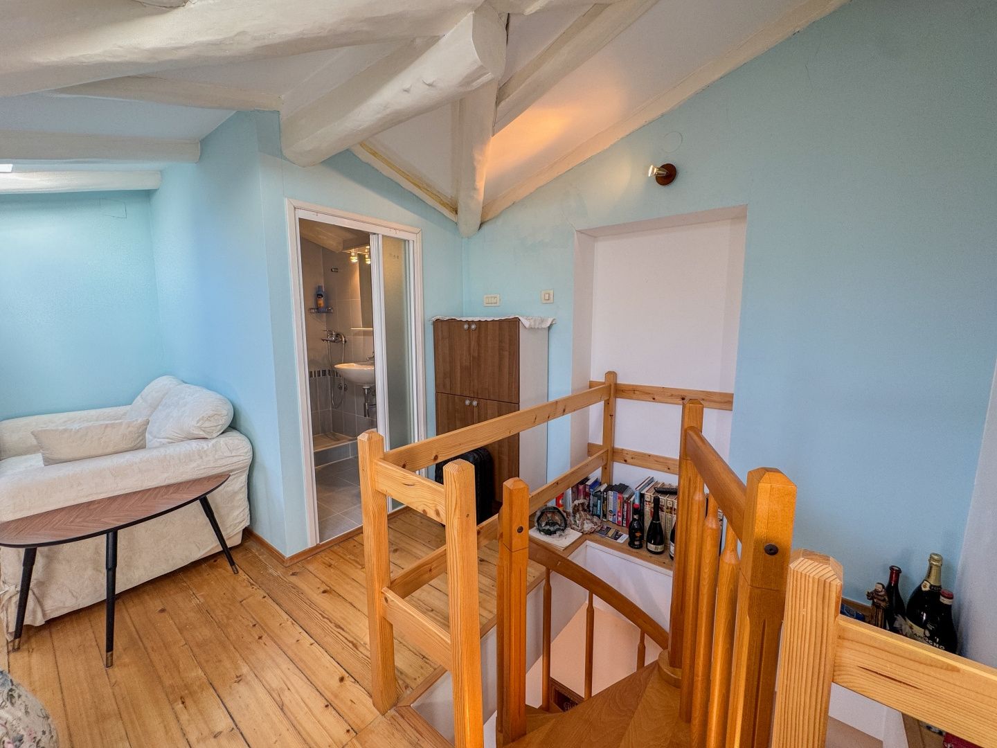 OPATIJA, LOVRAN – Eine einmalige Gelegenheit: Historische Villa-Wohnung in zweiter Reihe zum Meer mit Terrasse und Meerblick Exklusiv im Angebot von DUX präsentieren wir Ihnen eine Wohnung in zweiter Reihe zum Meer in einer historischen Villa in einer der besten Straßen von Lovran (bei Opatija). Die Wohnung befindet sich im 3. Obergeschoss einer österreichisch-ungarischen Villa und besteht aus Flur, Küche, großem Badezimmer mit Fenster, geräumigem Schlafzimmer nach Süden mit eigenem Balkon und Meerblick sowie einem offenen Wohnbereich mit Zugang zu einem weiteren Balkon mit Panoramablick auf das Meer. Eine Wendeltreppe führt zum Dachgeschoss mit einem zweiten Schlafzimmer und eigenem Bad. Wohnung und Anwesen befinden sich in einem guten und funktionalen Zustand. Die Schreinerarbeiten sind original und aus Holz, ebenso die Balkongeländer. Die hohen Decken unterstreichen die Authentizität dieser Immobilie. Dies ist eine fantastische Investitionsmöglichkeit und die ideale Wahl für Liebhaber historischer Gebäude. Die Villa verfügt über einen 400 m² großen Gemeinschaftsgarten. Das Meer ist nur wenige Schritte entfernt. Auch das Zentrum von Lovran und die berühmte Strandpromenade Lungomare sind bequem zu Fuß erreichbar. Für eine Besichtigung rufen Sie den Makler gerne an – eine Beratung auf Deutsch ist möglich.