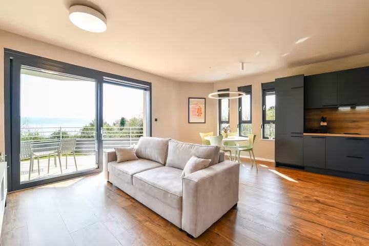 OPATIJA, OPRIĆ – Wohnung in einem Neubau mit Garten und Meerblick In einem exklusiven Verkauf bieten wir Ihnen die einmalige Gelegenheit, eine Wohnung in einem Neubau in Oprić, Opatija, zu erwerben. Die Wohnung befindet sich in einer ruhigen Straße in angenehmer und ruhiger Lage. Opatija ist ca. 7 Autominuten und Rijeka ca. 20 Minuten entfernt, was die Immobilie ideal für den Alltag macht. Die Wohnung liegt im Erdgeschoss eines modernen, neu erbauten Wohnhauses und verfügt über einen eigenen Garten. Die Wohnfläche beträgt 58 m². Die Wohnung ist funktional aufgeteilt und umfasst ein Schlafzimmer, ein Wohnzimmer mit Küche, ein Badezimmer und einen Flur. Ein Parkplatz gehört zur Wohnung, und das Meer ist ca. 1.000 m entfernt. Die Immobilie eignet sich sowohl zum Selbstbezug als auch – dank der Nähe zu Opatija und der guten Verkehrsanbindung – als Kapitalanlage zur Langzeit- oder Ferienvermietung. Um einen Besichtigungstermin zu vereinbaren, wenden Sie sich bitte an einen vertrauenswürdigen Makler – eine Beratung auf Deutsch ist möglich.