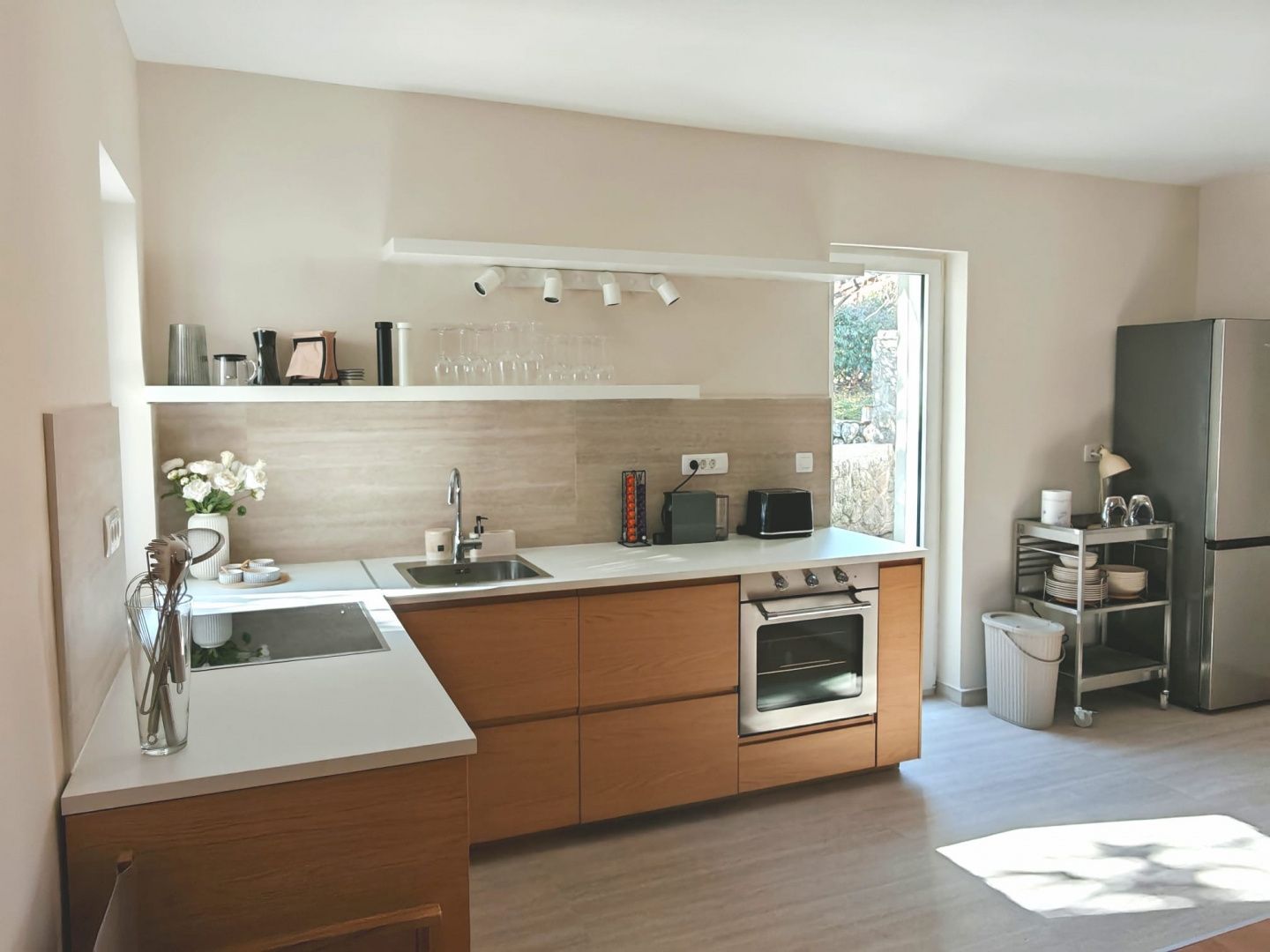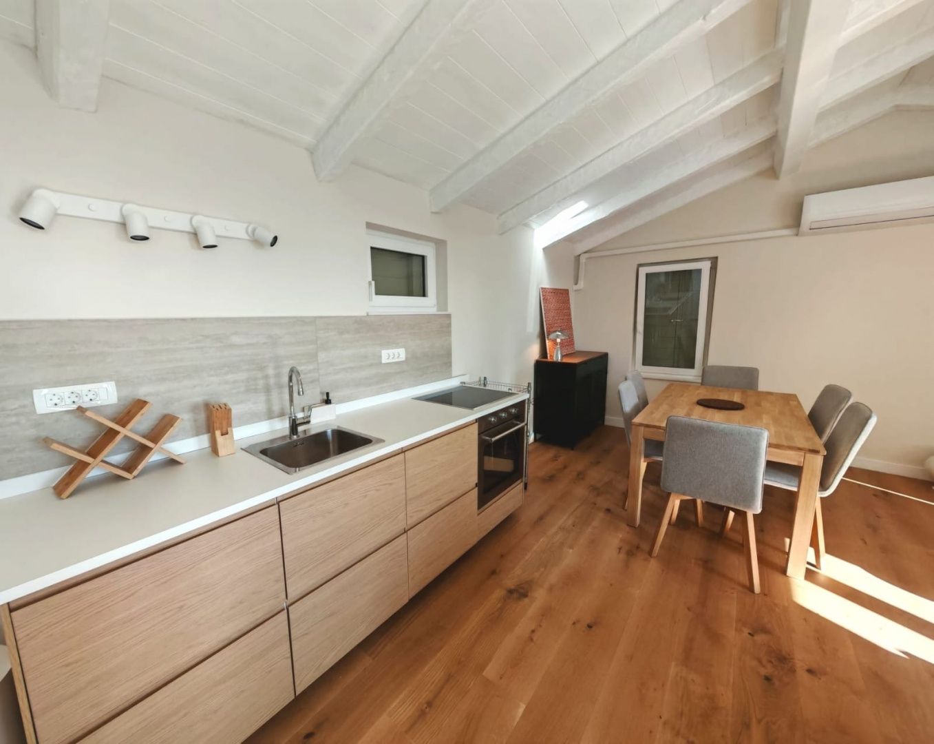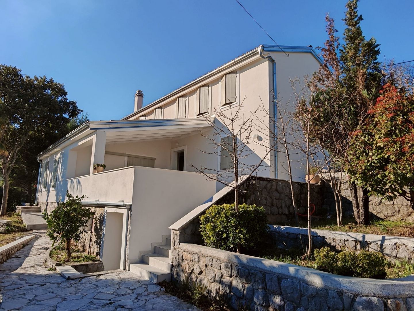 OPATIJA, POBRI – Frisch renoviertes Einfamilienhaus mit zwei Wohneinheiten! Wir vermitteln die Langzeitmiete eines frisch renovierten Einfamilienhauses in Pobri, oberhalb von Opatija! Das Haus wurde dieses Jahr komplett saniert und besteht aus zwei separaten Wohneinheiten oder einer großen Maisonette-Wohnung. Es befindet sich am Ende einer Sackgasse in sehr ruhiger Lage. Vor dem Haus befinden sich drei Parkplätze, und der Garten bietet einen Grillplatz, eine Sommerküche, einen Kaskadengarten und Terrassen. Im ersten Obergeschoss befindet sich ein schönes Wohnzimmer. Eine Treppe im amerikanischen Stil führt zur Wohnküche. Beide Räume haben Zugang zu einer überdachten Terrasse oder Sommerküche mit Grill. Außerdem befinden sich auf dieser Etage zwei Schlafzimmer, ein Flur und zwei Badezimmer. Eine Innentreppe führt ins zweite Obergeschoss, wo sich zwei weitere Schlafzimmer, ein Badezimmer, ein Flur sowie ein großzügiger Wohn- und Küchenbereich im offenen Stil befinden. Das gesamte Anwesen besticht durch erhaltene, aber restaurierte Balken und viele Fenster, die viel Tageslicht hereinlassen. Das Haus wurde im mediterranen Stil erbaut, und der Bau eines Swimmingpools auf dem Wasserfall im Garten würde die perfekte Verbindung von Moderne und Tradition vollenden. Empfehlung des Maklers!