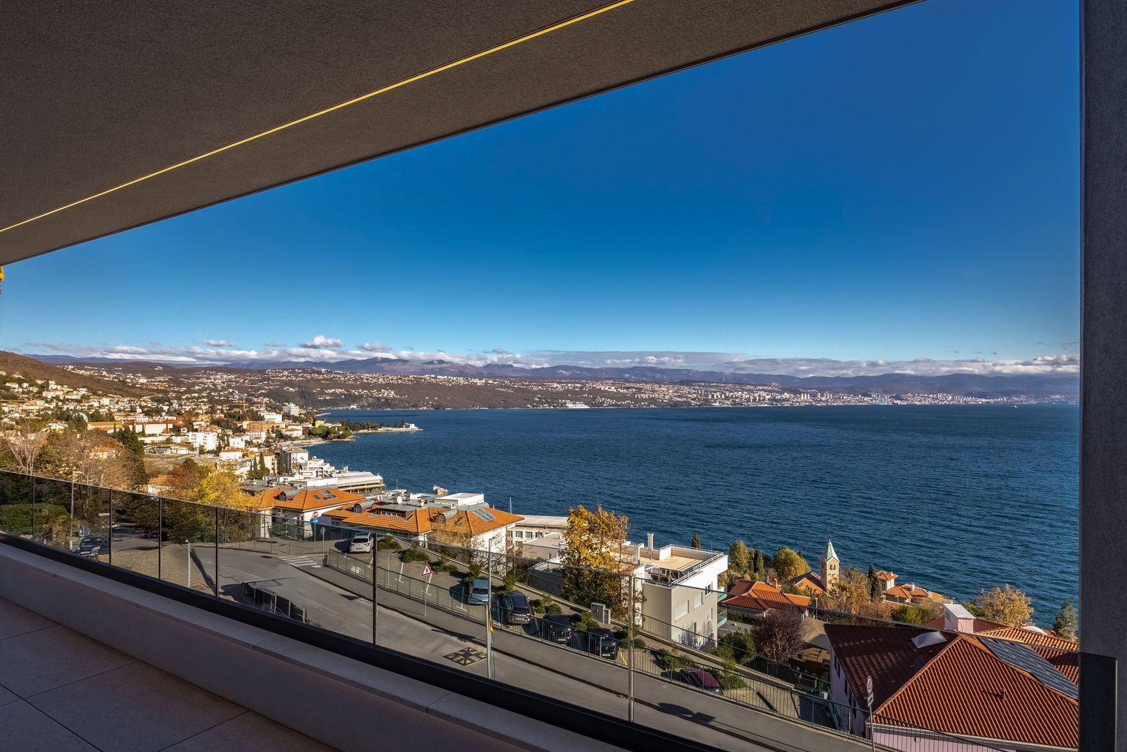 OPATIJA, ZENTRUM - 134 m² großes, prestigeträchtiges Gebäude in einem herrlichen Neubau, Panoramablick auf das Meer. Exklusiver Neubau in unmittelbarer Nähe des Zentrums von Opatija, in einer Qualitätsstraße, nur 250 Meter vom Meer entfernt. Dank ihrer Lage bietet diese Straße Privatsphäre und Ruhe mit Panoramablick auf das Meer. Es handelt sich um ein Gebäude von besonderer Qualität, das sich in der Bauweise und Bauart von der Riviera unterscheidet. Es ist wichtig, in der Beschreibung die Materialien hervorzuheben, die für die Innenausstattung des Gebäudes verwendet werden. Darüber hinaus ist es wichtig, dass es sich bei dem Gebäude um ein komplettes Smart Home handelt. Die Wohnung S2 im ersten Stock dieses einzigartigen Neubaus hat eine Bruttofläche von 176,43 m2. Die Nettowohnfläche der Wohnung beträgt 134 m² und die Aufteilung ist wie folgt: Die Wohnung besteht aus einem Eingang, einem Badezimmer und einem Abstellraum, einem großen offenen Wohnzimmer mit Küche und Esszimmer (57 m²), 3 Schlafzimmern, eines davon verfügt über ein Badezimmer. Die Garage innerhalb des Anwesens garantiert Sicherheit und Privatsphäre mit den dazugehörigen zwei Parkplätzen und bietet das Privileg eines Aufzugs, der direkt zur Unterkunft führt. Diese Immobilie verfügt über die folgenden einzigartigen Merkmale: - direkter Aufzug von der Garage - Videoüberwachung und Alarmanlage - DAIKIN-Wärmepumpe - integrierte, separate DAIKIN-Kühlung in allen Räumen - Fußbodenheizung im gesamten Gebäude - erstklassige ALICE-Sanitärkeramik - Sicherheitstüren in KOLNOA-Qualität sorgen für hervorragende Wärme- und Schalldämmung – alle Innentüren der renommierten Marke FILOMURO – hochwertiges mehrschichtiges Eichenparkett in den Schlafzimmern (Chevron-Stil) – Innen- und Außenkeramikfliesen der bekannten Marke FLORIM Dieses Gebäude befindet sich in einem privaten, hochwertige Straße nur 250m Luftlinie zum Meer. Das Meer ist 5 Minuten zu Fuß entfernt, während eine Autofahrt nach Opatija, dem Zentrum, nur 2 Minuten dauert. Diese Luxusanlage in beneidenswerter Lage zeichnet sich durch hochwertige Materialien und exklusive Begleiteinrichtungen aus. Als solches bietet es eine perfekte Kombination aus modernem Stil, Eleganz und Funktionalität moderner Haustechnik und gilt als fantastische Investitionsmöglichkeit im märchenhaften Opatija.