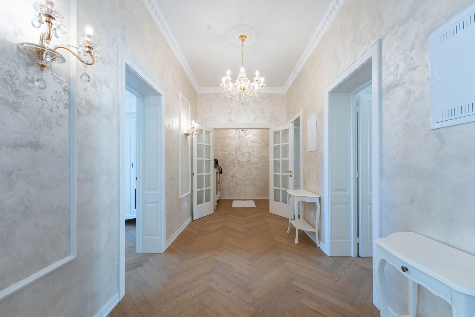 OPATIJA, ZENTRUM – Luxus und Authentizität vereint: Ein Apartment in einer renovierten historischen Villa im Herzen von Opatija mit Panoramablick Wir präsentieren Ihnen eine einzigartige Gelegenheit, im Herzen von Opatija zu wohnen – in einem Apartment in einer 130 Jahre alten historischen Villa, die Charme und Authentizität ausstrahlt. Dieses außergewöhnlich gut renovierte Apartment bietet eine Wohnfläche von ca. 96 m², einen Anteil am umliegenden Gelände sowie das Recht zur Nutzung eines Parkplatzes (derzeit nicht im Eigentum). Das Apartment wurde mit viel Liebe zum Detail und höchster Funktionalität komplett renoviert. Jedes Zimmer ist mit einer Mitsubishi-Wärmepumpe ausgestattet, die Fußbodenheizung und -kühlung über Fußbodenklimaanlagen ermöglicht und so ganzjährig für optimalen Komfort sorgt. Die Möbel sind handgefertigt und stammen aus einer renommierten Tischlerei in Verona. Kristalllüster unterstreichen die luxuriöse Atmosphäre der Räume. Jedes Detail wurde sorgfältig durchdacht und gestaltet, um dieses Apartment zu einer perfekten Oase der Eleganz und des Komforts zu machen. Die Lage der Wohnung ist ideal – sie befindet sich mitten im Stadtzentrum, nur 130 Meter vom Meer entfernt. Volosko erreichen Sie bequem zu Fuß über die berühmte Strandpromenade Lungomare oder in 3 Minuten mit dem Auto. Ičići ist nur 7 Fahrminuten entfernt. Um einen Besichtigungstermin zu vereinbaren, wenden Sie sich bitte an einen vertrauenswürdigen Makler – eine Beratung auf Deutsch ist möglich.
