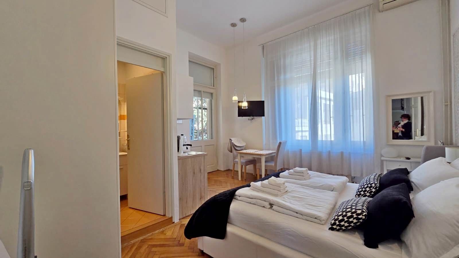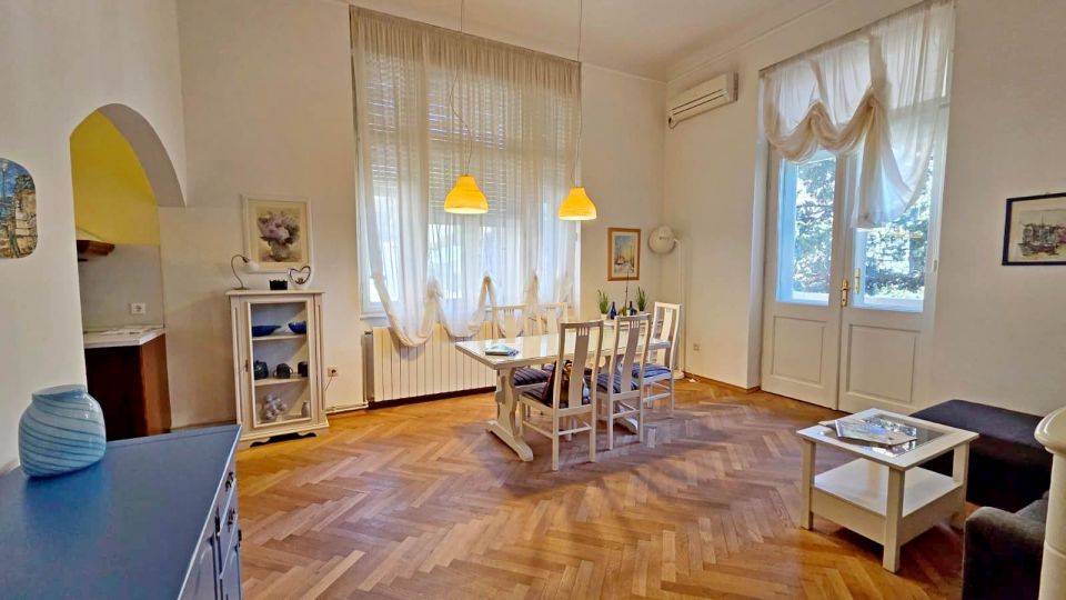 OPATIJA, ZENTRUM – Elegantes Apartment im Herzen von Opatija, 150 m vom Meer entfernt, 3 Schlafzimmer, 109 m² In einer der eleganten, alten Villen, die an die Blütezeit Opatijas erinnern, befindet sich ein Apartment, das den Charme vergangener Zeiten mit modernem Komfort verbindet. Nur 150 Meter vom Meer, Strand und der Promenade entfernt, bietet diese Immobilie eine außergewöhnliche Lage in ruhiger Umgebung und gleichzeitig die Nähe zu allen Annehmlichkeiten, die das Leben an der Küste so besonders machen. Das Apartment mit einer Gesamtfläche von 109 m² ist in drei funktionale Einheiten unterteilt. Die Hauptwohnung mit 64 m² besteht aus einem geräumigen Schlafzimmer mit eigenem Bad, einem gemütlichen Wohnzimmer, einer Küche, einem separaten WC und einem Balkon mit teilweisem Meerblick. Vom Apartment aus gelangt man in den ausgebauten Dachboden, der als praktischer Abstellraum dient. Die 3,5 Meter hohen Decken unterstreichen das luftige und elegante Ambiente, das für alte Villen so charakteristisch ist. Die beiden verbleibenden Einheiten sind Apartments mit je 23 m². Eines ist als klassisches Studio mit Balkon eingerichtet, das andere verfügt über eine Galerie mit Schlafbereich, wodurch der Raum optimal genutzt und funktional gestaltet ist. Das Apartment wird komplett möbliert mit eleganten und sorgfältig ausgewählten Möbeln verkauft, die die Eleganz des Raumes unterstreichen und einen sofortigen Einzug ohne weitere Investitionen ermöglichen. Zur Immobilie gehört ein privater Parkplatz; weitere Parkmöglichkeiten befinden sich in der Nähe. Dies ist eine ideale Gelegenheit, in einer der begehrtesten Lagen der Kvarner-Bucht zu leben, Urlaub zu machen oder zu investieren, wo sich der Duft des Meeres und die Eleganz einer alten Villa täglich vereinen. Opatija ist ein Ort, an dem die Strandpromenade zur täglichen Meditation wird, wo die Morgenbrise den Duft von Salz und Pinien trägt und die Sonnenstrahlen auf den Fassaden alter Villen spielen. Frische Luft, das Rauschen der Wellen und die glitzernde Küste verwandeln den Alltag in ein Urlaubserlebnis, und das Leben in dieser Villa ermöglicht es, jeden Tag wie einen Spaziergang durch die Geschichte und die natürliche Schönheit der Kvarner-Bucht zu erleben. Sehr geehrte Kaufinteressenten, wir freuen uns über Ihr Interesse an den Immobilien in unserem Angebot. Für weitere Informationen und zur Vereinbarung eines Besichtigungstermins kontaktieren Sie uns bitte. Eine Besichtigung ist nur mit Unterzeichnung eines Maklervertrags möglich. Die Maklergebühr richtet sich nach den Allgemeinen Geschäftsbedingungen: https://www.dux-nekretnine.hr/opci-uvjeti-poslovanja