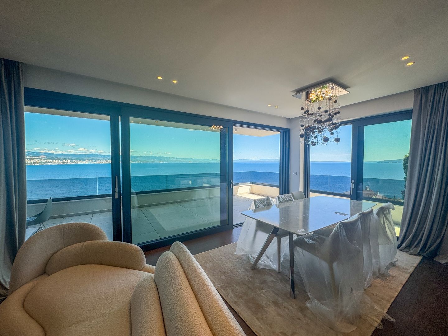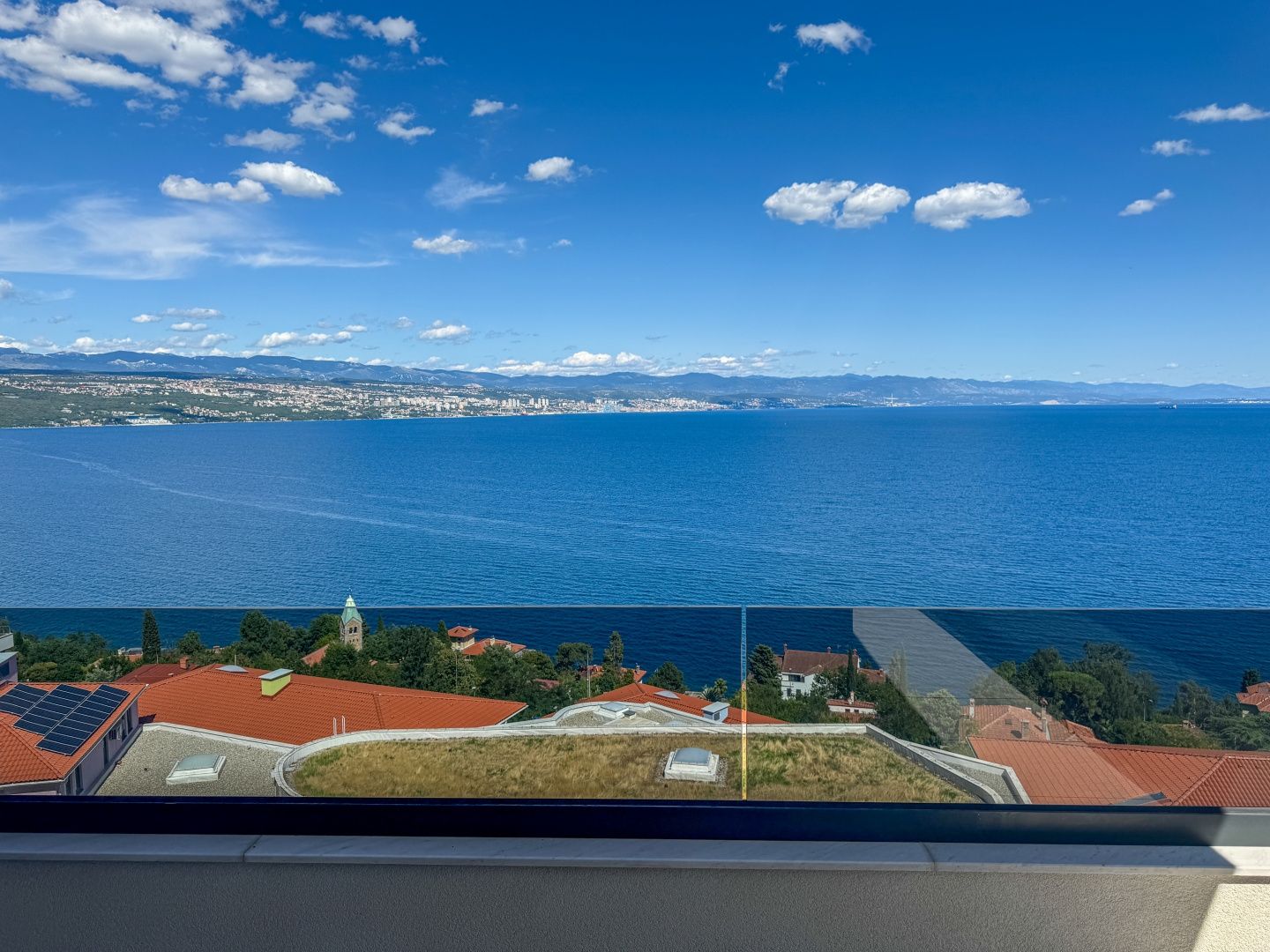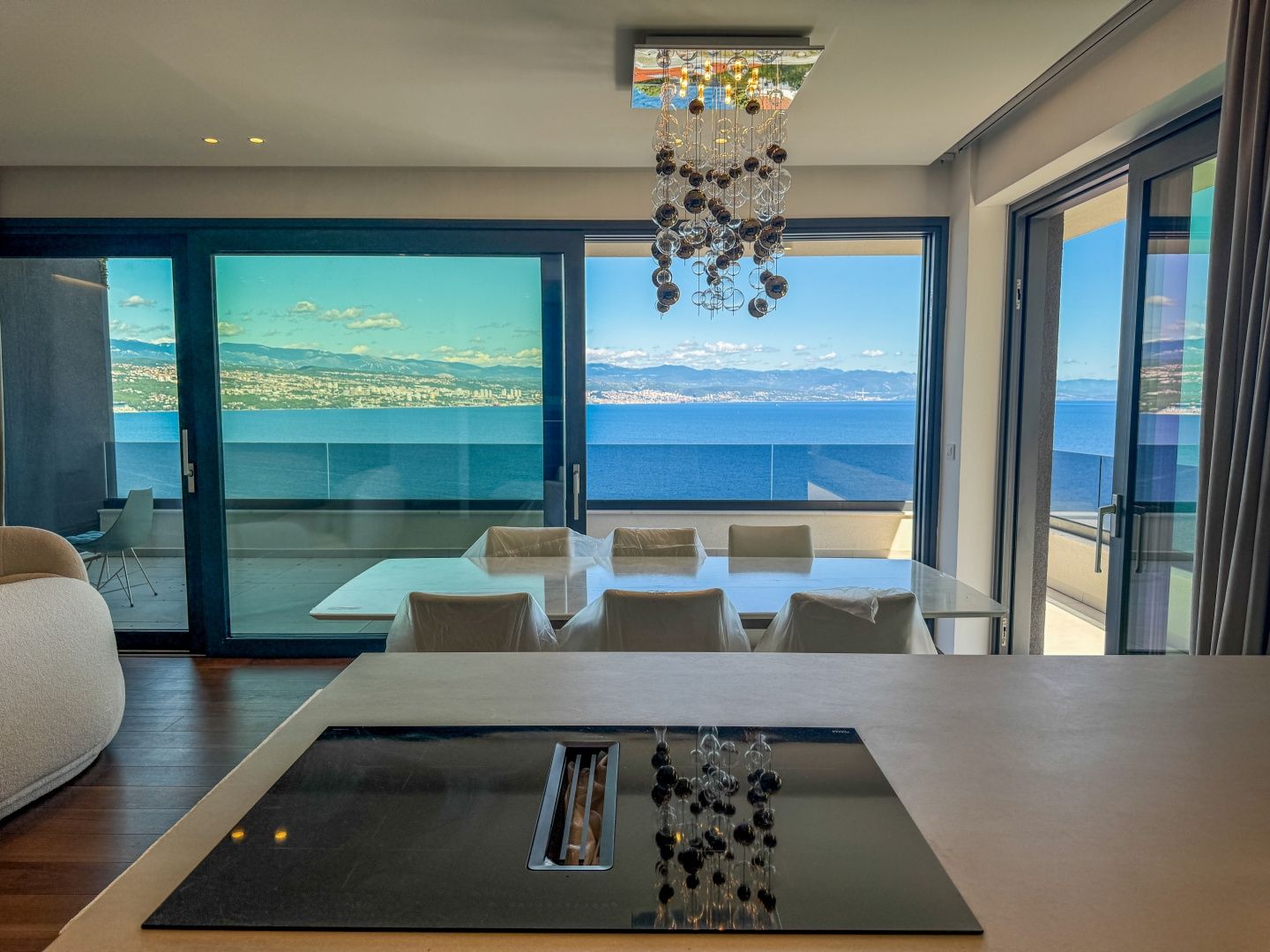 OPATIJA, ZENTRUM – Großzügige Wohnung in einem hochwertigen Neubau mit Garage und Panoramablick aufs Meer Dieser exklusive Neubau in unmittelbarer Nähe des Zentrums von Opatija befindet sich in einer begehrten Straße, nur 250 Meter vom Meer entfernt. Dank seiner Lage bietet die Straße Ruhe und Privatsphäre mit Panoramablick auf das Meer. Das Gebäude zeichnet sich durch seine besondere Bauqualität und die für die Riviera typische Bauweise aus. Hervorzuheben sind die hochwertigen Materialien im Inneren sowie die erstklassige Ausstattung. Die Wohnung S2 im zweiten Obergeschoss dieses einzigartigen Neubaus bietet eine Bruttofläche von 140 m². Die Nettowohnfläche beträgt 113 m². Die Aufteilung ist wie folgt: Die Wohnung besteht aus Eingangsbereich, Bad und Hauswirtschaftsraum, einem großen offenen Wohn-/Essbereich mit Küche sowie drei geräumigen Schlafzimmern, jeweils mit eigenem Bad. Die hauseigene Garage mit zwei Stellplätzen garantiert Sicherheit und Privatsphäre. Ein Aufzug führt direkt zur Wohnung. Diese Immobilie zeichnet sich durch folgende Besonderheiten aus: - Direkter Aufzug von der Garage - Videoüberwachung rund um das Gebäude - VAILLANT Wärmepumpe mit Fußbodenheizung im gesamten Haus und Gebläsekonvektor-Klimaanlage in jedem Zimmer - Markenküche mit hochwertigen MIELE-Geräten - Hochwertige Sanitärausstattung von CATALANO - Armaturen der renommierten italienischen Marke FIMA - CARLO FRATTINI - Eingangstüren der renommierten italienischen Marke BARAUSSE bieten hervorragende Wärme- und Schalldämmung - Alle Innentüren stammen ebenfalls von BARAUSSE - Hochwertiges, mehrschichtiges Walnussparkett der Marke FOGLIE D'ORO im gesamten Haus - Keramikfliesen im Innen- und Außenbereich einer renommierten italienischen Marke Besonders hervorzuheben ist die Einrichtung der Immobilie mit Möbeln der renommierten italienischen Marke PIANCA. Jedes einzelne Möbelstück, vom Stuhl bis zum Bett, wurde sorgfältig nach den Vorgaben des genannten Designstudios ausgewählt. Dieses Gebäude befindet sich in einer ruhigen, exklusiven Straße, nur 250 m Luftlinie vom Meer entfernt. Das Meer erreichen Sie in 5 Minuten zu Fuß, und mit dem Auto sind Sie in nur 2 Minuten im Zentrum von Opatija. Dieses luxuriöse Gebäude in beneidenswerter Lage zeichnet sich durch hochwertige Materialien und exklusive Ausstattung aus. Es bietet die perfekte Kombination aus modernem Stil, Eleganz und modernster Haustechnik und stellt eine fantastische Investitionsmöglichkeit im märchenhaften Opatija dar.