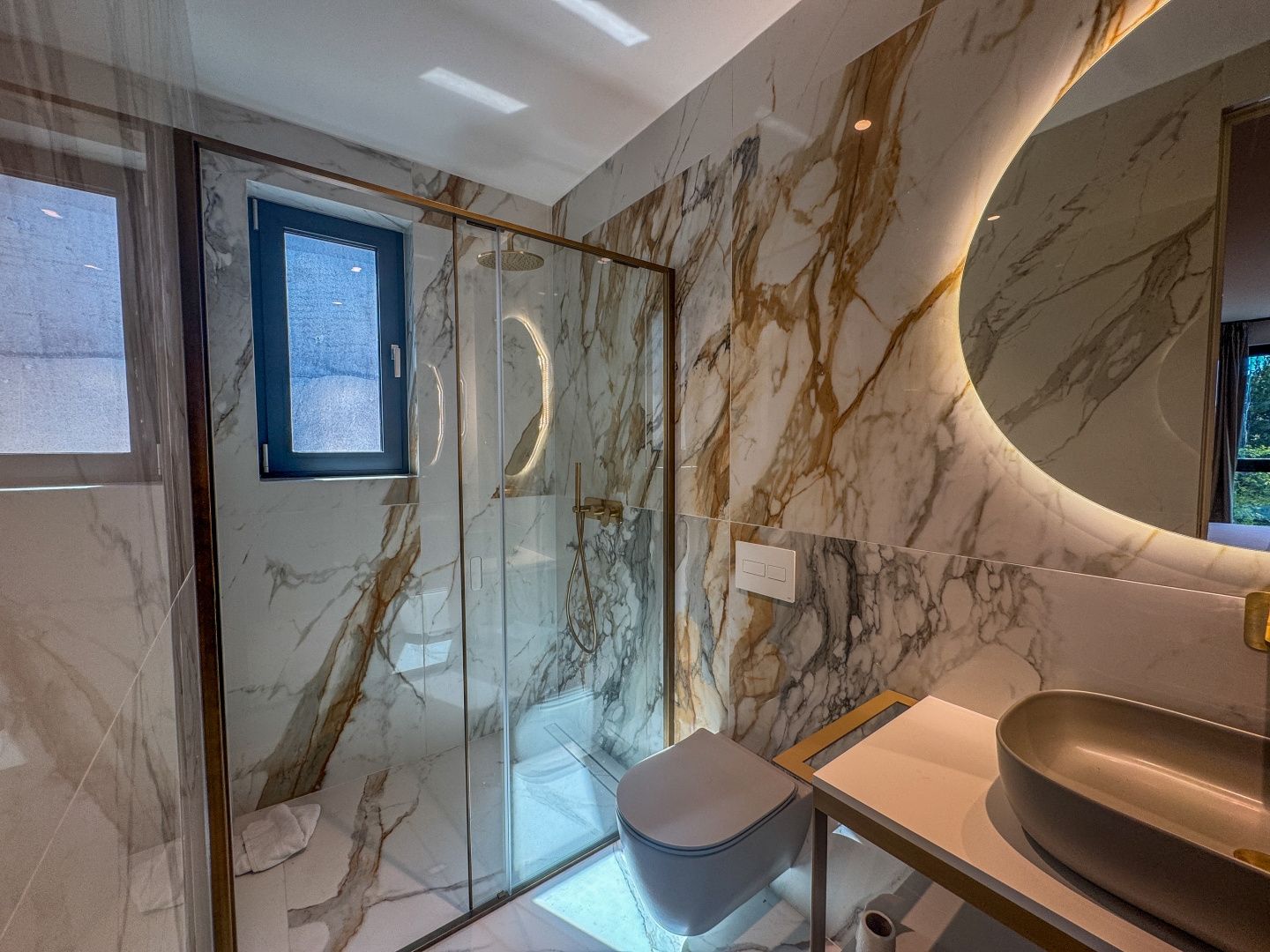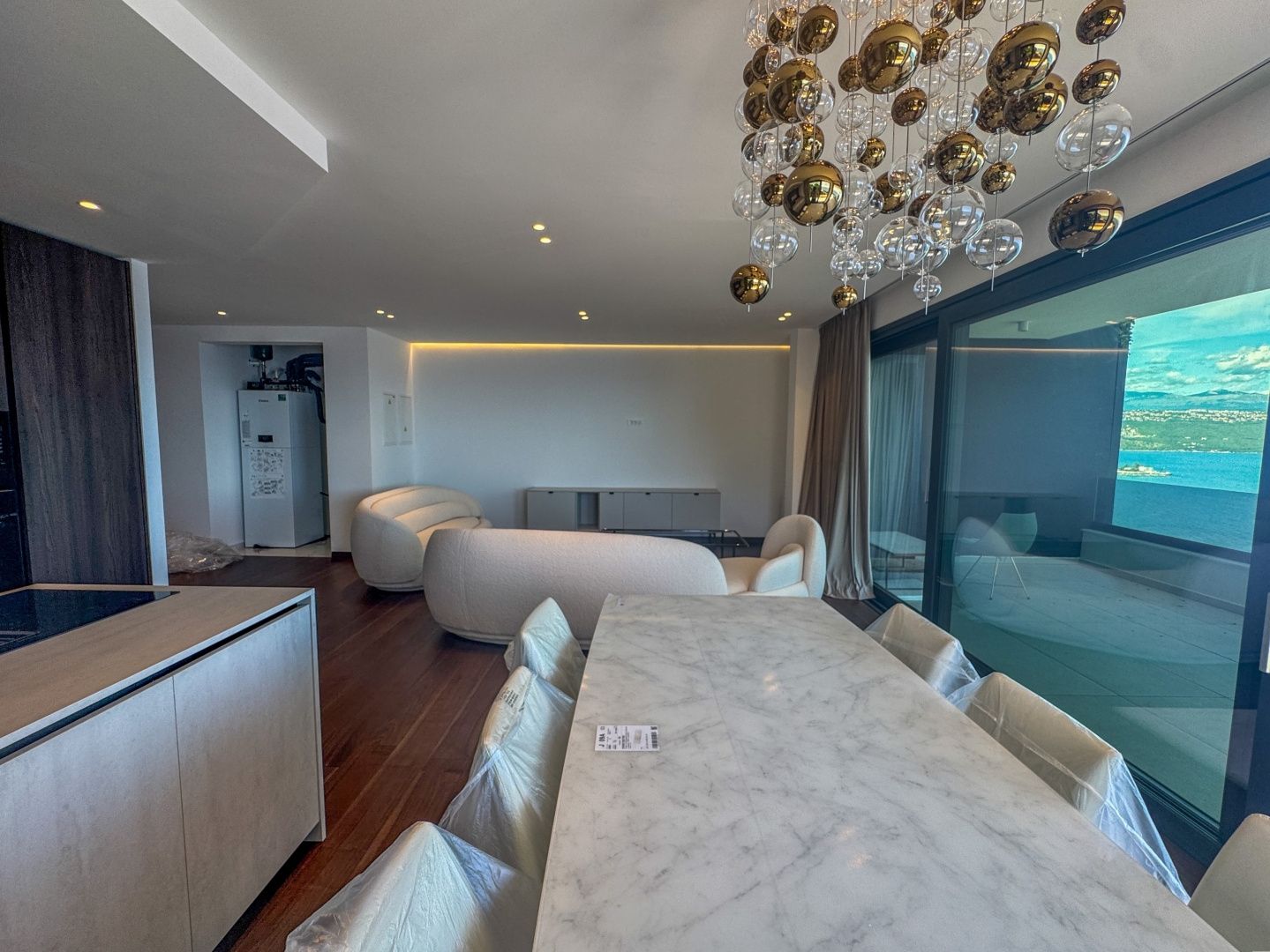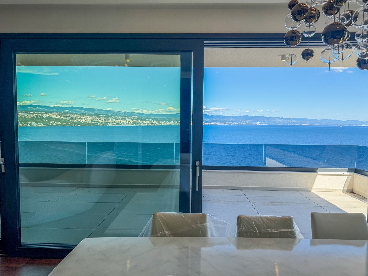OPATIJA, ZENTRUM – Großzügige Wohnung in einem hochwertigen Neubau mit Garage und Panoramablick aufs Meer Dieser exklusive Neubau in unmittelbarer Nähe des Zentrums von Opatija befindet sich in einer begehrten Straße, nur 250 Meter vom Meer entfernt. Dank seiner Lage bietet die Straße Ruhe und Privatsphäre mit Panoramablick auf das Meer. Das Gebäude zeichnet sich durch seine besondere Bauqualität und die für die Riviera typische Bauweise aus. Hervorzuheben sind die hochwertigen Materialien im Inneren sowie die erstklassige Ausstattung. Die Wohnung S2 im zweiten Obergeschoss dieses einzigartigen Neubaus bietet eine Bruttofläche von 140 m². Die Nettowohnfläche beträgt 113 m². Die Aufteilung ist wie folgt: Die Wohnung besteht aus Eingangsbereich, Bad und Hauswirtschaftsraum, einem großen offenen Wohn-/Essbereich mit Küche sowie drei geräumigen Schlafzimmern, jeweils mit eigenem Bad. Die hauseigene Garage mit zwei Stellplätzen garantiert Sicherheit und Privatsphäre. Ein Aufzug führt direkt zur Wohnung. Diese Immobilie zeichnet sich durch folgende Besonderheiten aus: - Direkter Aufzug von der Garage - Videoüberwachung rund um das Gebäude - VAILLANT Wärmepumpe mit Fußbodenheizung im gesamten Haus und Gebläsekonvektor-Klimaanlage in jedem Zimmer - Markenküche mit hochwertigen MIELE-Geräten - Hochwertige Sanitärausstattung von CATALANO - Armaturen der renommierten italienischen Marke FIMA - CARLO FRATTINI - Eingangstüren der renommierten italienischen Marke BARAUSSE bieten hervorragende Wärme- und Schalldämmung - Alle Innentüren stammen ebenfalls von BARAUSSE - Hochwertiges, mehrschichtiges Walnussparkett der Marke FOGLIE D'ORO im gesamten Haus - Keramikfliesen im Innen- und Außenbereich einer renommierten italienischen Marke Besonders hervorzuheben ist die Einrichtung der Immobilie mit Möbeln der renommierten italienischen Marke PIANCA. Jedes einzelne Möbelstück, vom Stuhl bis zum Bett, wurde sorgfältig nach den Vorgaben des genannten Designstudios ausgewählt. Dieses Gebäude befindet sich in einer ruhigen, exklusiven Straße, nur 250 m Luftlinie vom Meer entfernt. Das Meer erreichen Sie in 5 Minuten zu Fuß, und mit dem Auto sind Sie in nur 2 Minuten im Zentrum von Opatija. Dieses luxuriöse Gebäude in beneidenswerter Lage zeichnet sich durch hochwertige Materialien und exklusive Ausstattung aus. Es bietet die perfekte Kombination aus modernem Stil, Eleganz und modernster Haustechnik und stellt eine fantastische Investitionsmöglichkeit im märchenhaften Opatija dar.
