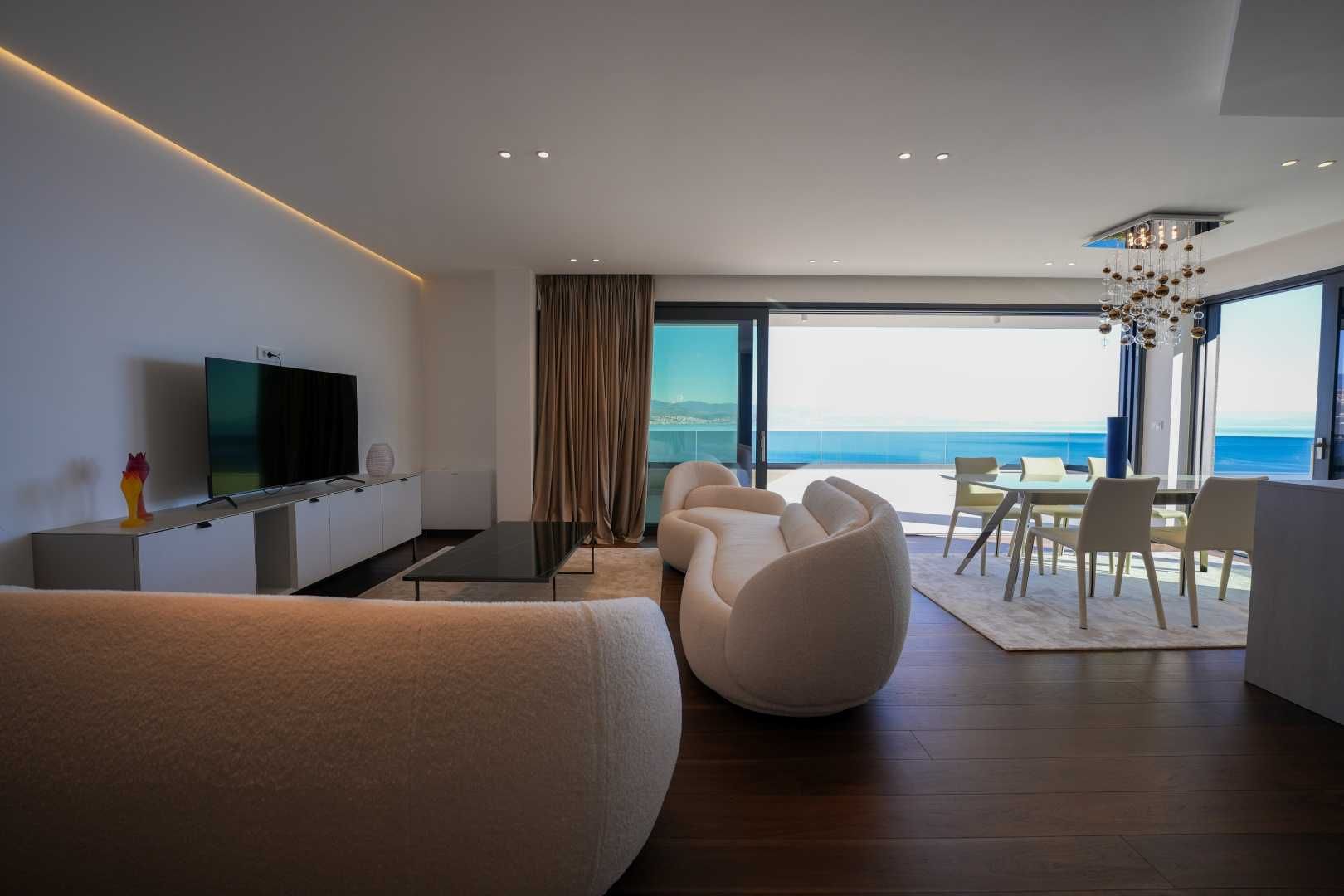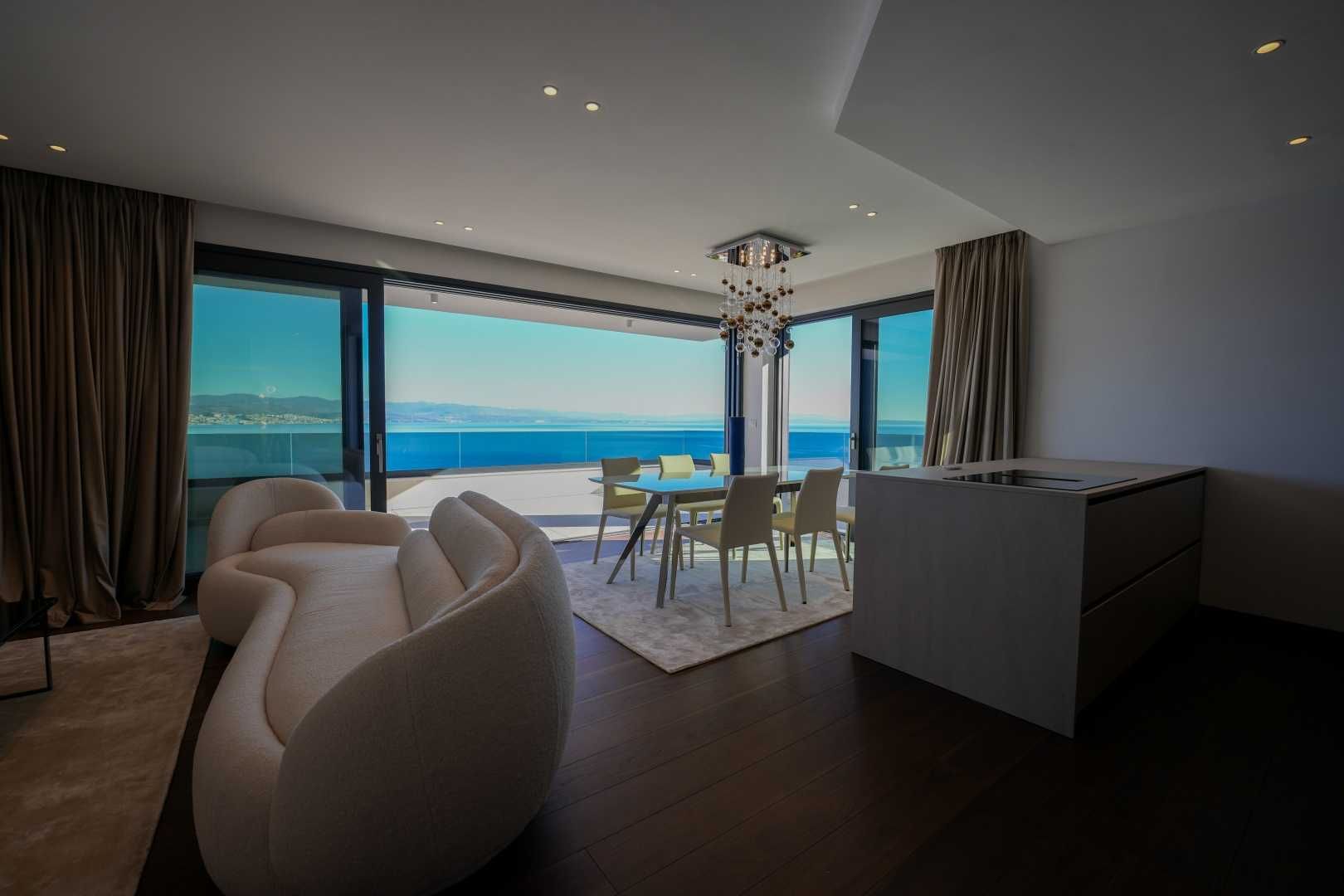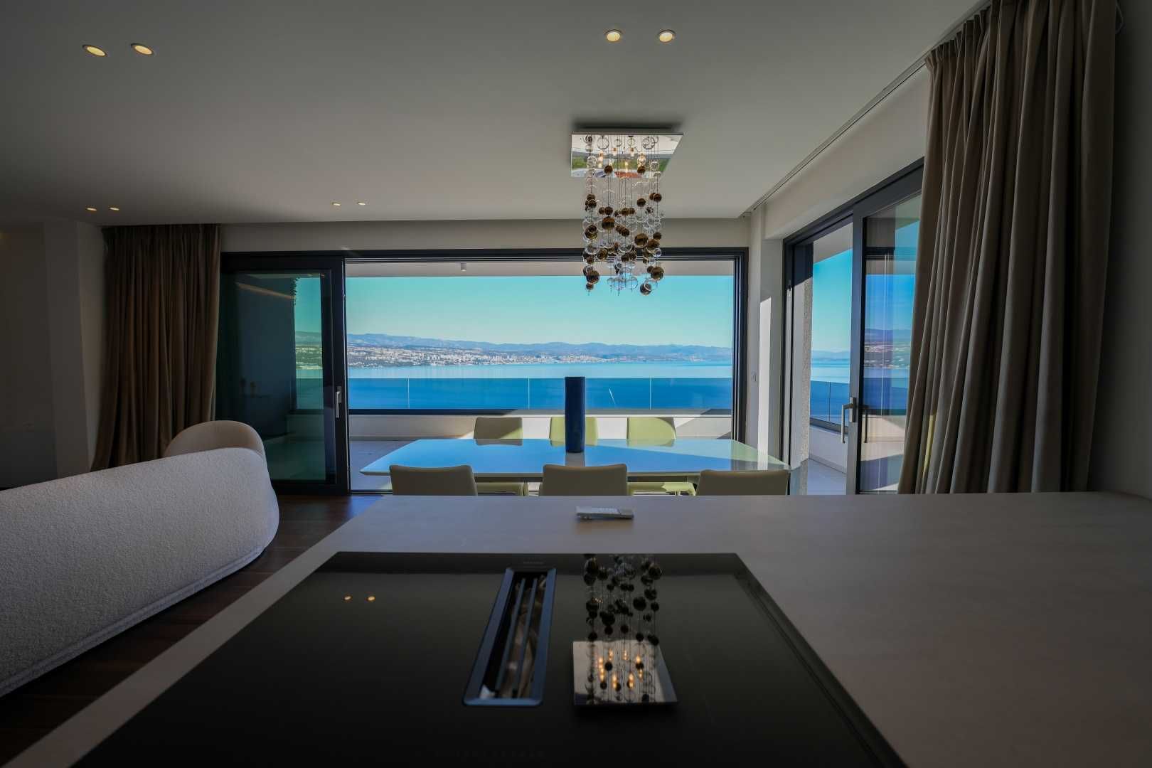 OPATIJA, ZENTRUM – Großzügige Wohnung in einem hochwertigen Neubau mit Garage und Panoramablick aufs Meer Dieser exklusive Neubau in unmittelbarer Nähe des Zentrums von Opatija befindet sich in einer begehrten Straße, nur 250 Meter vom Meer entfernt. Dank seiner Lage bietet die Straße Ruhe und Privatsphäre mit Panoramablick auf das Meer. Das Gebäude zeichnet sich durch seine besondere Bauqualität und die für die Riviera typische Bauweise aus. Hervorzuheben sind die hochwertigen Materialien im Inneren sowie die erstklassige Ausstattung. Die Wohnung S2 im zweiten Obergeschoss dieses einzigartigen Neubaus bietet eine Bruttofläche von 140 m². Die Nettowohnfläche beträgt 113 m². Die Aufteilung ist wie folgt: Die Wohnung besteht aus Eingangsbereich, Bad und Hauswirtschaftsraum, einem großen offenen Wohn-/Essbereich mit Küche sowie drei geräumigen Schlafzimmern, jeweils mit eigenem Bad. Die hauseigene Garage mit zwei Stellplätzen garantiert Sicherheit und Privatsphäre. Ein Aufzug führt direkt zur Wohnung. Diese Immobilie zeichnet sich durch folgende Besonderheiten aus: - Direkter Aufzug von der Garage - Videoüberwachung rund um das Gebäude - VAILLANT Wärmepumpe mit Fußbodenheizung im gesamten Haus und Gebläsekonvektor-Klimaanlage in jedem Zimmer - Markenküche mit hochwertigen MIELE-Geräten - Hochwertige Sanitärausstattung von CATALANO - Armaturen der renommierten italienischen Marke FIMA - CARLO FRATTINI - Eingangstüren der renommierten italienischen Marke BARAUSSE bieten hervorragende Wärme- und Schalldämmung - Alle Innentüren stammen ebenfalls von BARAUSSE - Hochwertiges, mehrschichtiges Walnussparkett der Marke FOGLIE D'ORO im gesamten Haus - Keramikfliesen im Innen- und Außenbereich einer renommierten italienischen Marke Besonders hervorzuheben ist die Einrichtung der Immobilie mit Möbeln der renommierten italienischen Marke PIANCA. Jedes einzelne Möbelstück, vom Stuhl bis zum Bett, wurde sorgfältig nach den Vorgaben des genannten Designstudios ausgewählt. Dieses Gebäude befindet sich in einer ruhigen, exklusiven Straße, nur 250 m Luftlinie vom Meer entfernt. Das Meer erreichen Sie in 5 Minuten zu Fuß, und mit dem Auto sind Sie in nur 2 Minuten im Zentrum von Opatija. Dieses luxuriöse Gebäude in beneidenswerter Lage zeichnet sich durch hochwertige Materialien und exklusive Ausstattung aus. Es bietet die perfekte Kombination aus modernem Stil, Eleganz und modernster Haustechnik und stellt eine fantastische Investitionsmöglichkeit im märchenhaften Opatija dar.