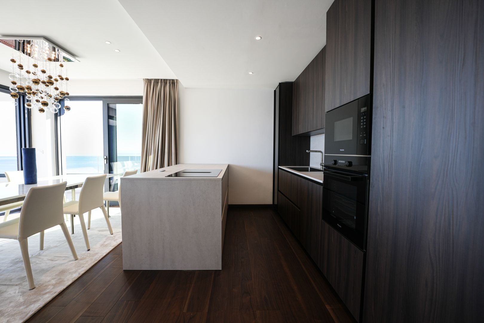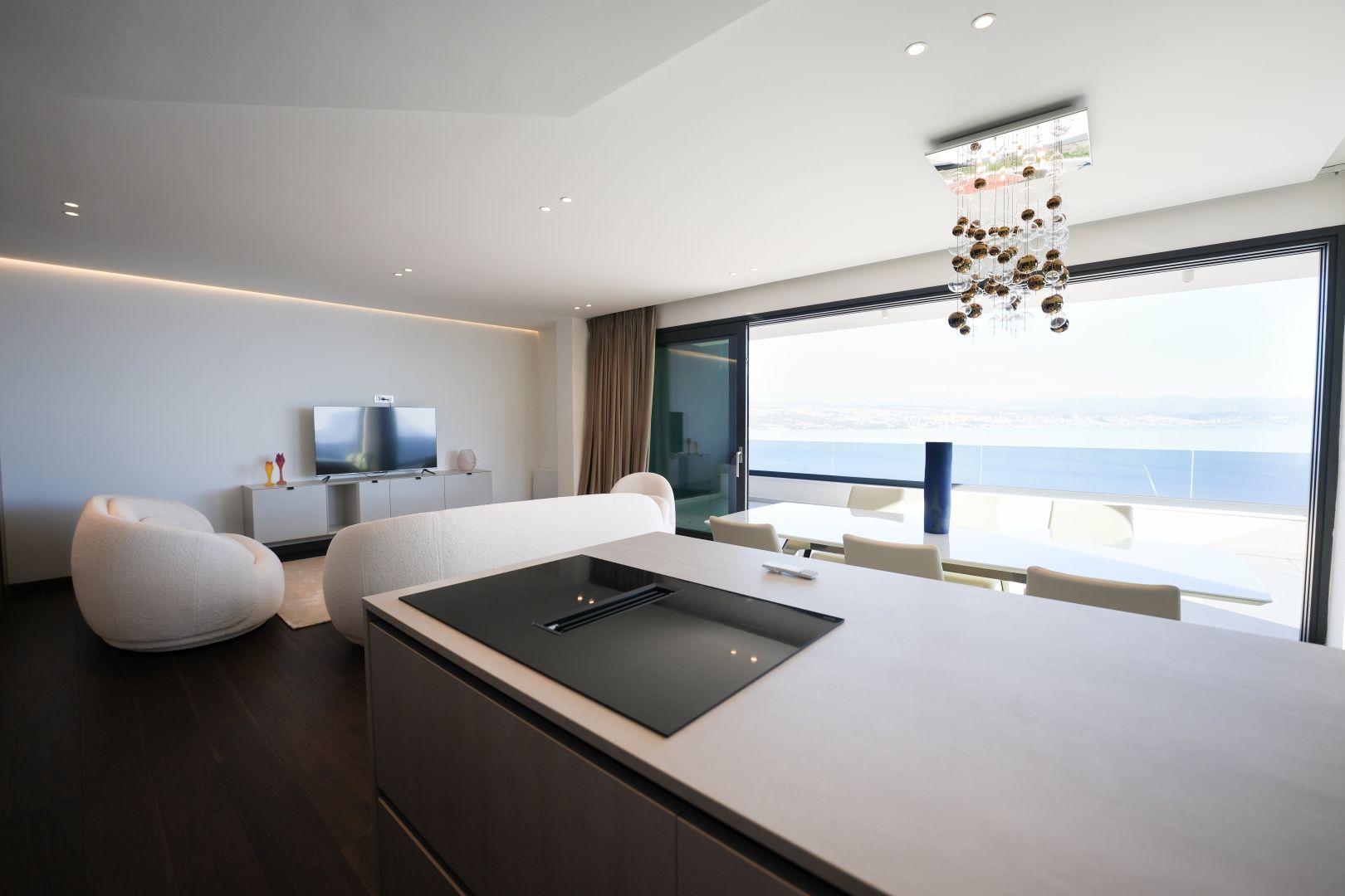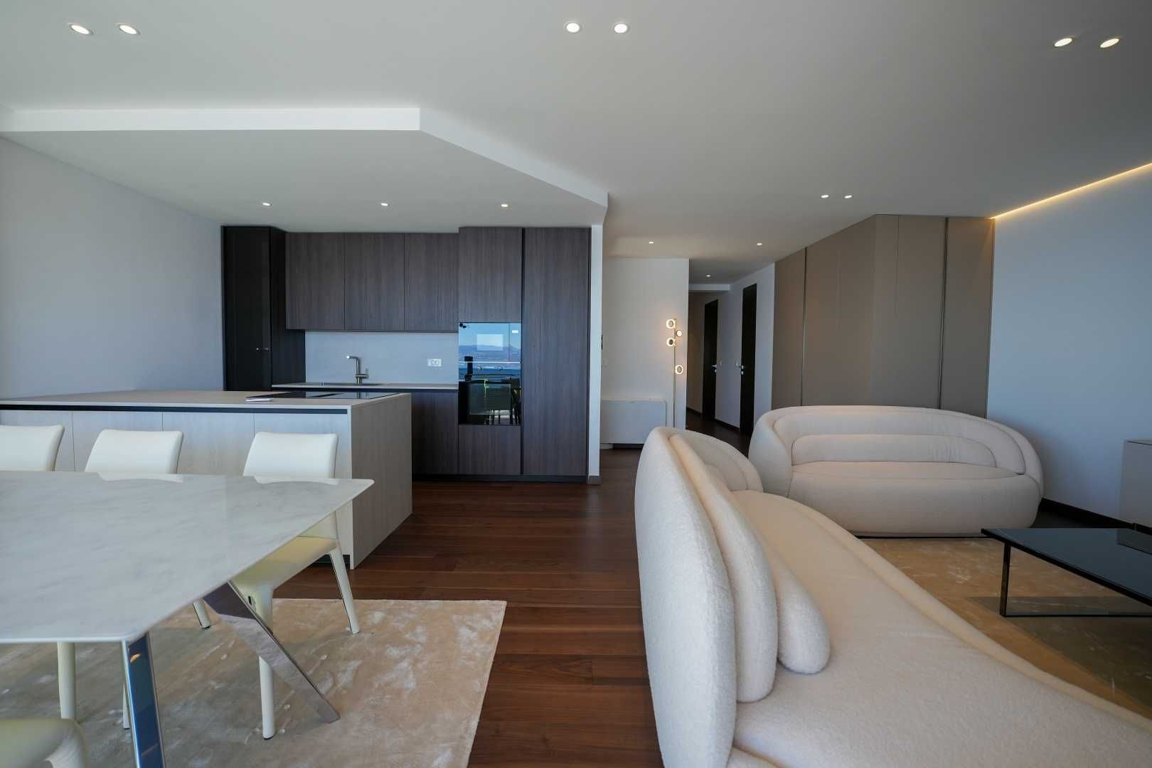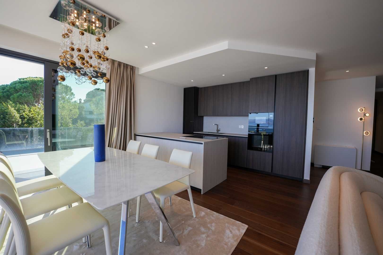 OPATIJA, ZENTRUM – Großzügige Wohnung in einem hochwertigen Neubau mit Garage und Panoramablick aufs Meer Dieser exklusive Neubau in unmittelbarer Nähe des Zentrums von Opatija befindet sich in einer begehrten Straße, nur 250 Meter vom Meer entfernt. Dank seiner Lage bietet die Straße Ruhe und Privatsphäre mit Panoramablick auf das Meer. Das Gebäude zeichnet sich durch seine besondere Bauqualität und die für die Riviera typische Bauweise aus. Hervorzuheben sind die hochwertigen Materialien im Inneren sowie die erstklassige Ausstattung. Die Wohnung S2 im zweiten Obergeschoss dieses einzigartigen Neubaus bietet eine Bruttofläche von 140 m². Die Nettowohnfläche beträgt 113 m². Die Aufteilung ist wie folgt: Die Wohnung besteht aus Eingangsbereich, Bad und Hauswirtschaftsraum, einem großen offenen Wohn-/Essbereich mit Küche sowie drei geräumigen Schlafzimmern, jeweils mit eigenem Bad. Die hauseigene Garage mit zwei Stellplätzen garantiert Sicherheit und Privatsphäre. Ein Aufzug führt direkt zur Wohnung. Diese Immobilie zeichnet sich durch folgende Besonderheiten aus: - Direkter Aufzug von der Garage - Videoüberwachung rund um das Gebäude - VAILLANT Wärmepumpe mit Fußbodenheizung im gesamten Haus und Gebläsekonvektor-Klimaanlage in jedem Zimmer - Markenküche mit hochwertigen MIELE-Geräten - Hochwertige Sanitärausstattung von CATALANO - Armaturen der renommierten italienischen Marke FIMA - CARLO FRATTINI - Eingangstüren der renommierten italienischen Marke BARAUSSE bieten hervorragende Wärme- und Schalldämmung - Alle Innentüren stammen ebenfalls von BARAUSSE - Hochwertiges, mehrschichtiges Walnussparkett der Marke FOGLIE D'ORO im gesamten Haus - Keramikfliesen im Innen- und Außenbereich einer renommierten italienischen Marke Besonders hervorzuheben ist die Einrichtung der Immobilie mit Möbeln der renommierten italienischen Marke PIANCA. Jedes einzelne Möbelstück, vom Stuhl bis zum Bett, wurde sorgfältig nach den Vorgaben des genannten Designstudios ausgewählt. Dieses Gebäude befindet sich in einer ruhigen, exklusiven Straße, nur 250 m Luftlinie vom Meer entfernt. Das Meer erreichen Sie in 5 Minuten zu Fuß, und mit dem Auto sind Sie in nur 2 Minuten im Zentrum von Opatija. Dieses luxuriöse Gebäude in beneidenswerter Lage zeichnet sich durch hochwertige Materialien und exklusive Ausstattung aus. Es bietet die perfekte Kombination aus modernem Stil, Eleganz und modernster Haustechnik und stellt eine fantastische Investitionsmöglichkeit im märchenhaften Opatija dar.