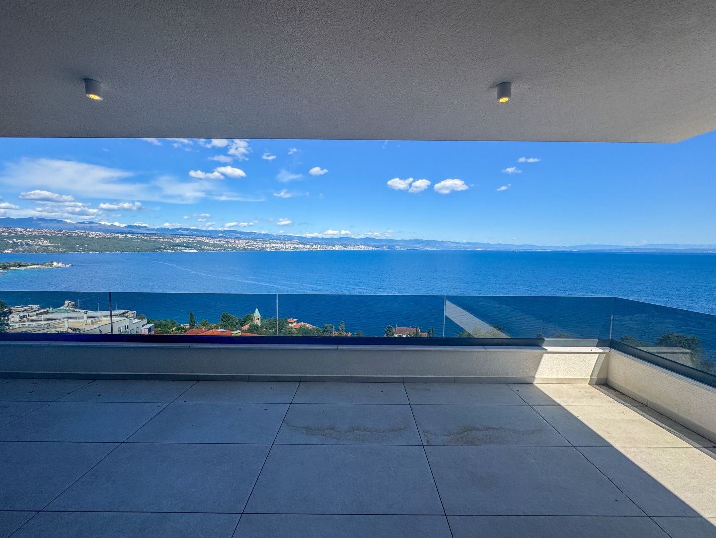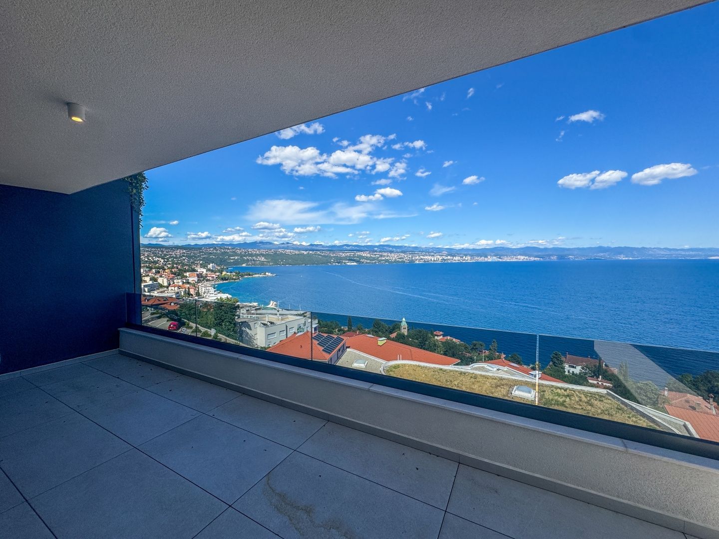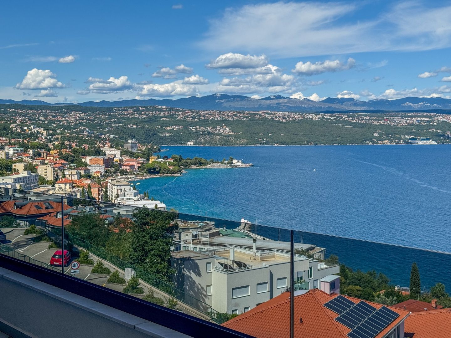 OPATIJA, ZENTRUM – Großzügige Wohnung zur Langzeitmiete in einem hochwertigen Neubau mit Garage und Panoramablick aufs Meer.