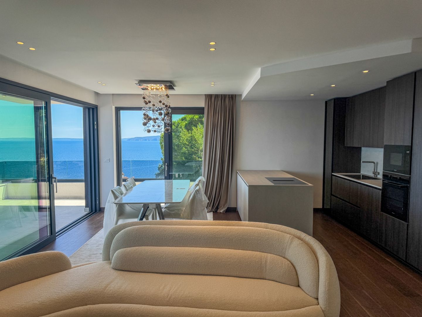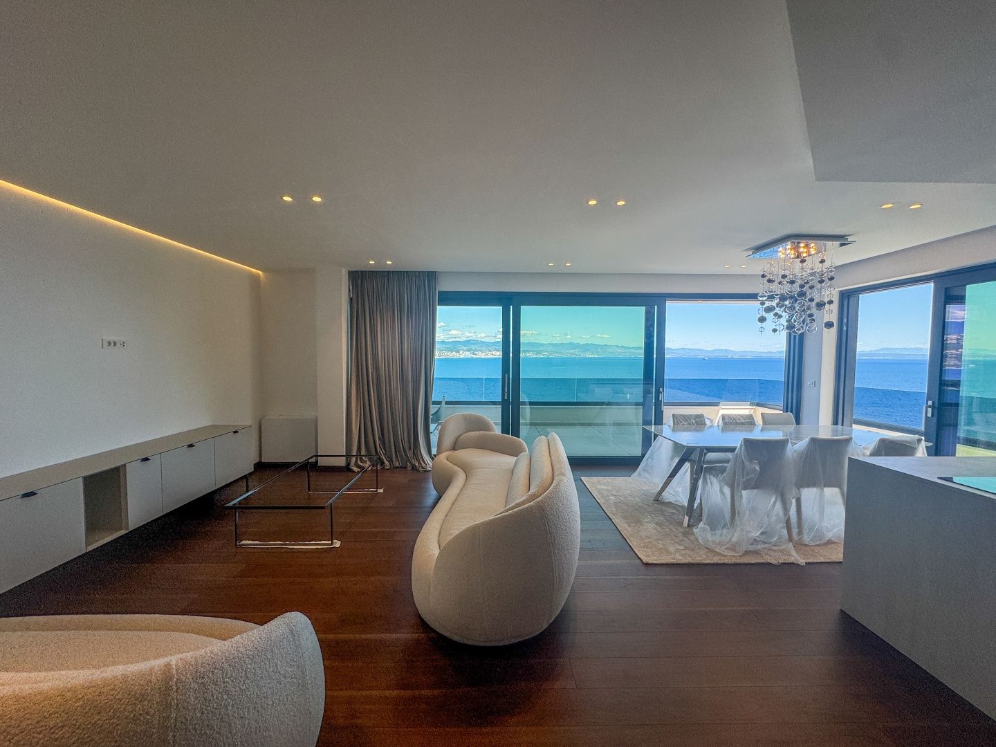 OPATIJA, ZENTRUM – Großzügige Wohnung zur Langzeitmiete in einem hochwertigen Neubau mit Garage und Panoramablick aufs Meer Wir präsentieren Ihnen eine exklusive Gelegenheit zur Langzeitmiete in Opatija! Ein exklusiver Neubau in unmittelbarer Nähe des Stadtzentrums von Opatija befindet sich in einer begehrten Straße, nur 250 Meter vom Meer entfernt. Dank dieser Lage genießen Sie hier absolute Ruhe und Privatsphäre mit Panoramablick aufs Meer. Dieses Gebäude besticht durch seine besondere Bauqualität und hebt sich in Bauweise und -art von anderen Gebäuden an der Riviera ab. Besonders hervorzuheben sind die hochwertigen Materialien im Innenbereich sowie die erstklassige Ausstattung. Die Wohnung S2 im zweiten Obergeschoss dieses einzigartigen Neubaus bietet eine Bruttogeschossfläche von 140 m². Die Nettowohnfläche beträgt 120 m². Die Aufteilung ist wie folgt: Die Wohnung besteht aus einem Eingangsbereich mit Bad und Hauswirtschaftsraum, einem großen, offenen Wohn-/Essbereich mit Küche sowie drei geräumigen Schlafzimmern, jeweils mit eigenem Bad. Die hauseigene Garage bietet mit zwei Stellplätzen Sicherheit und Privatsphäre und ermöglicht den direkten Zugang zur Wohnung über einen Aufzug. Diese Immobilie zeichnet sich durch folgende Besonderheiten aus: - Direkter Aufzug von der Garage - Videoüberwachung rund um das Gebäude - VAILLANT Wärmepumpe mit Fußbodenheizung im gesamten Wohnbereich und Gebläsekonvektor-Klimaanlage in jedem Zimmer - Markenküche mit hochwertigen MIELE-Geräten - Hochwertige Sanitärausstattung von CATALANO - Armaturen der renommierten italienischen Marke FIMA - CARLO FRATTINI - Eingangstüren der renommierten italienischen Marke BARAUSSE bieten hervorragende Wärme- und Schalldämmung - Alle Innentüren sind ebenfalls von BARAUSSE - Hochwertiges, mehrschichtiges Walnussparkett der Marke FOGLIE D'ORO im gesamten Wohnbereich - Keramikfliesen im Innen- und Außenbereich einer renommierten italienischen Marke Die Wohnung ist mit Möbeln der renommierten italienischen Marke PIANCA ausgestattet. Tatsächlich wurde jedes einzelne Möbelstück, vom Stuhl bis zum Bett, sorgfältig nach den Vorgaben des genannten Designhauses ausgewählt. Das Gebäude befindet sich in einer ruhigen, exklusiven Straße, nur 250 m Luftlinie vom Meer entfernt. Das Meer ist in 5 Minuten zu Fuß erreichbar, und die Fahrt ins Zentrum von Opatija dauert nur 2 Minuten. Dieses luxuriöse Gebäude in beneidenswerter Lage zeichnet sich durch hochwertige Materialien und exklusive Ausstattung aus. Es bietet die perfekte Kombination aus modernem Stil, Eleganz und modernster Haustechnik und stellt eine fantastische Investitionsmöglichkeit im märchenhaften Opatija dar.